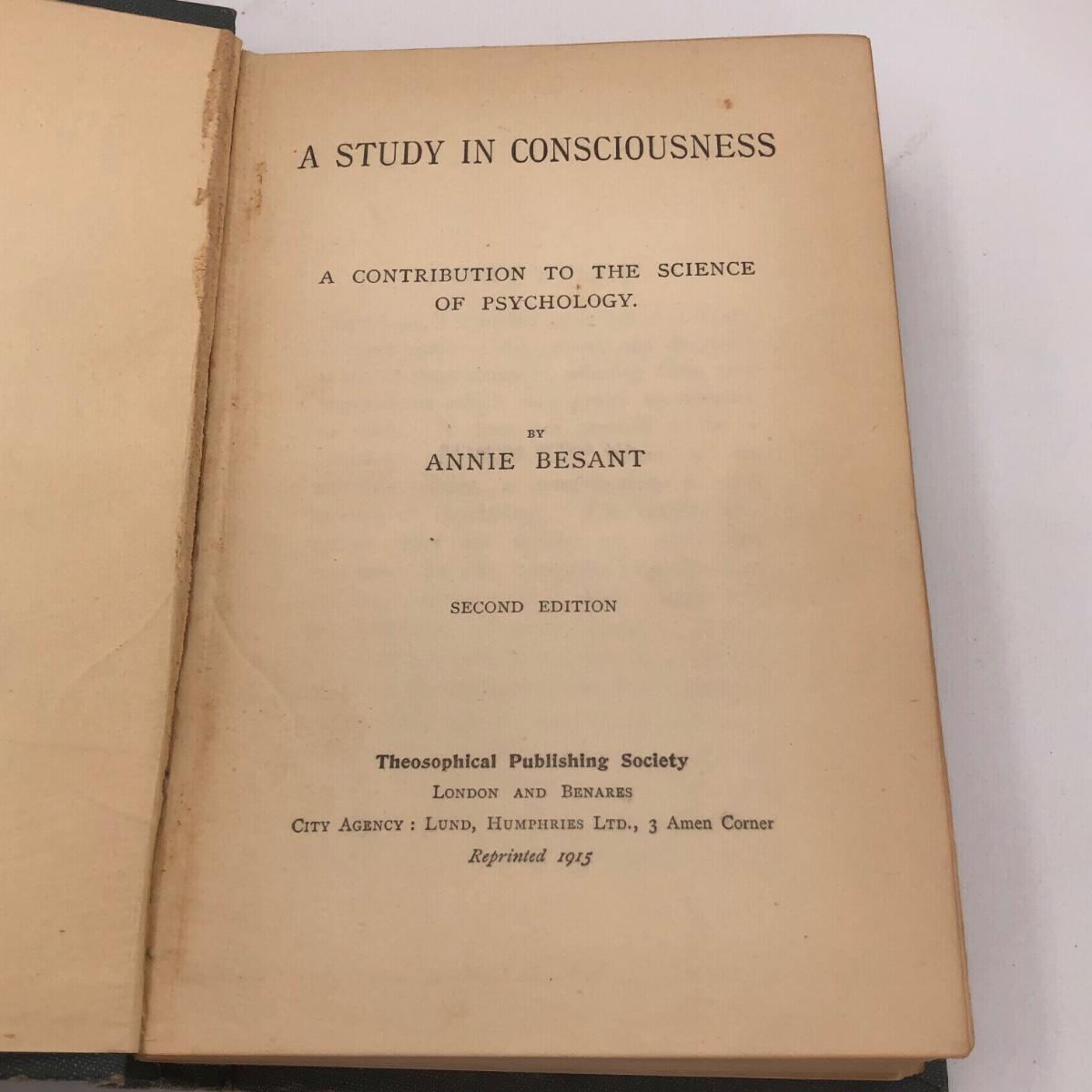 LOT 104L: Antique 2nd Edition 1915 "A Study in Consciousness: A Contribution to the Science of Psychology" by Annie Besant