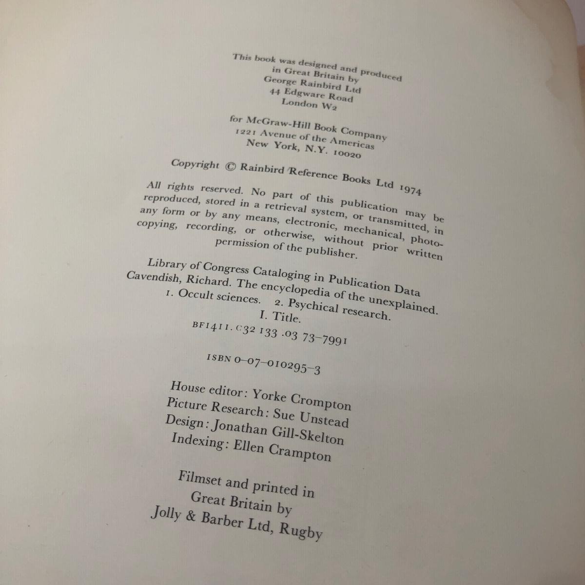 LOT 107L: Vintage 1974 "Encyclopedia of the Unexplained: Magic, Occultism and Parapsychology" edited by Richard Cavendish