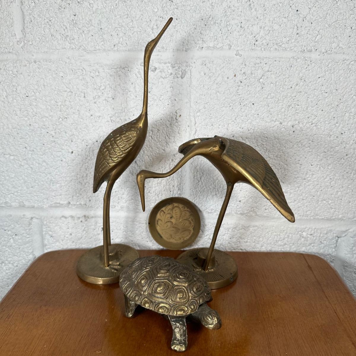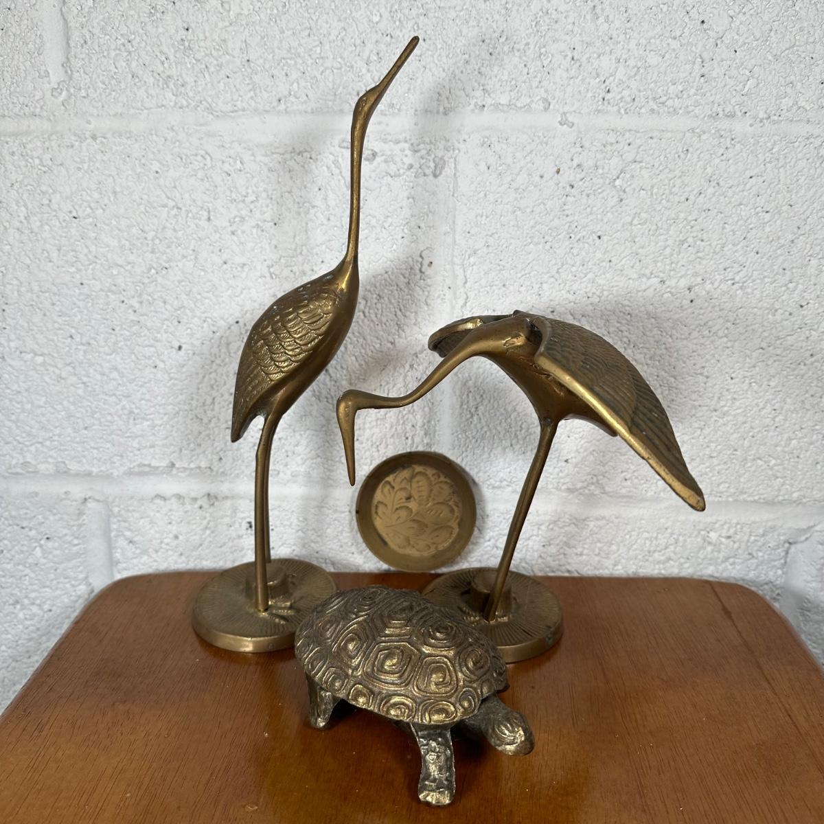 LOT 121B: Vintage Mcm Brass Decor Collection - Herons, Turtle Trinket Dish & More