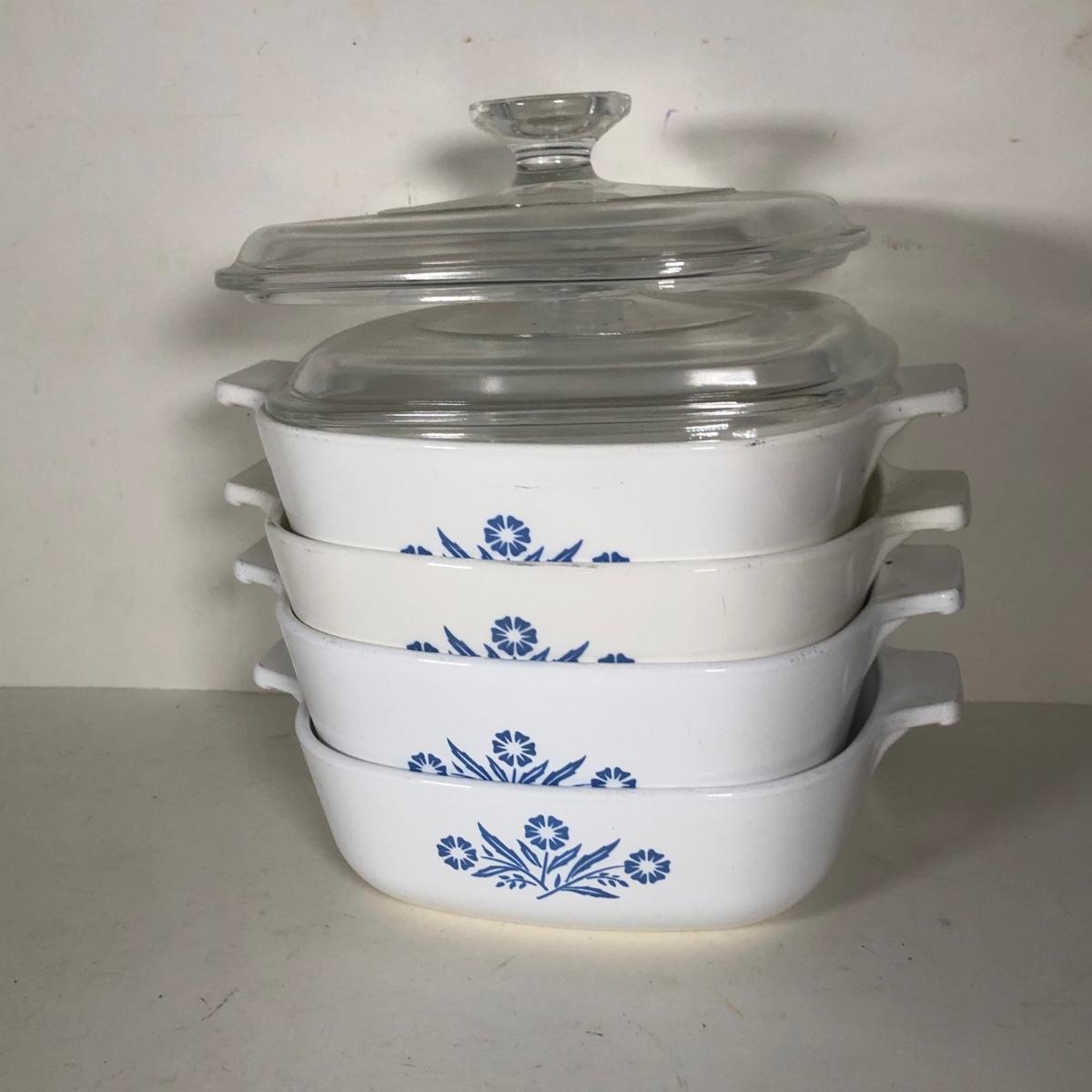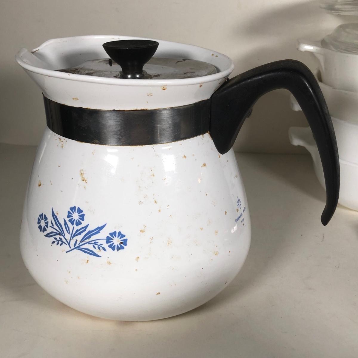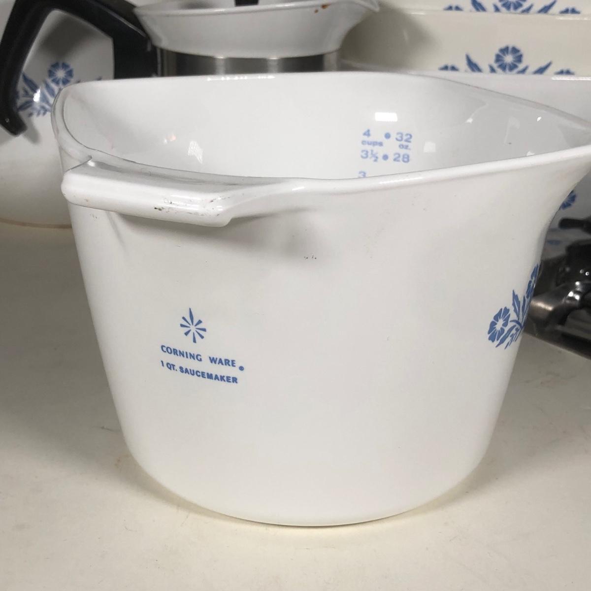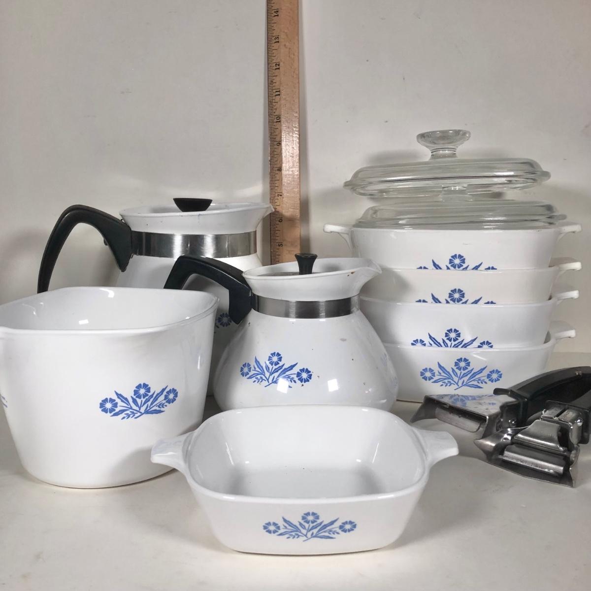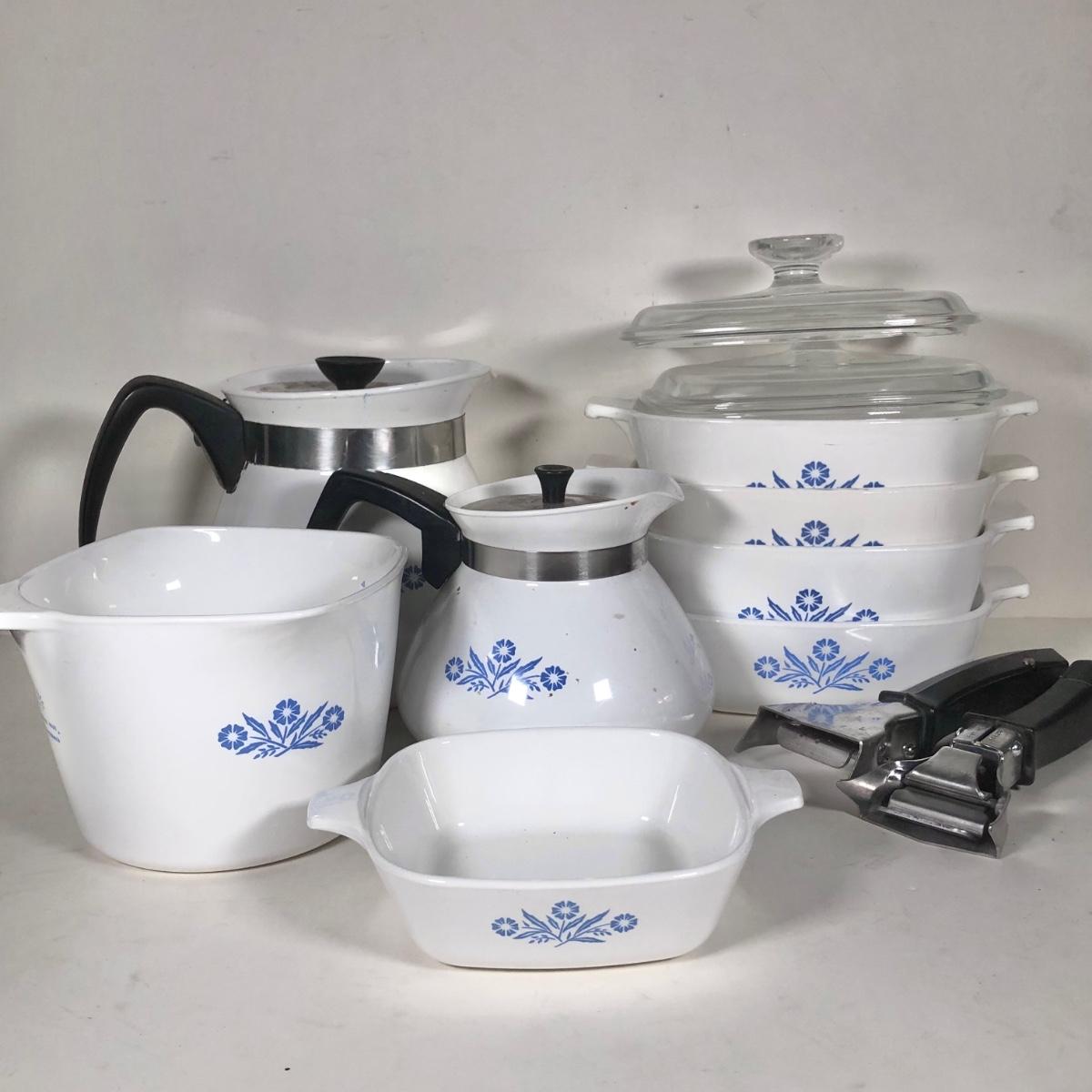 LOT 141K: Vintage Corningware Blur Cornflower Collection - Baking Dishes, Saucemaker & Coffee Pots