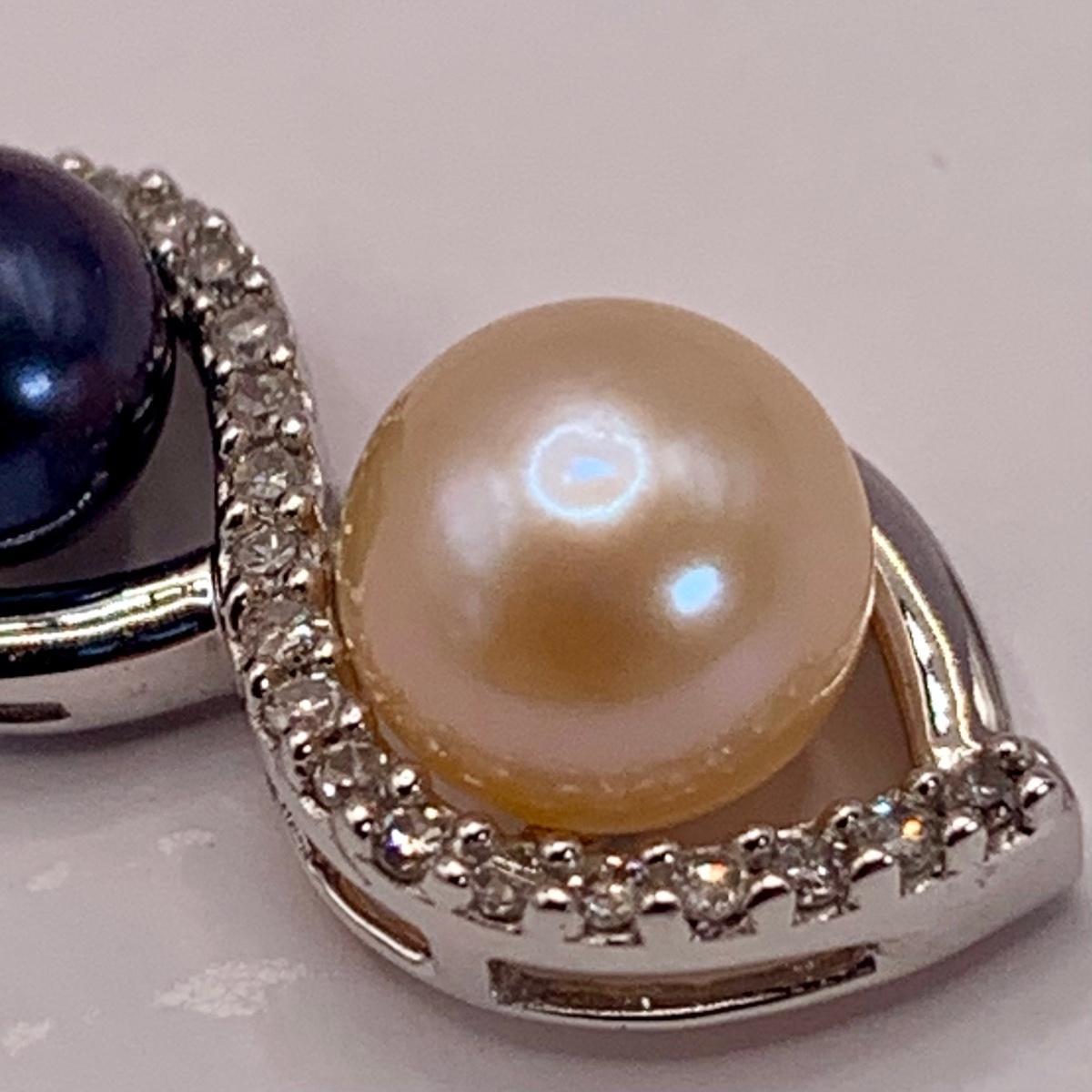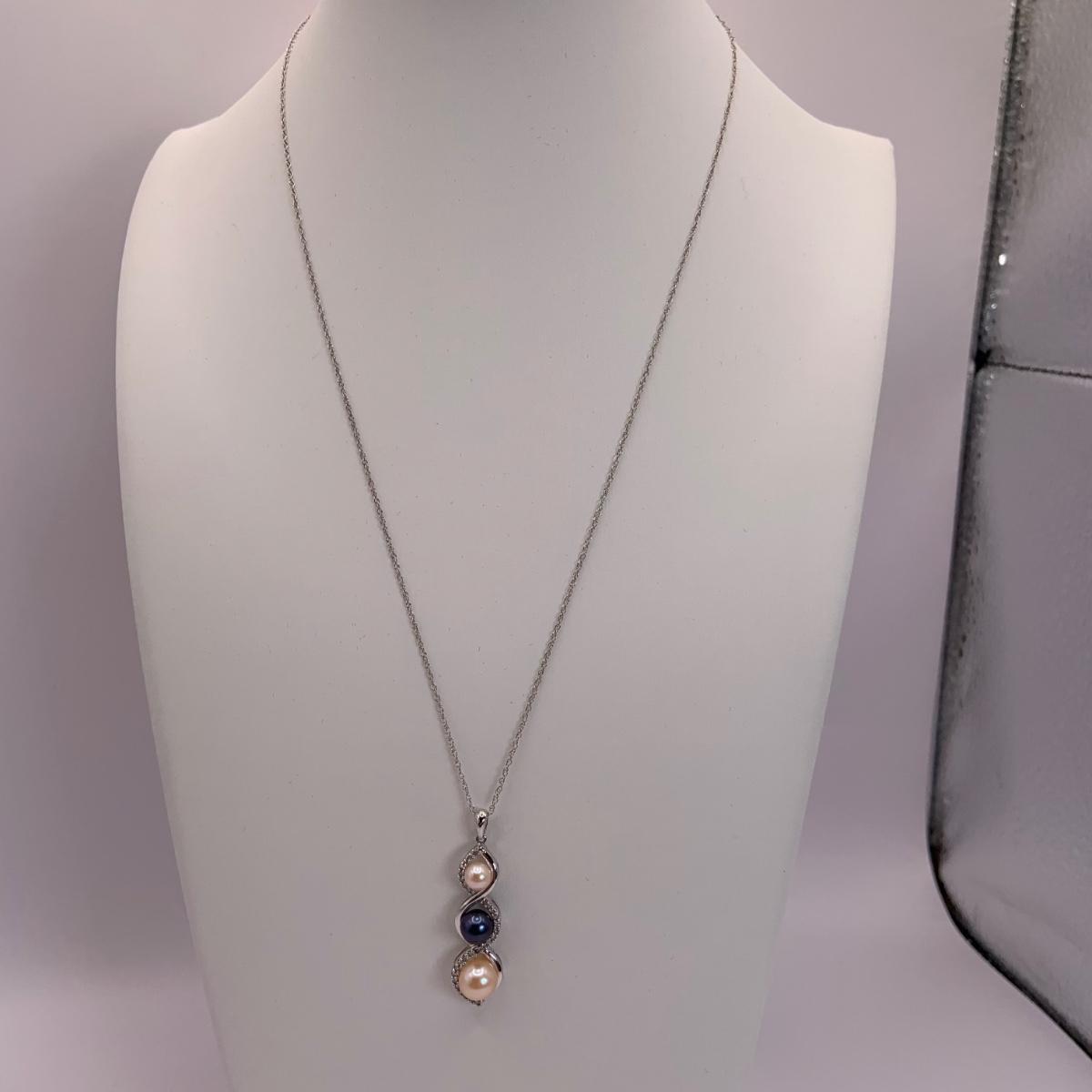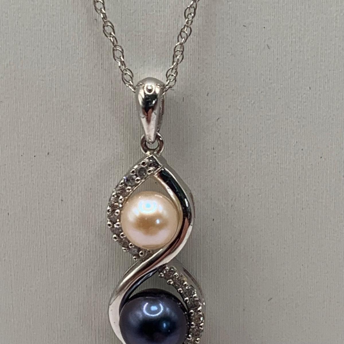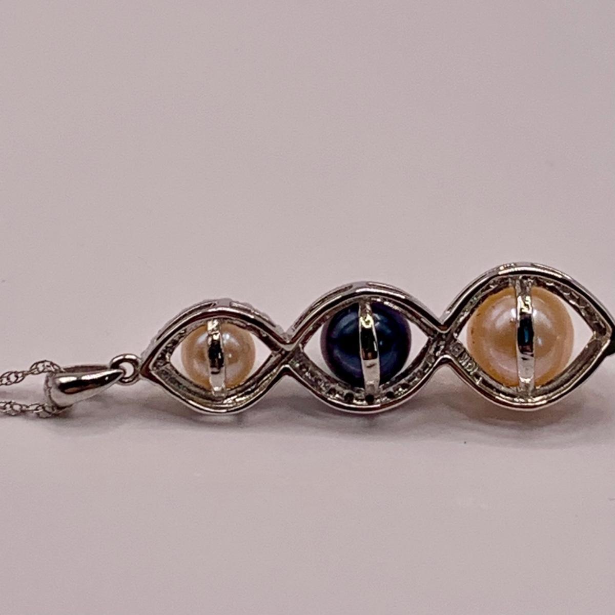 LOT 144J: 10K Gold 18" Necklace and Pendant - Tri-Color Freshwater Pearl and Diamonds