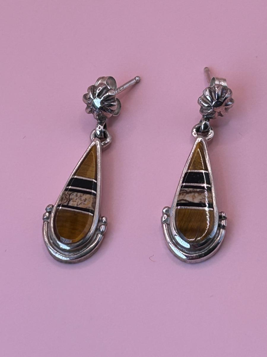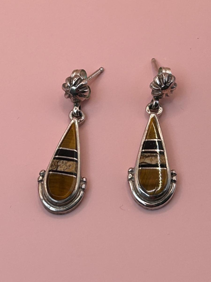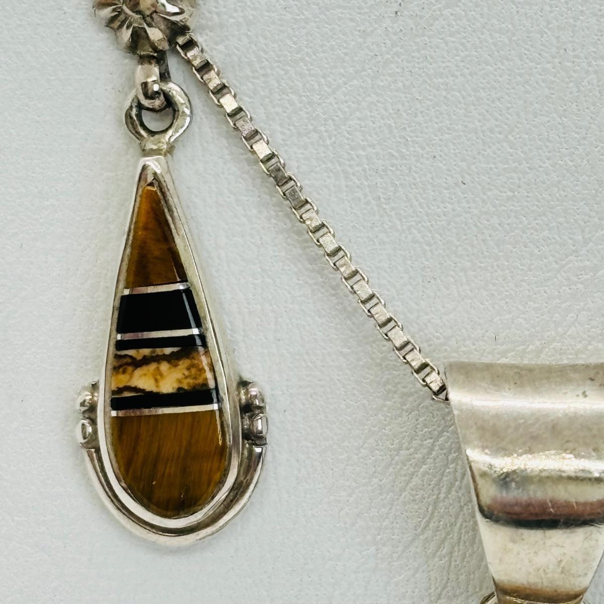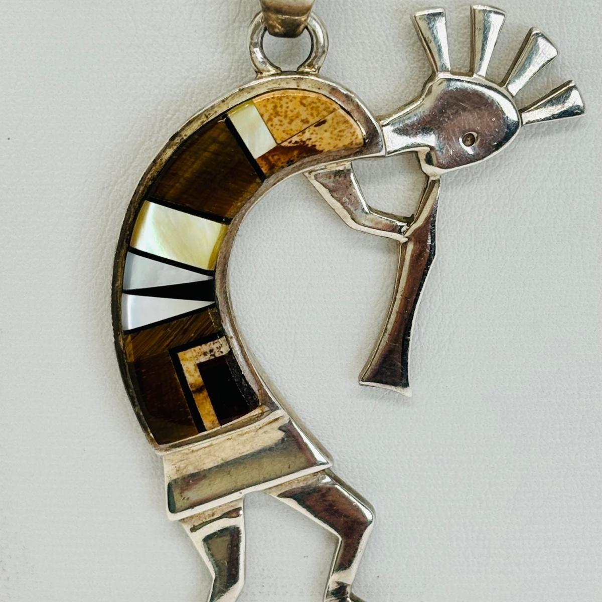 LOT 145J: Sterling Silver 30" Chain w/ Pendant Signed TSF Kokopelli + Earrings by Rick Tolino