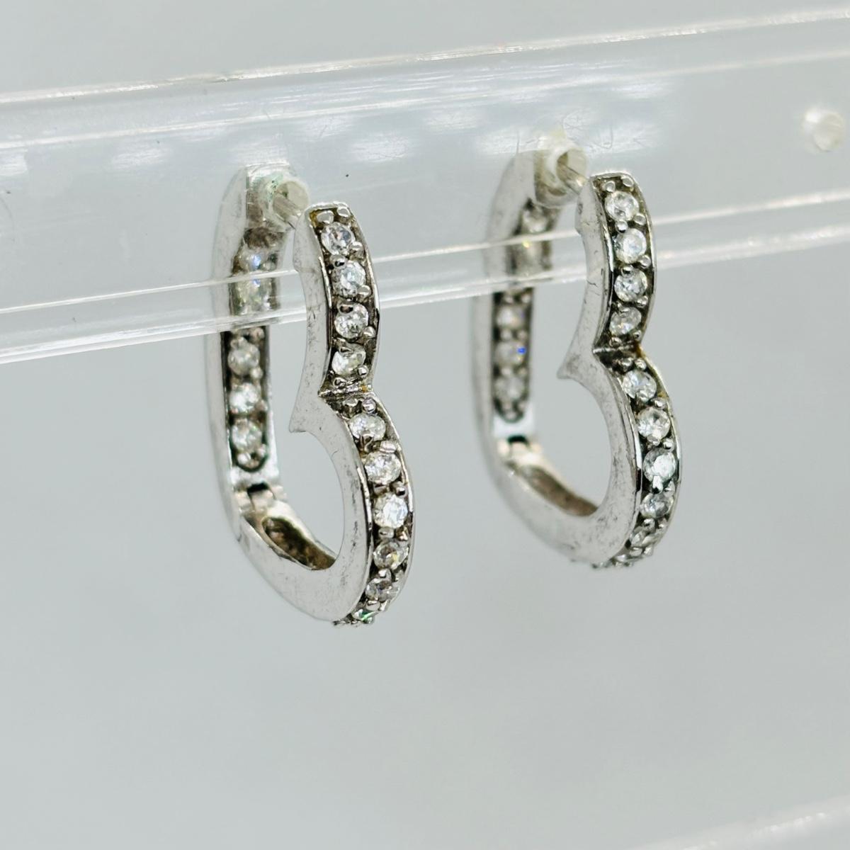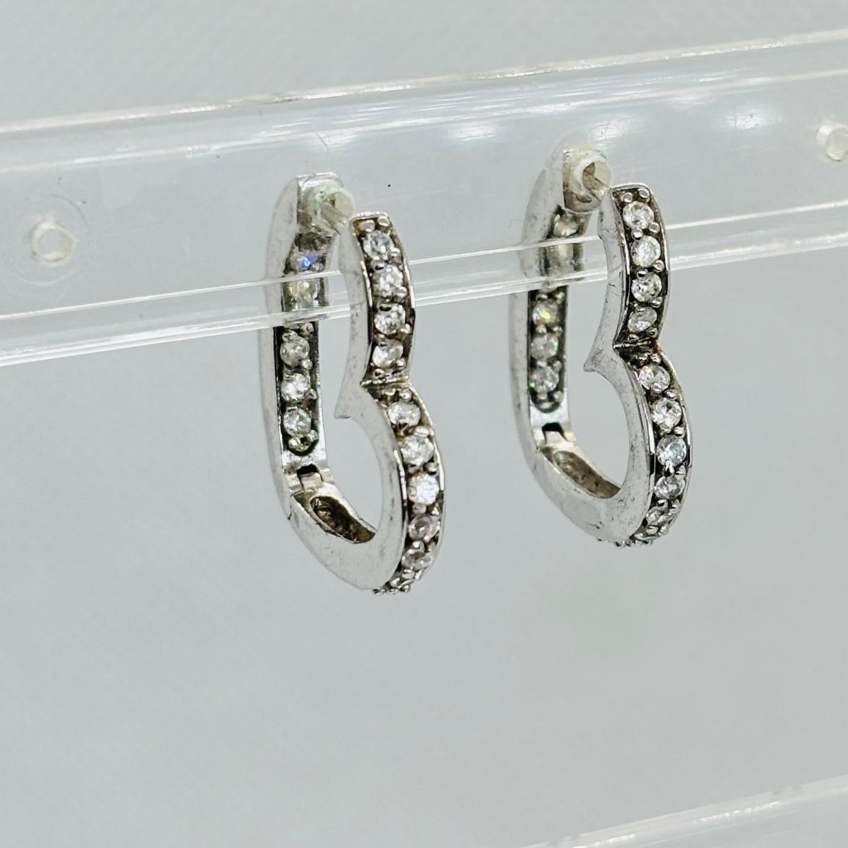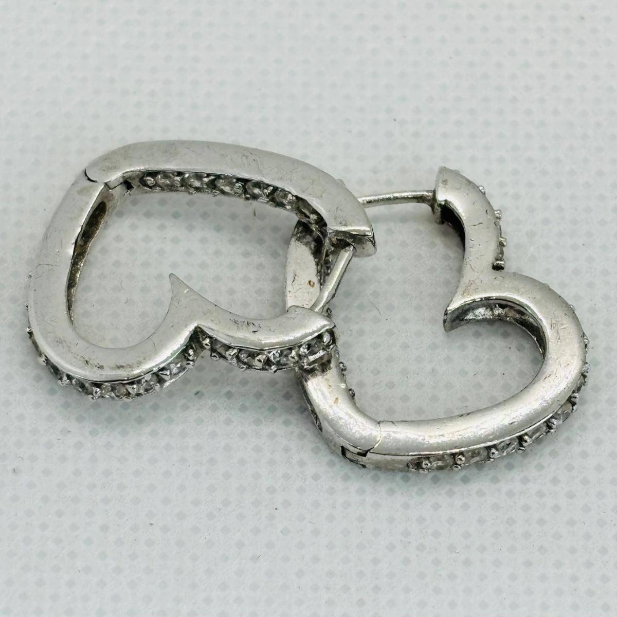 LOT 147J: Sterling Silver Heart Shaped Channel Set Diamond Earrings