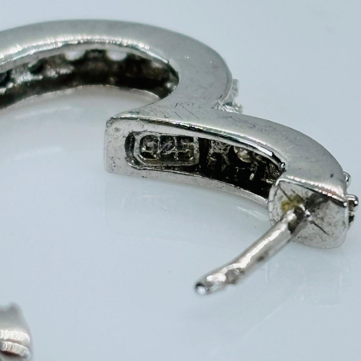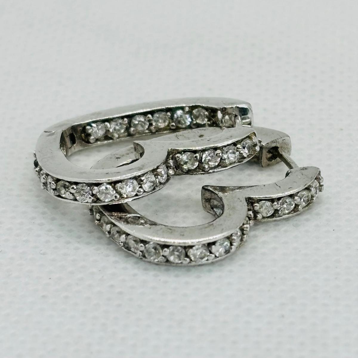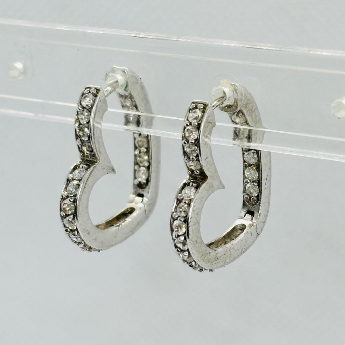 LOT 147J: Sterling Silver Heart Shaped Channel Set Diamond Earrings