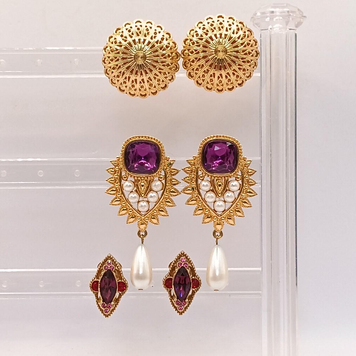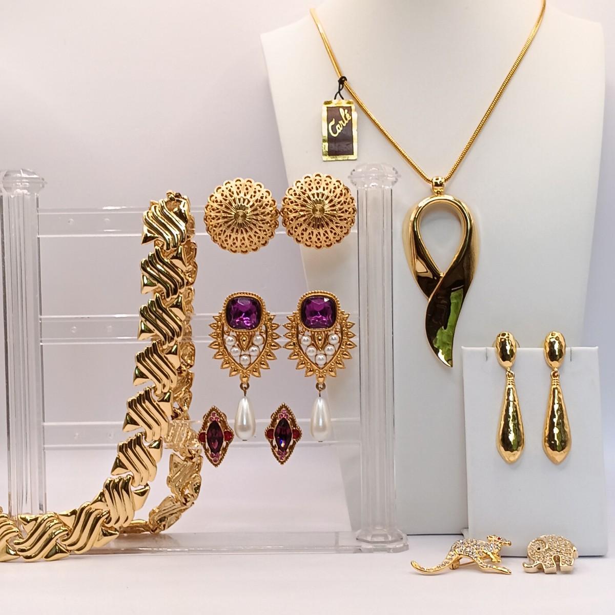 LOT 12: Vintage Gold-Tone Carlé Necklace, Heavy Link Chain Necklace, Gold-Tone Earrings and Broaches