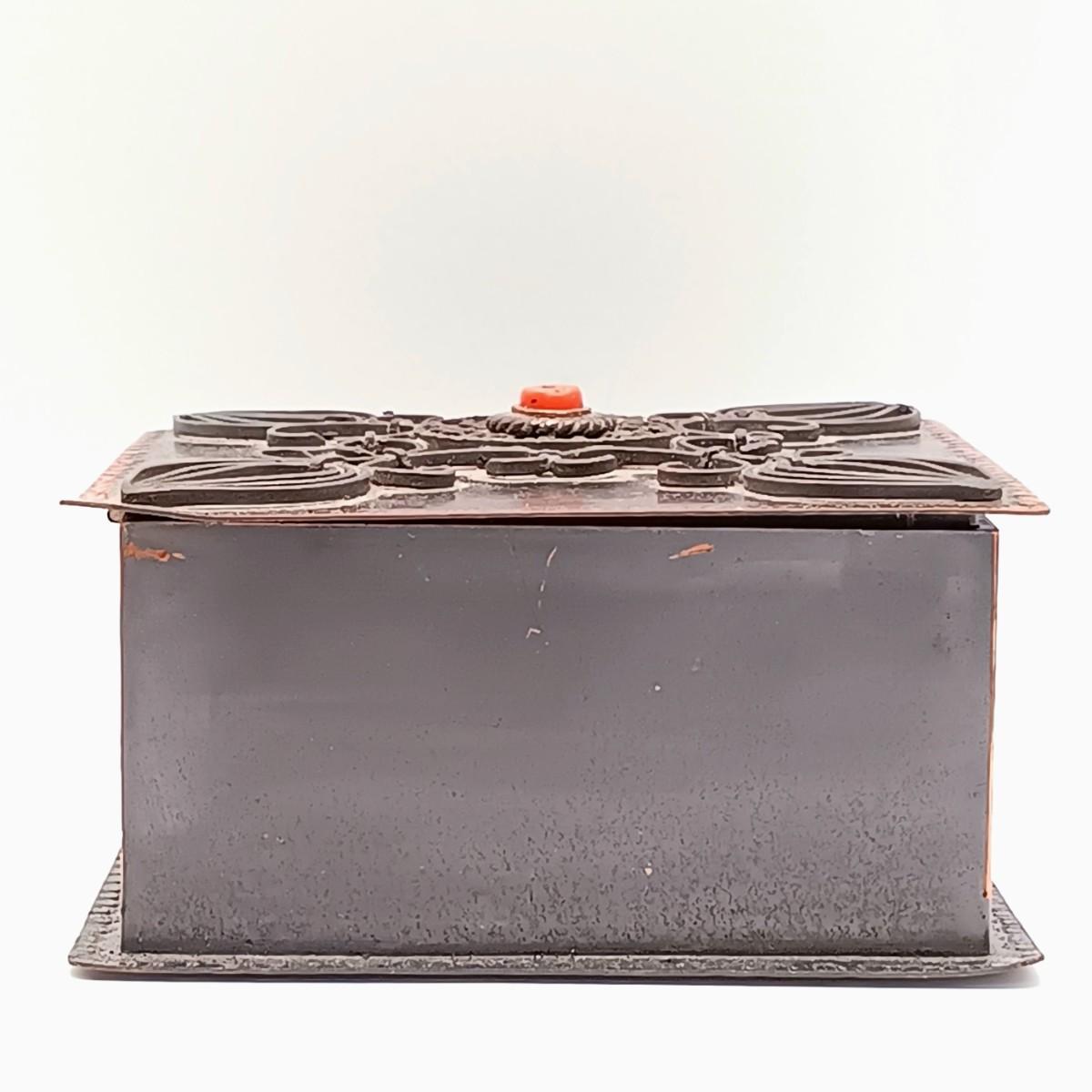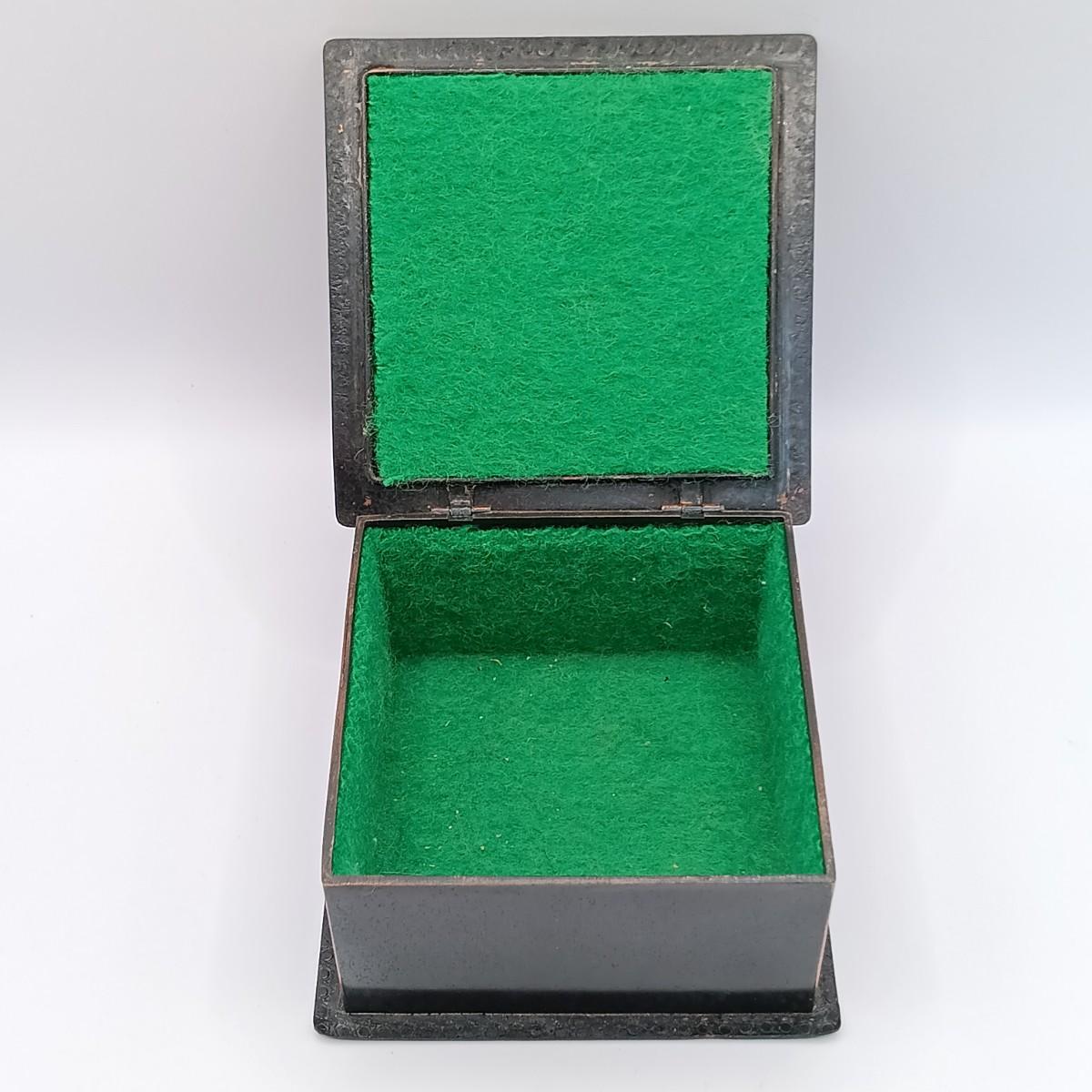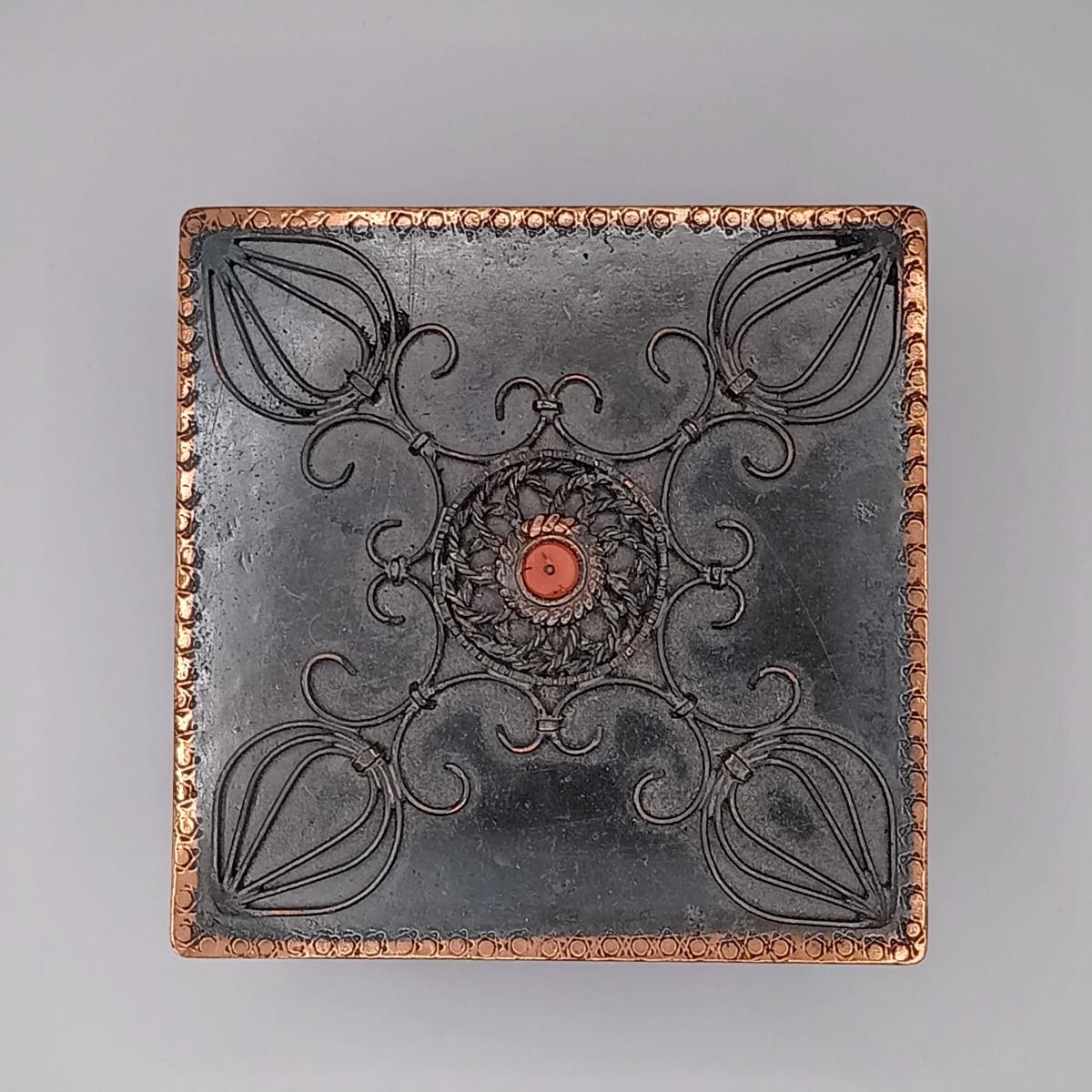 LOT 14: Wool Floral Tapestry, Metal Trinket Box and Carved Wood / Nut Prayer Beads