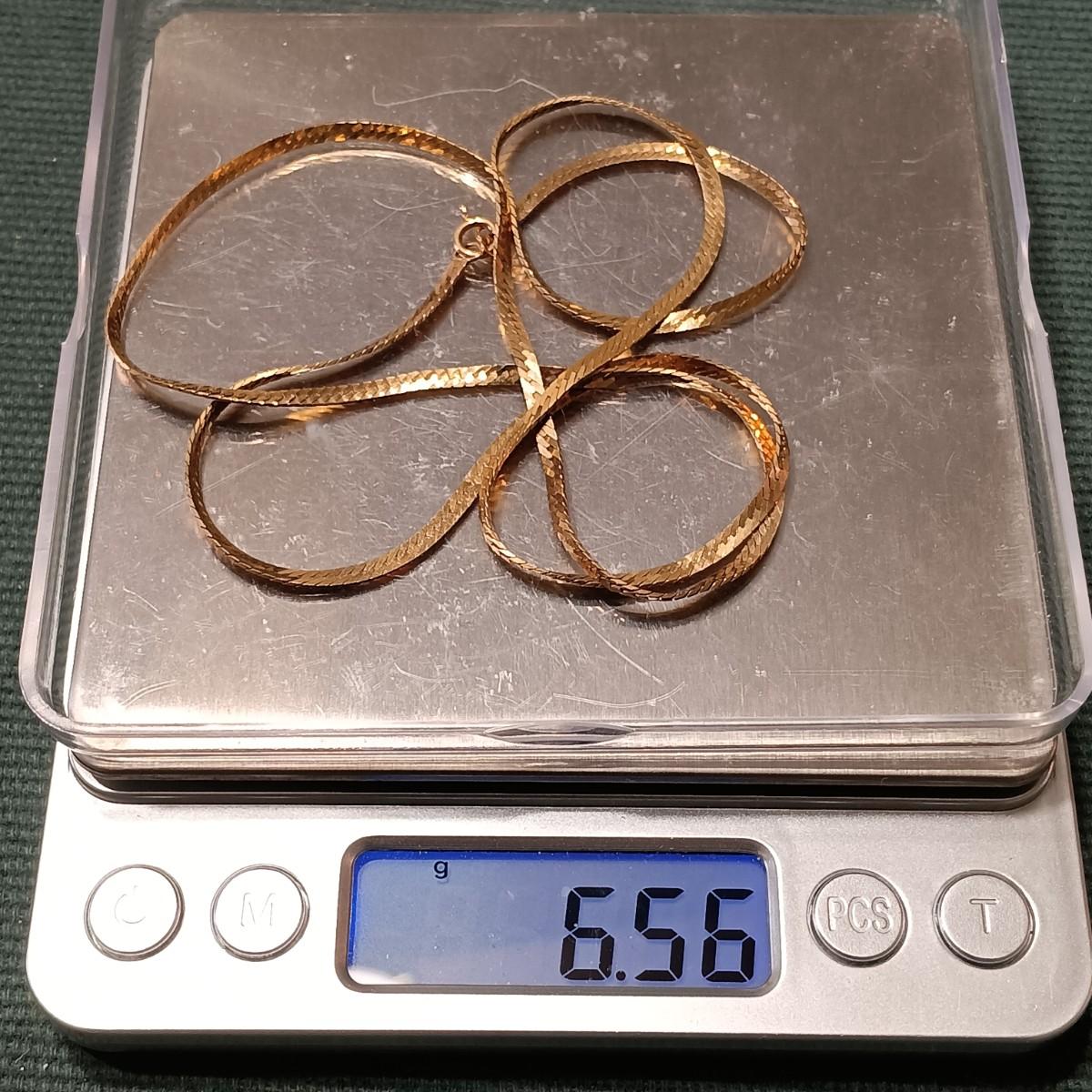 LOT 18: Gold Herringbone Chain Necklace 14K, 23", Tw 6.56g