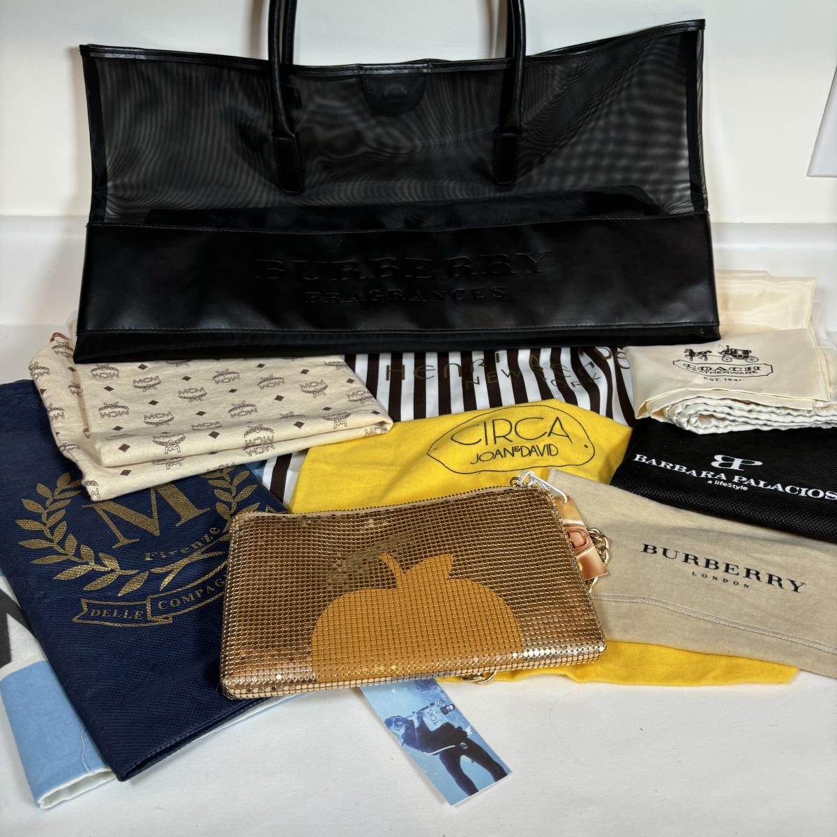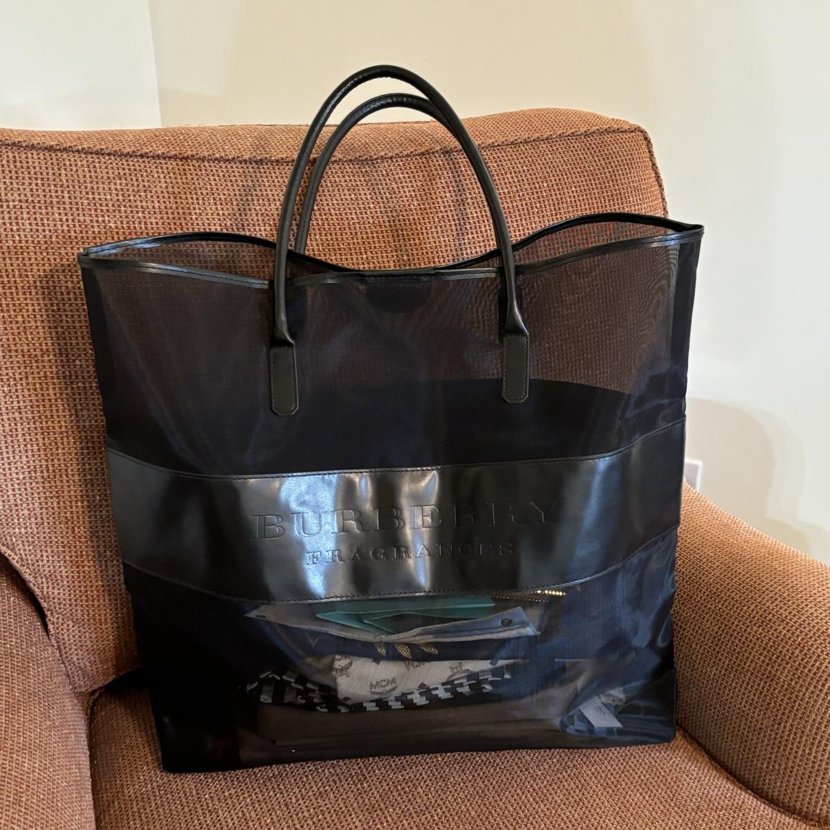 LOT 27: Designer Dust Cover Bags in a Burberry Fragrances Black Mesh Tote Bag