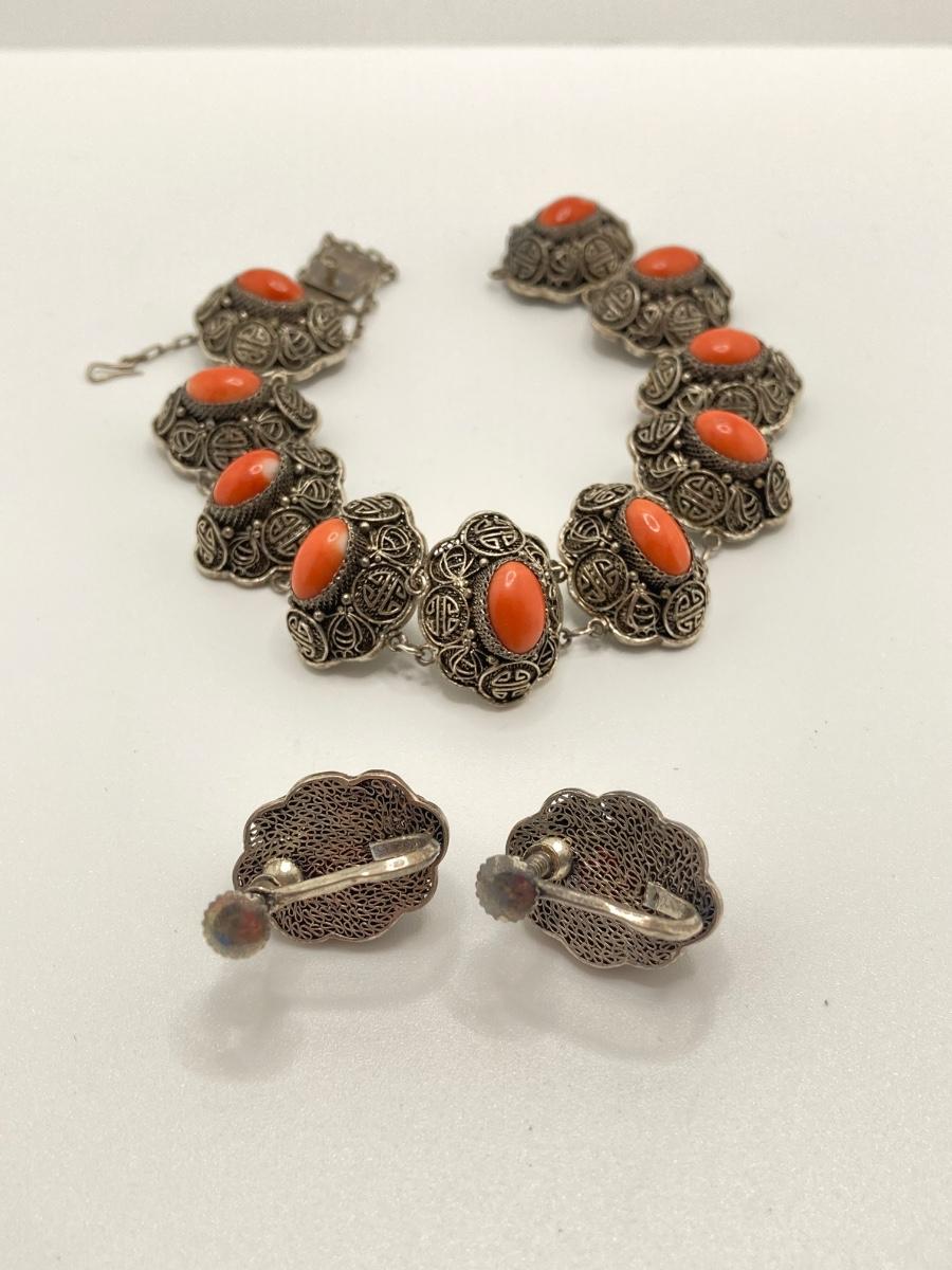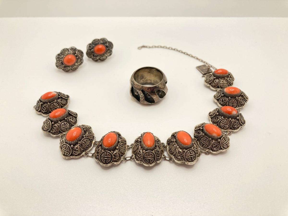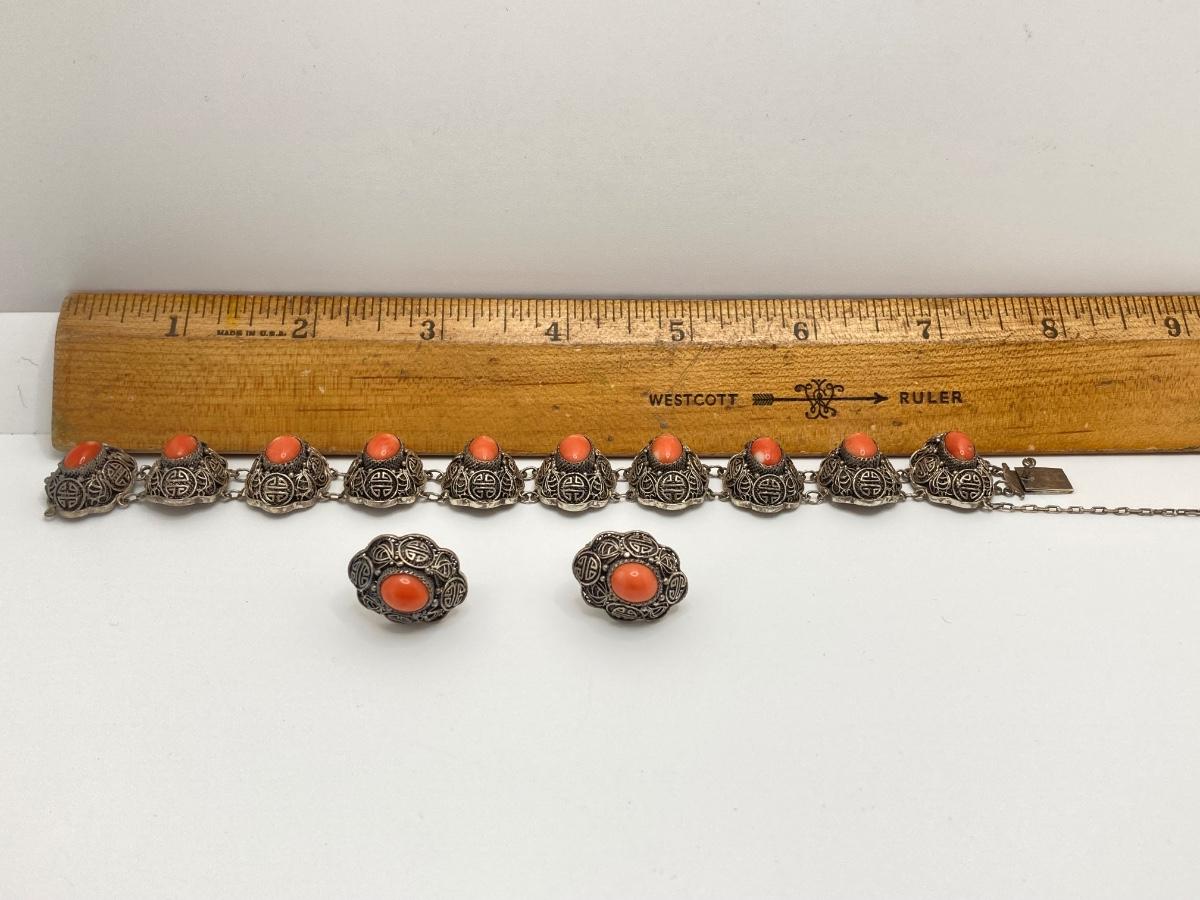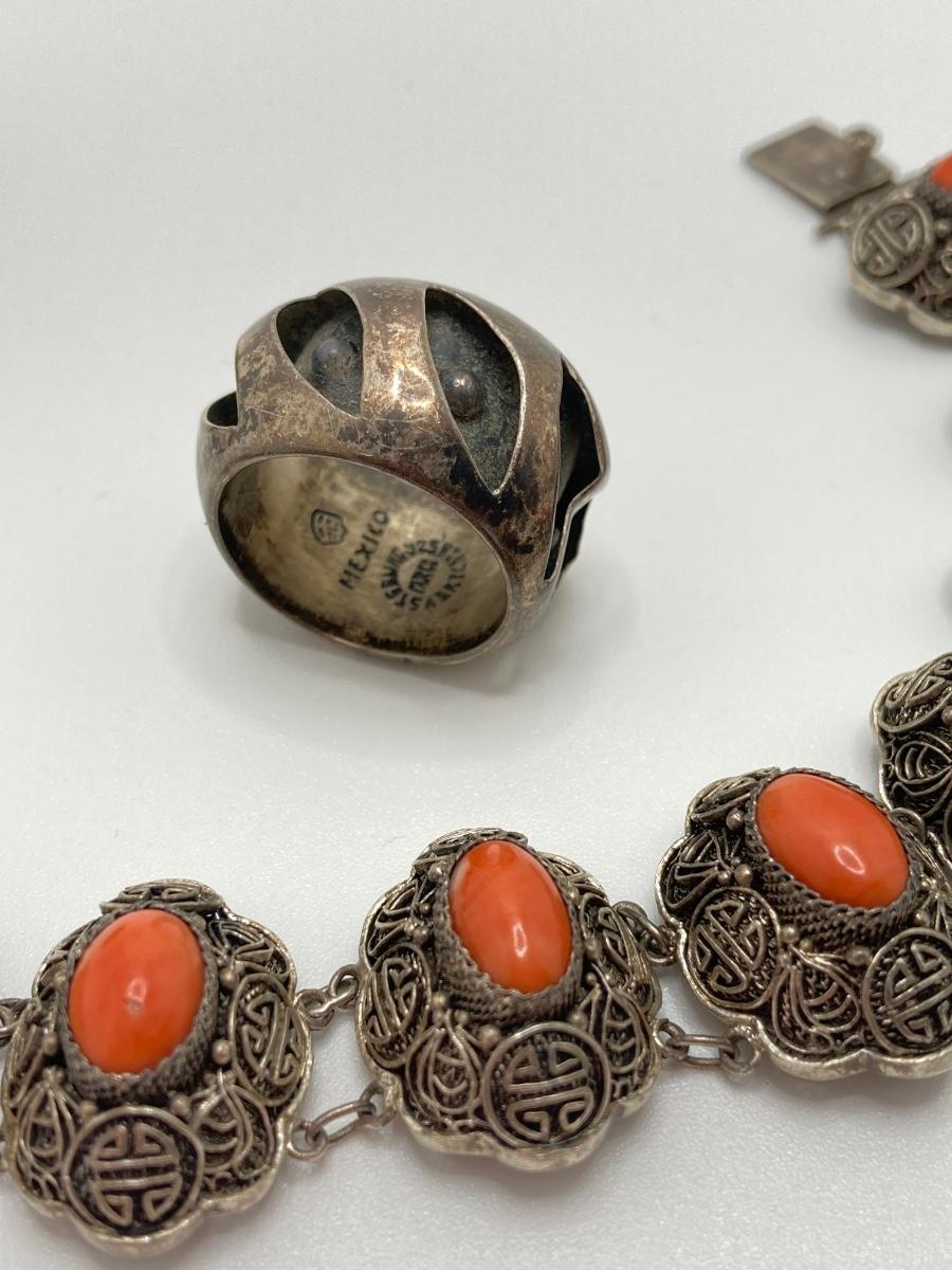 LOT 31: Ornate Sterling Bracelet / Earrings and Mexico Silver Ring