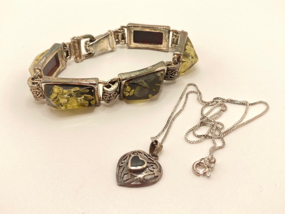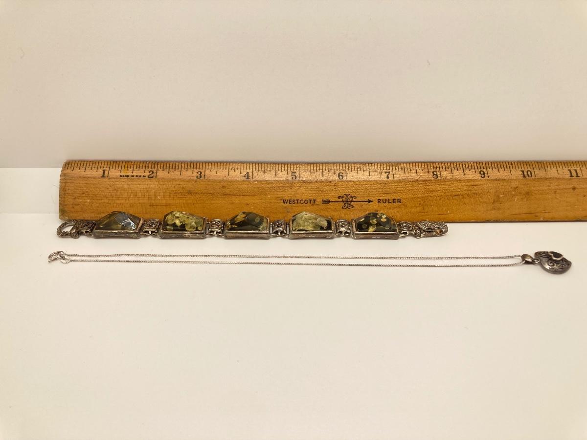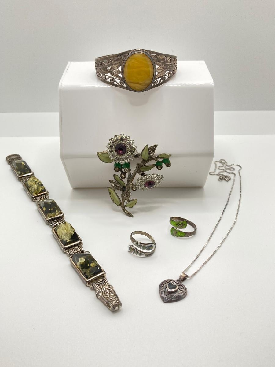 LOT 34: Sterling Jewelry and More Collection - Heart Pendant Necklace, Adjustable Rings (Thailand / Siam) and Bracelets
