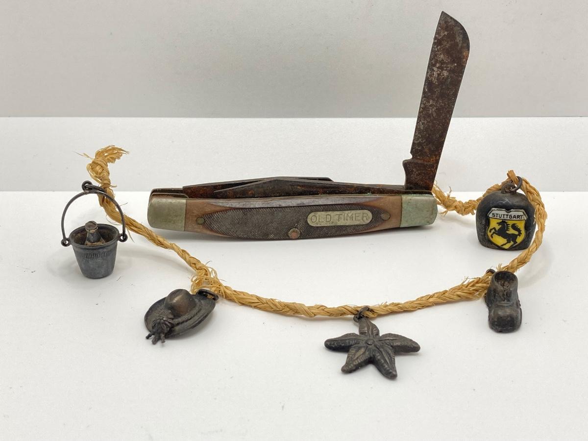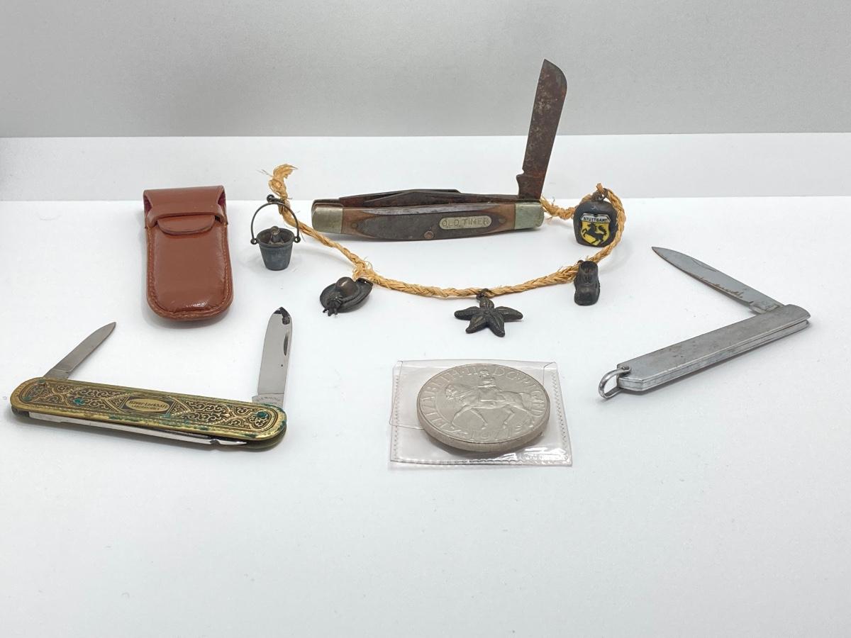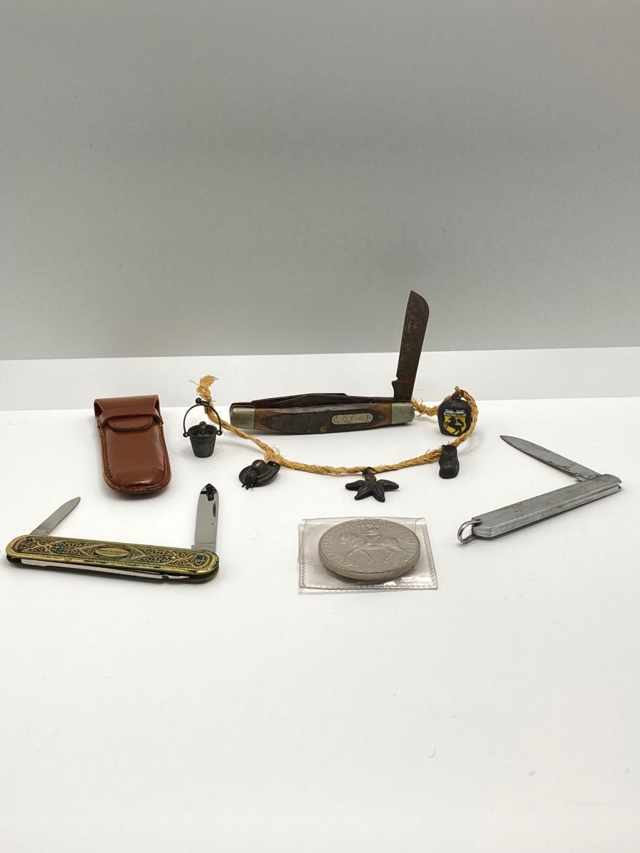 LOT 44: Vintage / Antique Knives, Sterling Charm Bracelet and Queen Elizabeth Coin