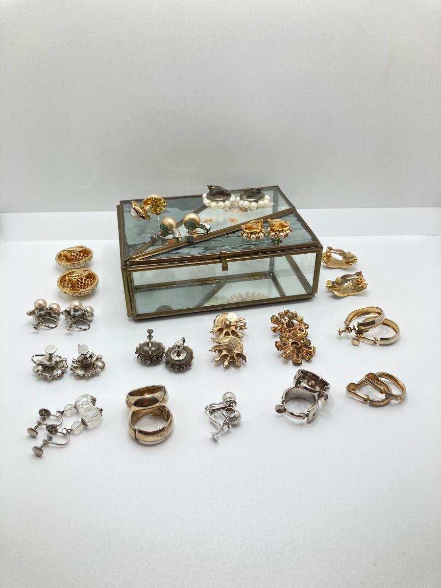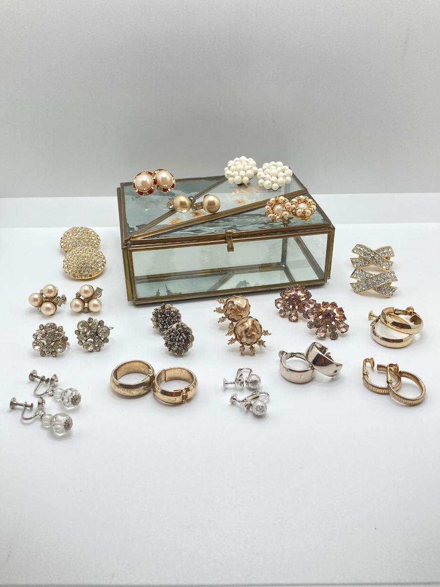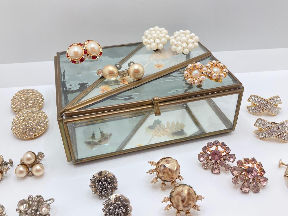 LOT 53: Antique / Vintage Earrings with Glass / Mirror Jewelry Box - Coro, German, Vendome and More