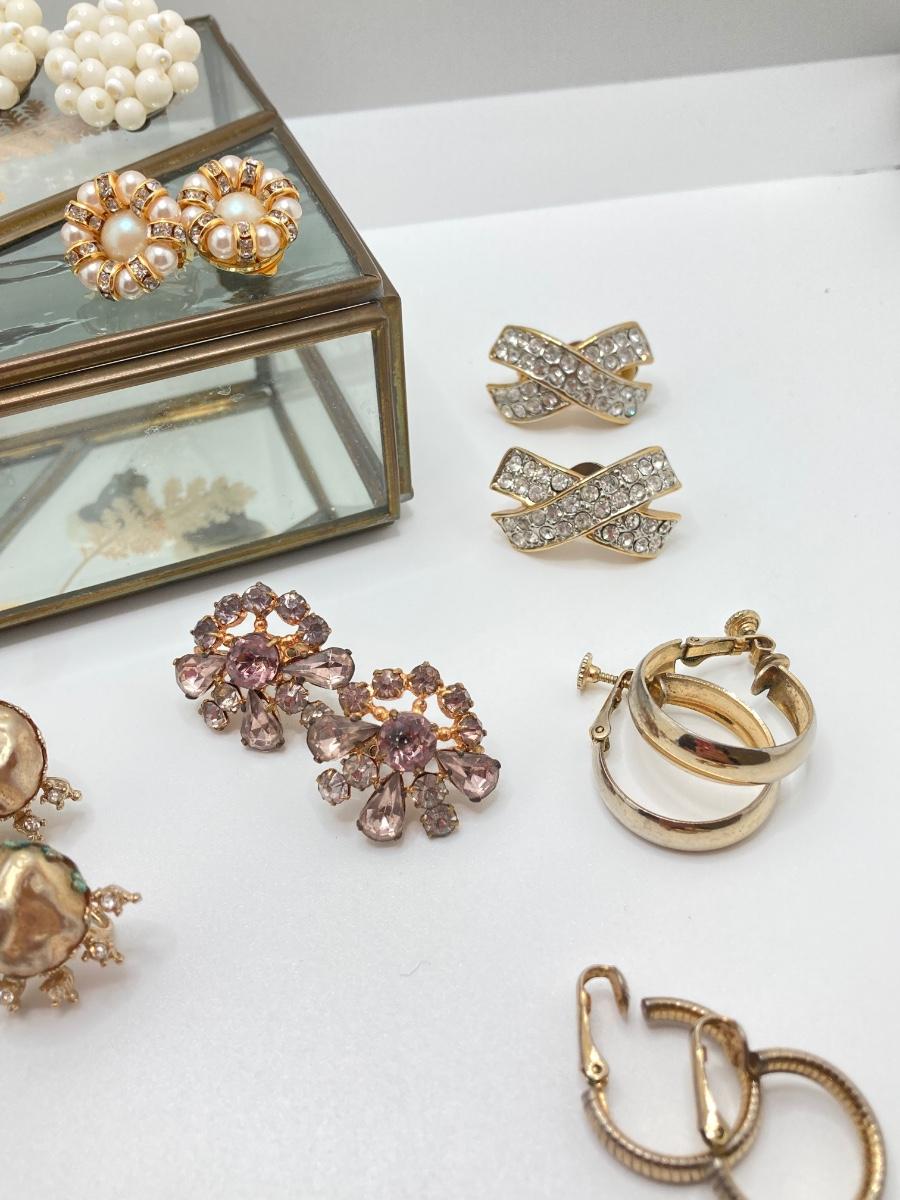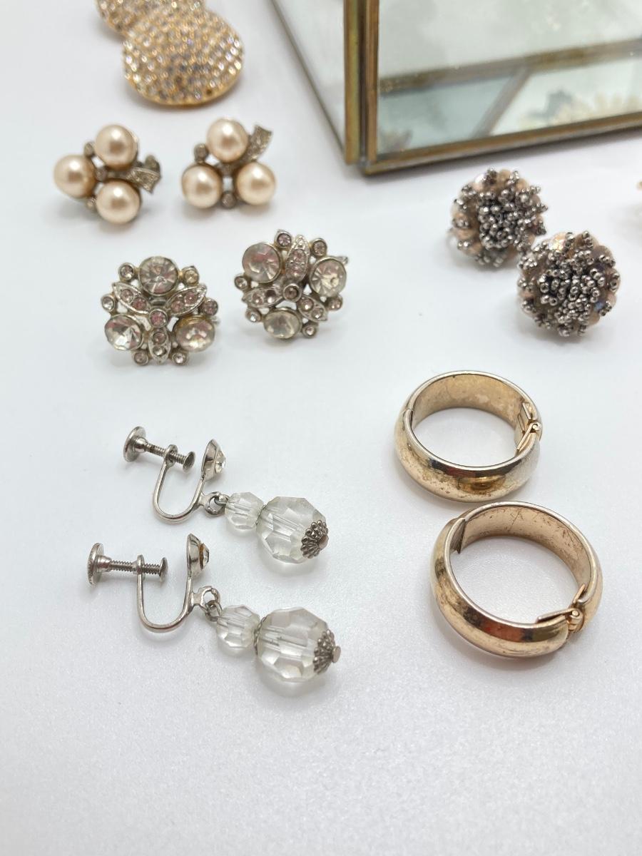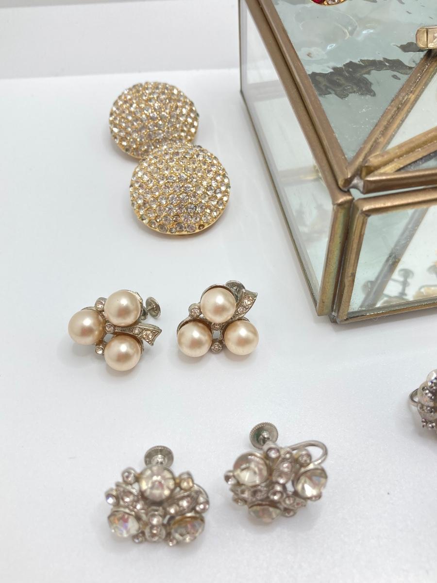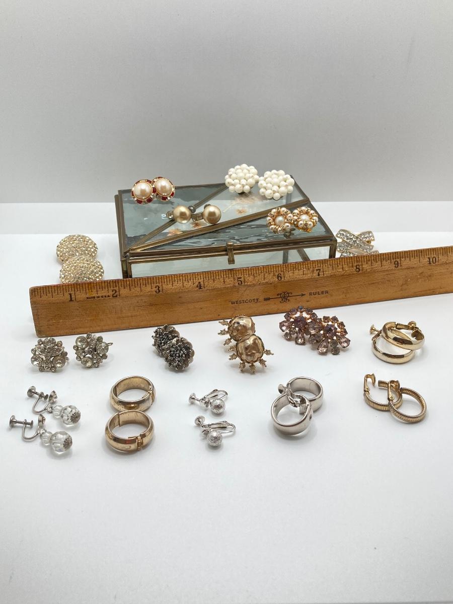 LOT 53: Antique / Vintage Earrings with Glass / Mirror Jewelry Box - Coro, German, Vendome and More