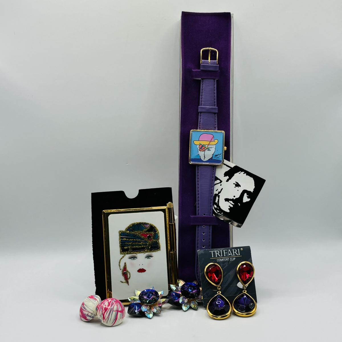 LOT 57: Peter Max Watch w/Paperwork & Packaging, Art Deco Notepad Holder w/Pen & More