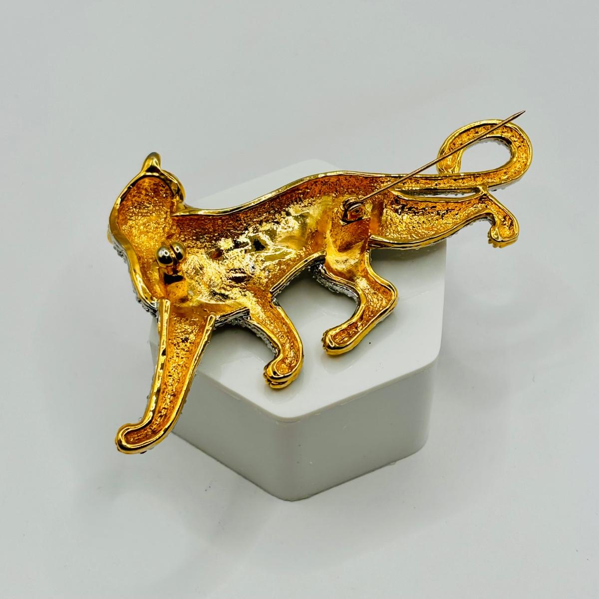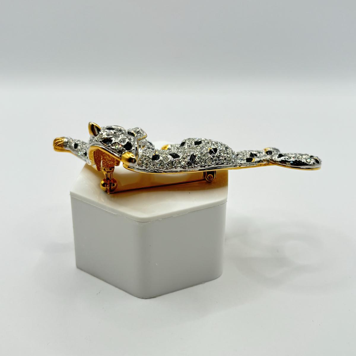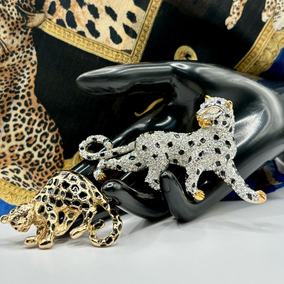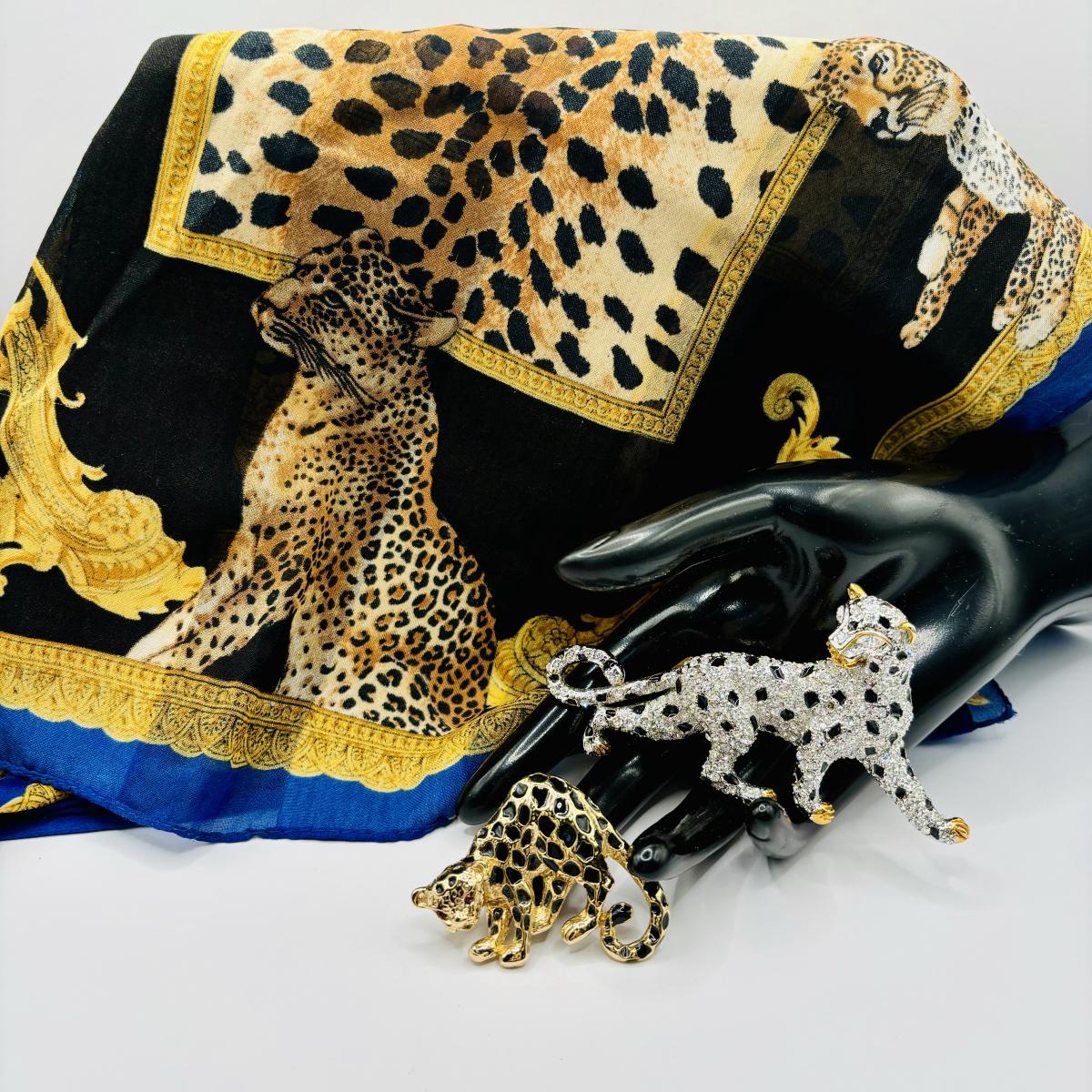 LOT 58: Leopard Collection: Vintage Parkland Gold Tone Brooch, Rhinestone Statement Brooch & a Beautiful Scarf
