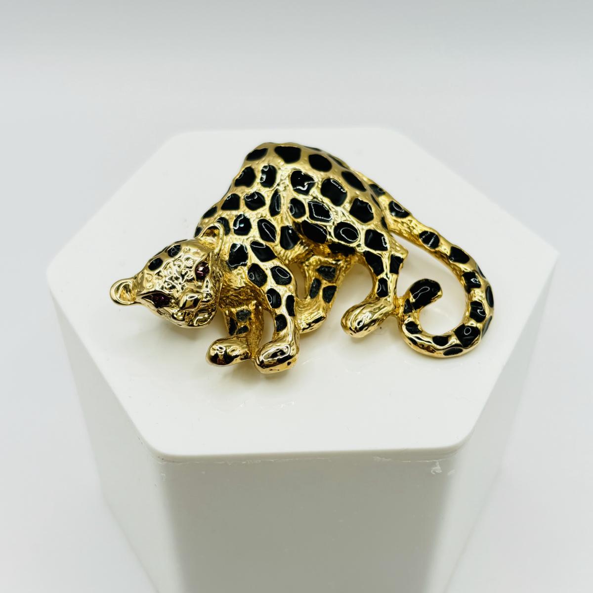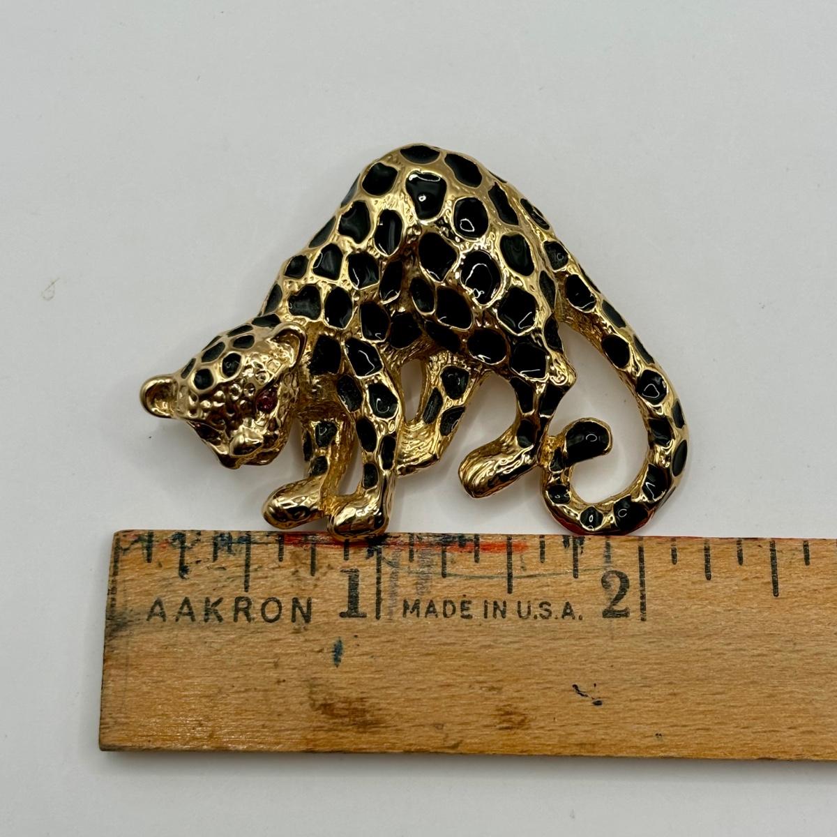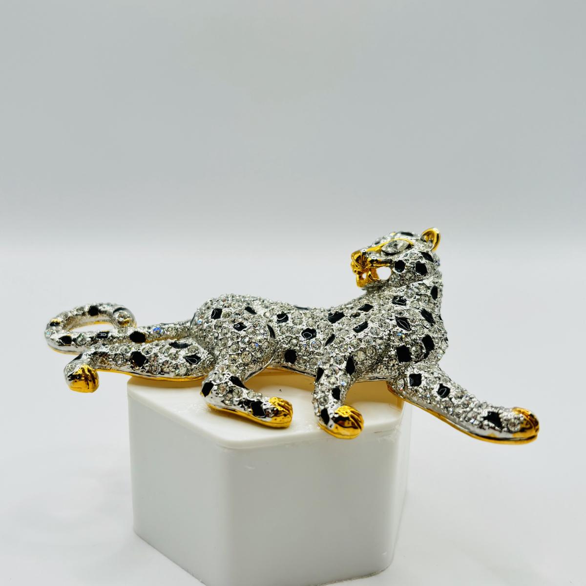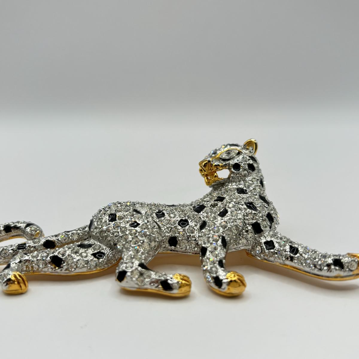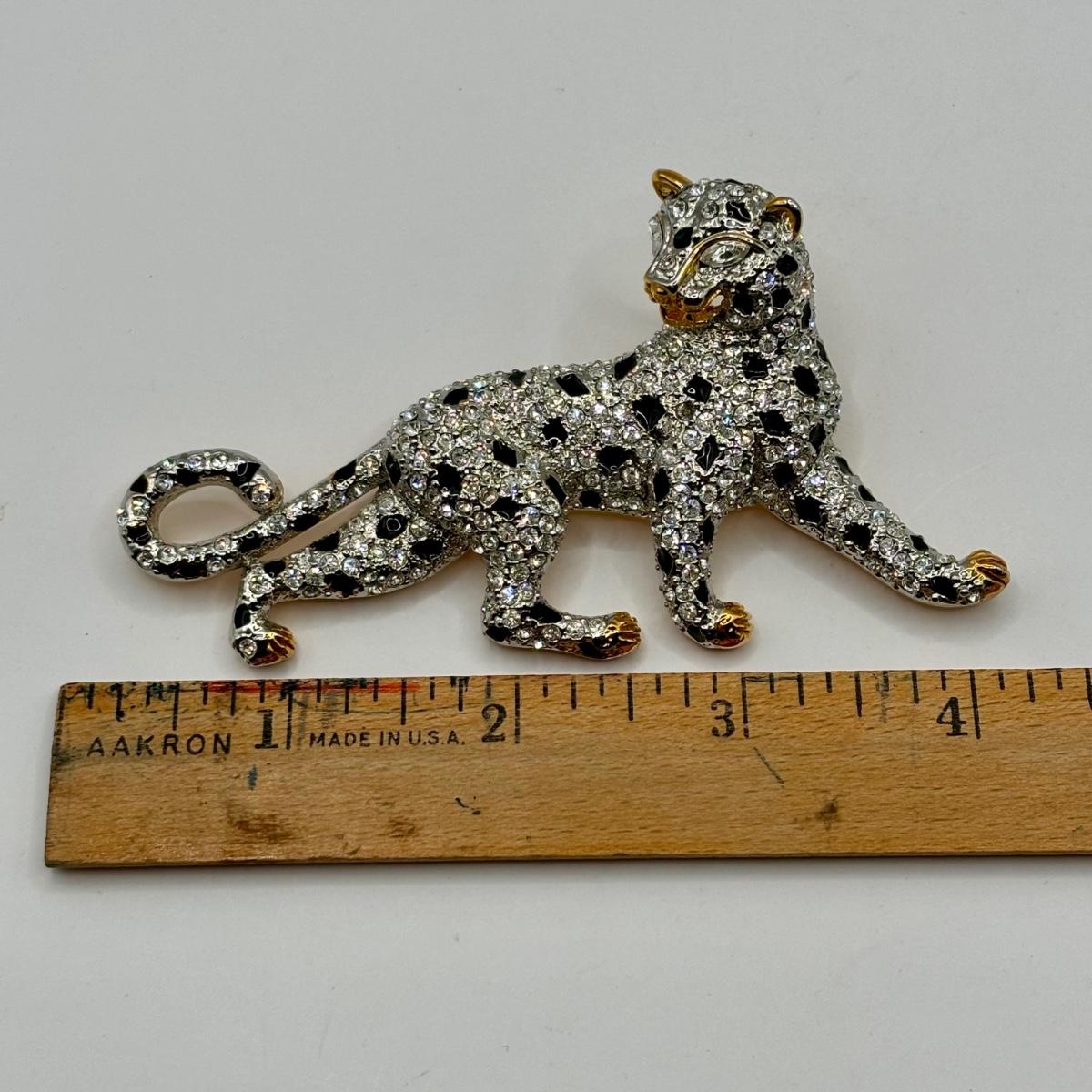 LOT 58: Leopard Collection: Vintage Parkland Gold Tone Brooch, Rhinestone Statement Brooch & a Beautiful Scarf