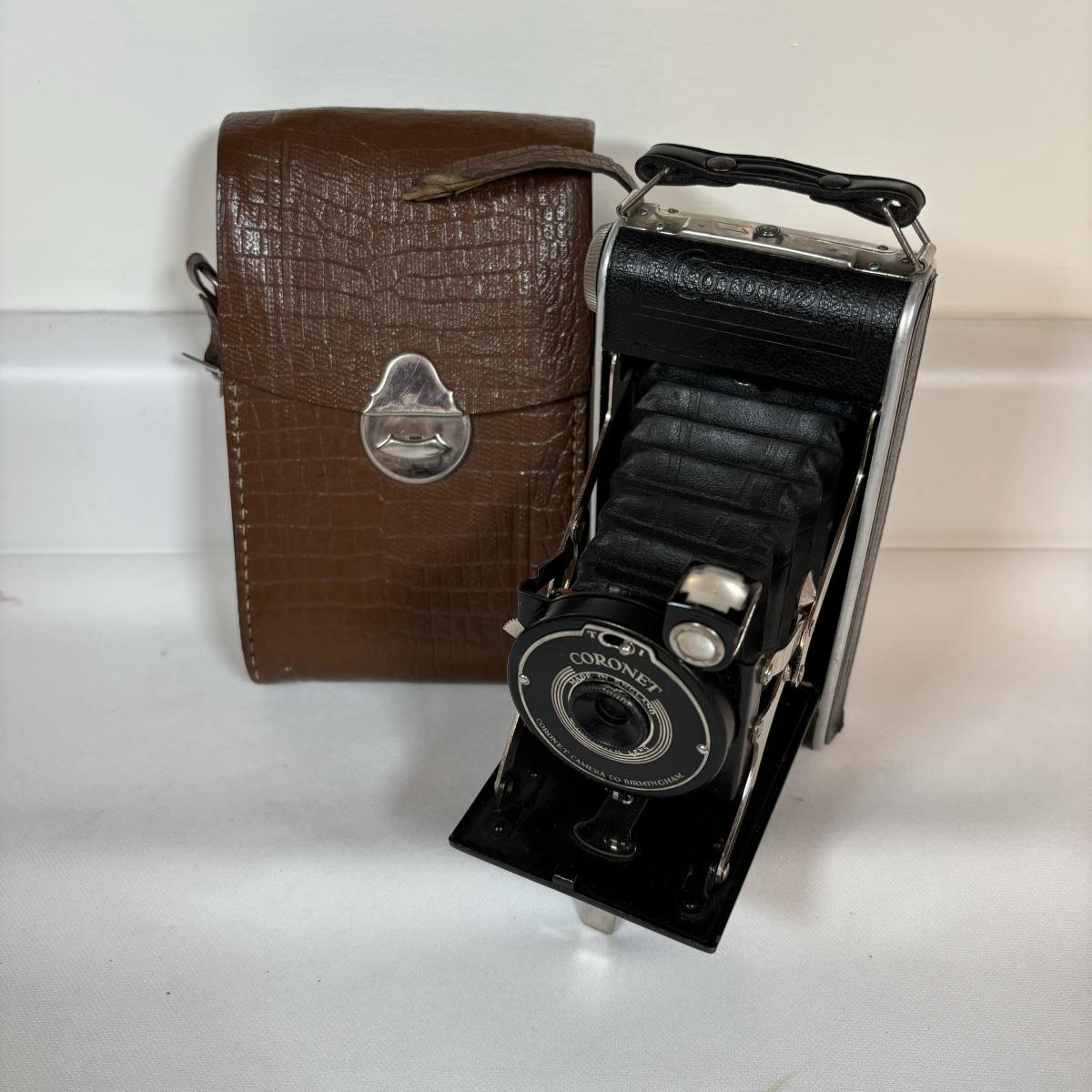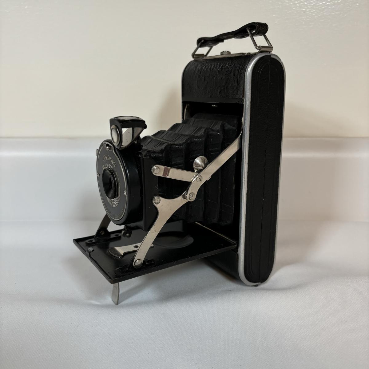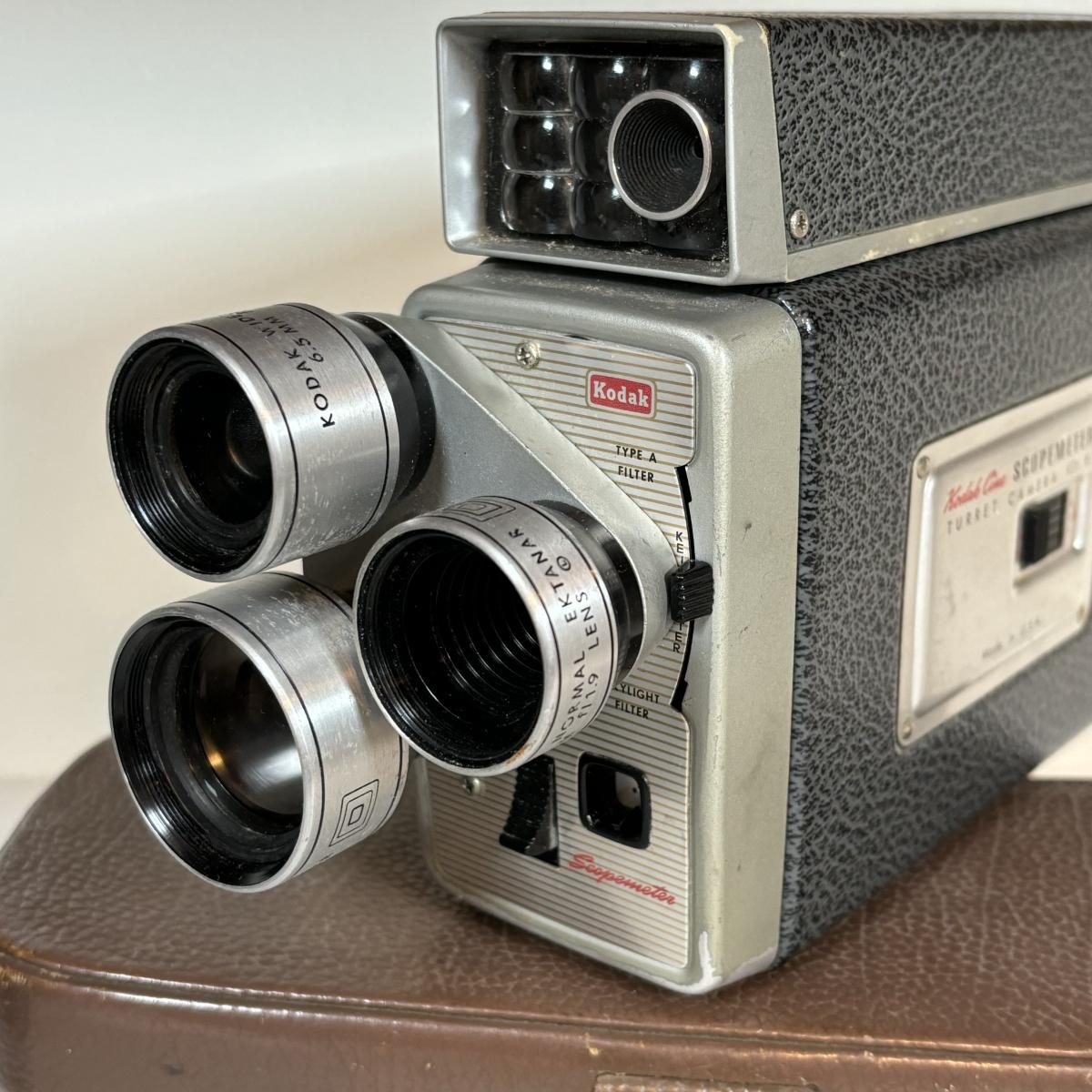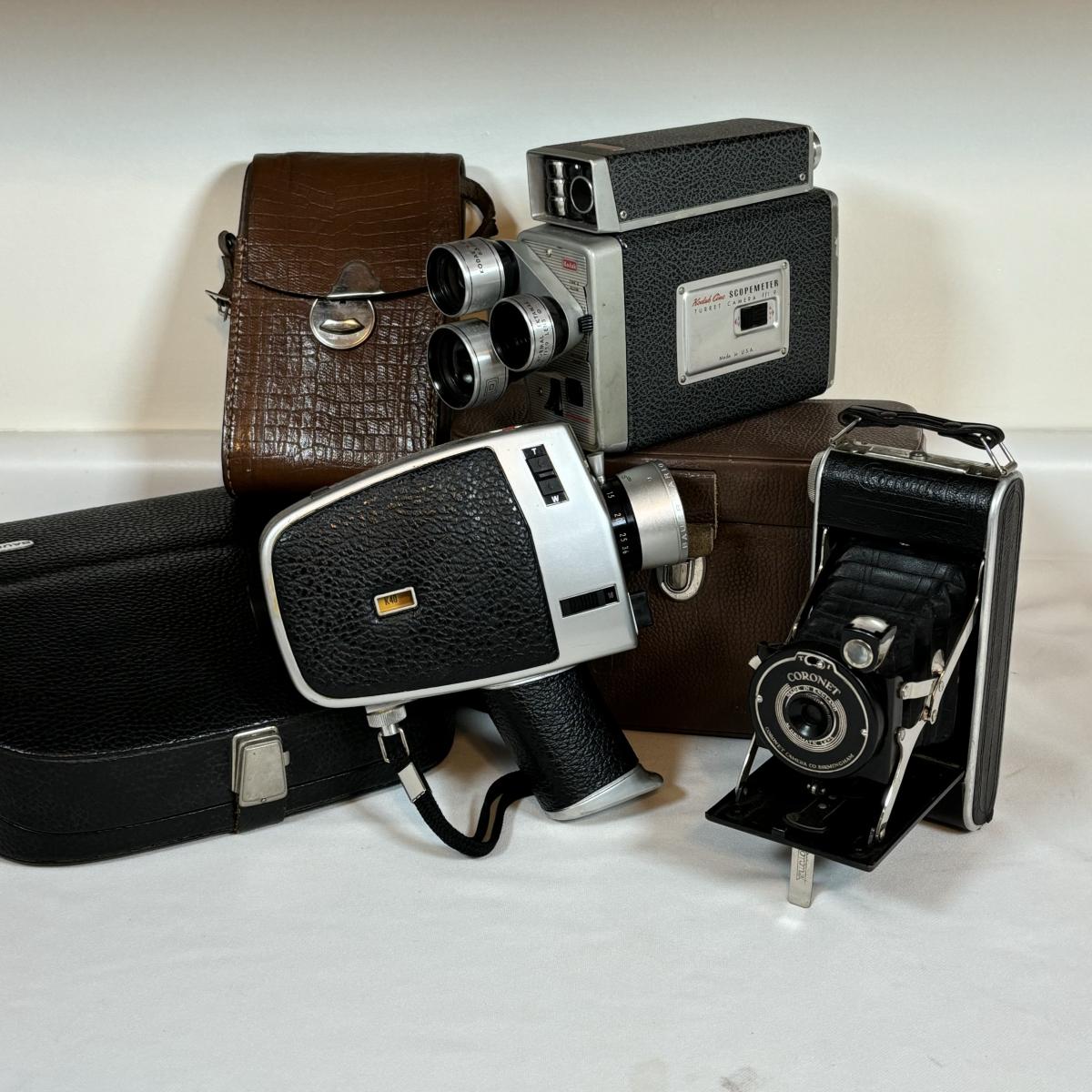 LOT 67: Vintage/Antique Cornet Folding Camera w/Case, Bauer C1M Super 8 Movie Camera & Kodak Scopemeter Camera Turret f/1.9