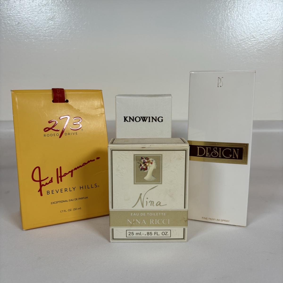 LOT 71: Perfume Collection: Fred Hayman 273 Rodeo Drive, Nina Ricci, Estee Lauder Knowing and PS Design