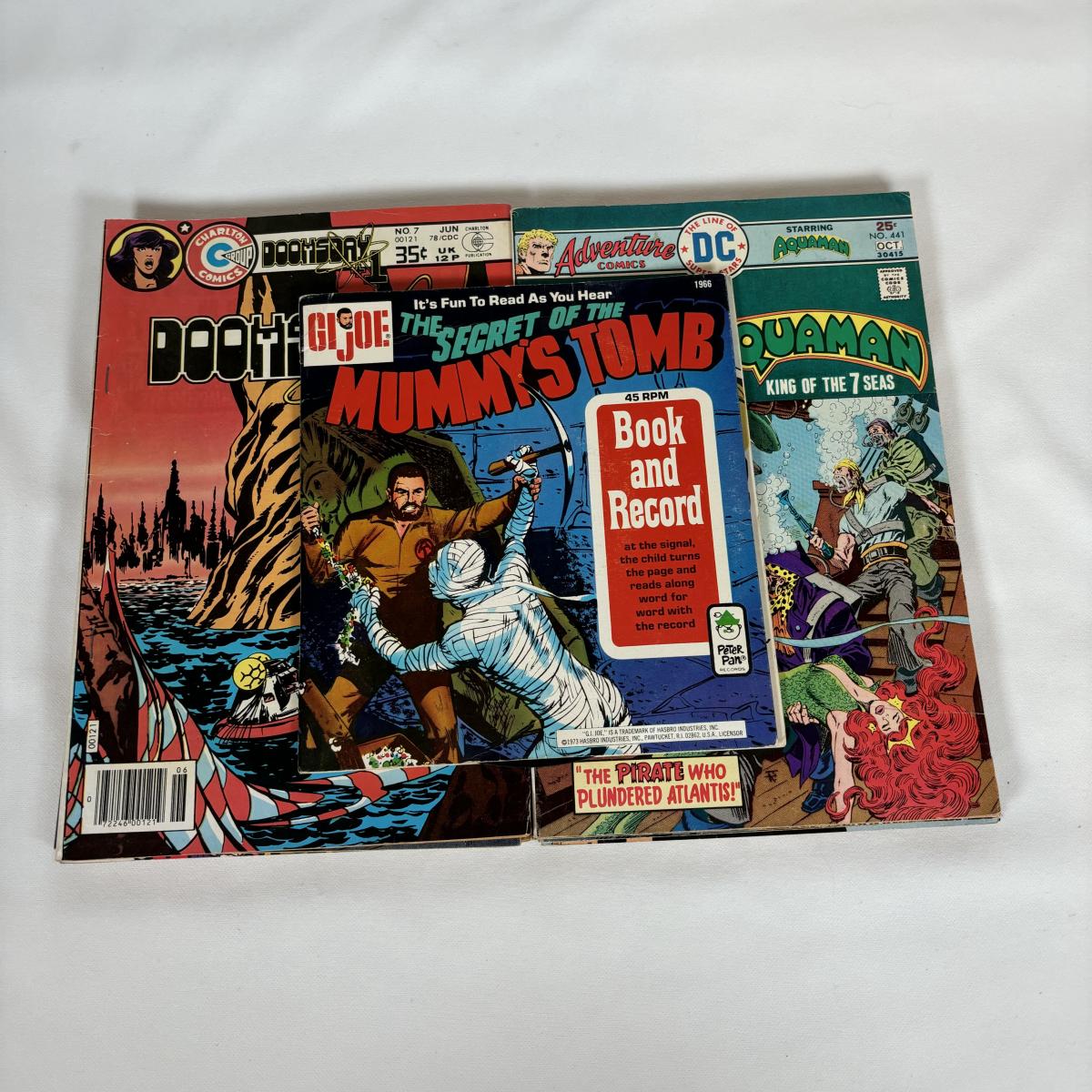 LOT 77: GI Joe "The Secret of the Mummy's Tomb" Record/Book Set and Comic Books