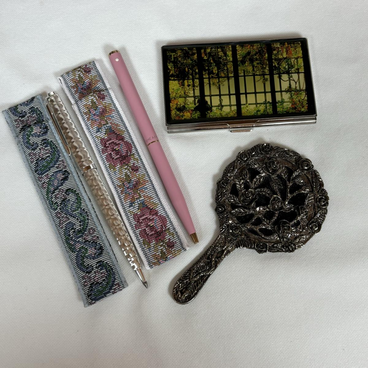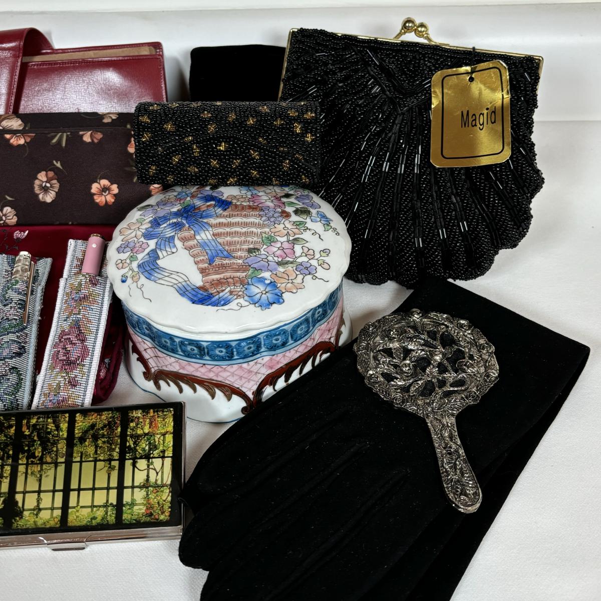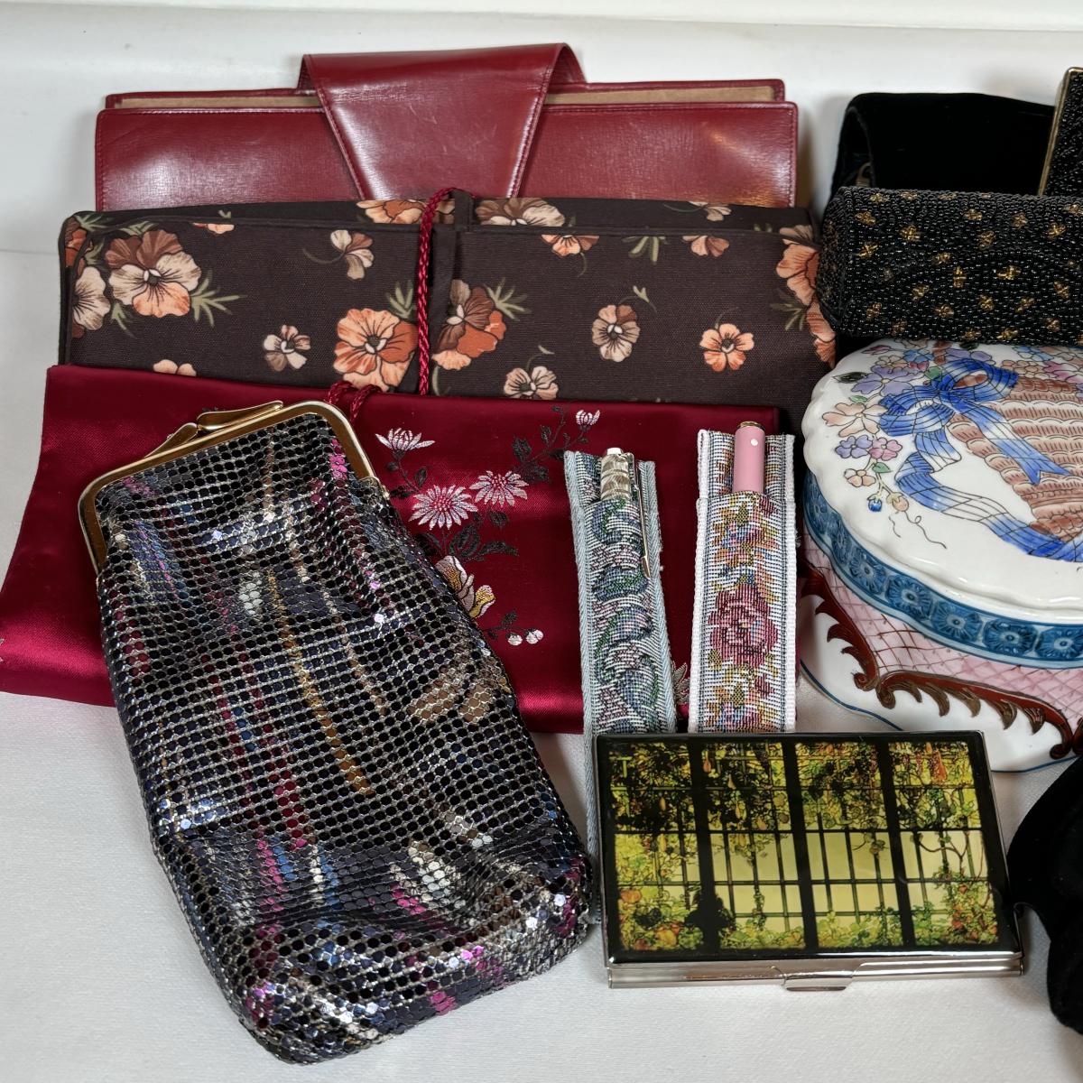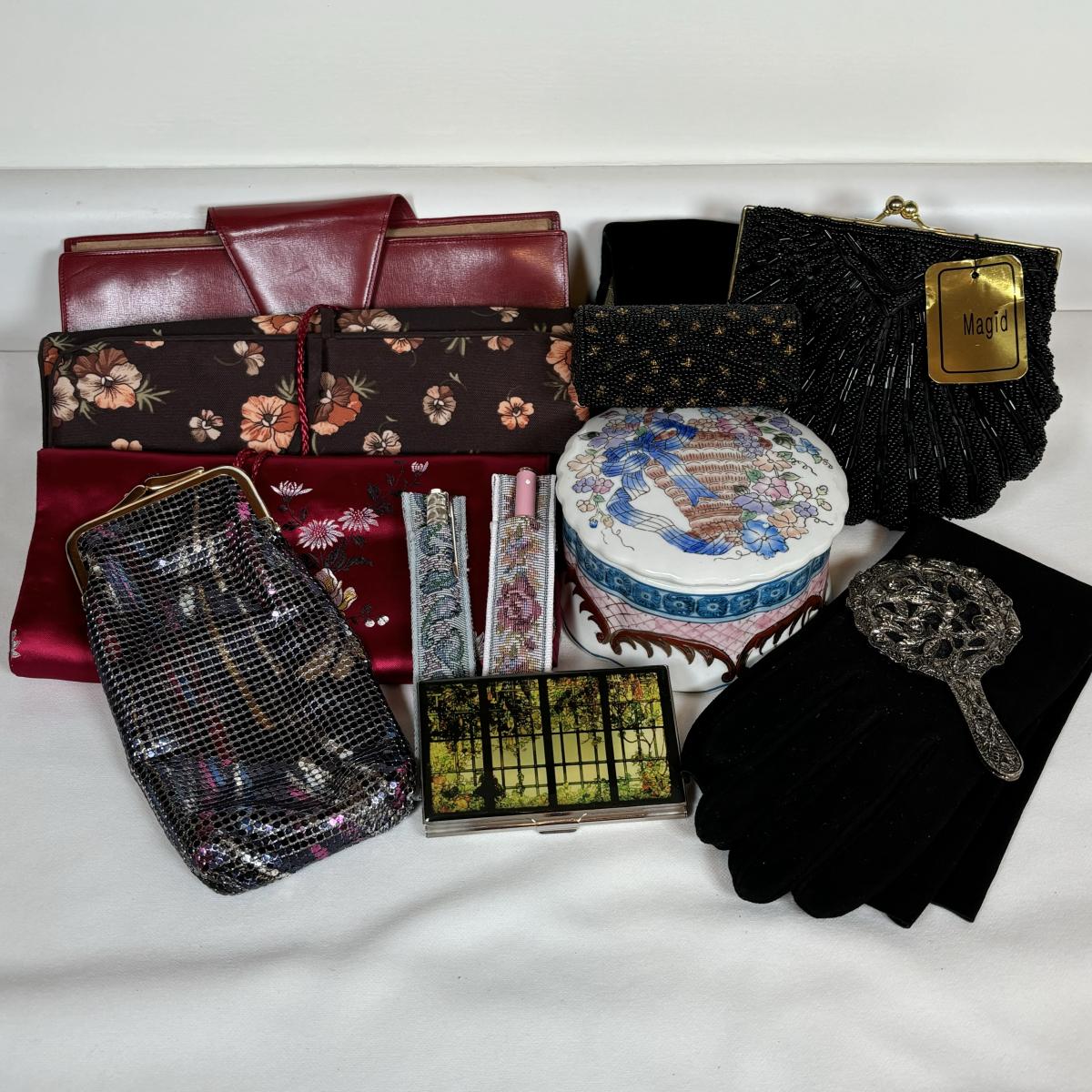 LOT 78: Whiting and Davis Gold Mesh Cigarette/Glasses Case, Sheaffer & Monami Pens, Magi Beaded Evening Purse, Jewelry Organizers & More