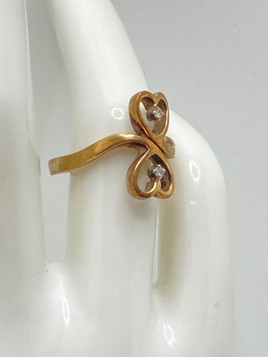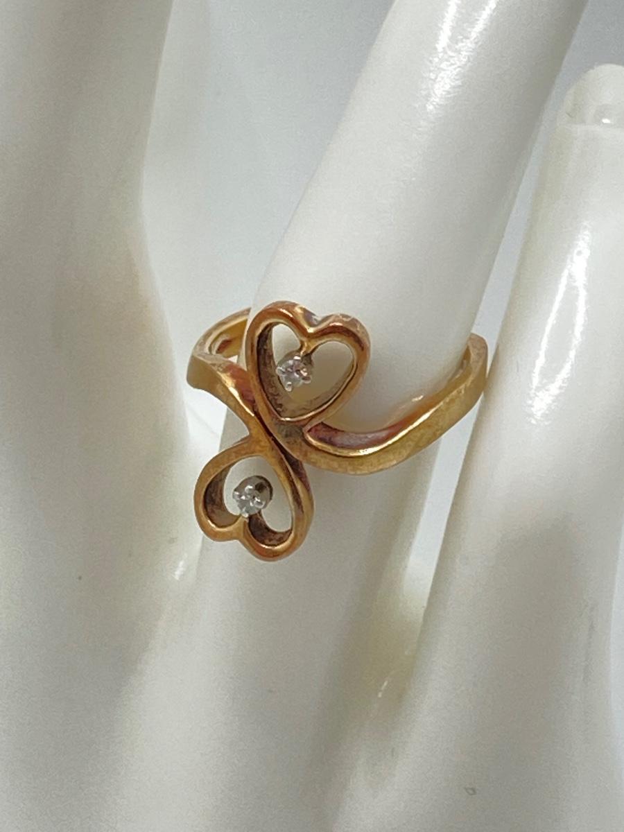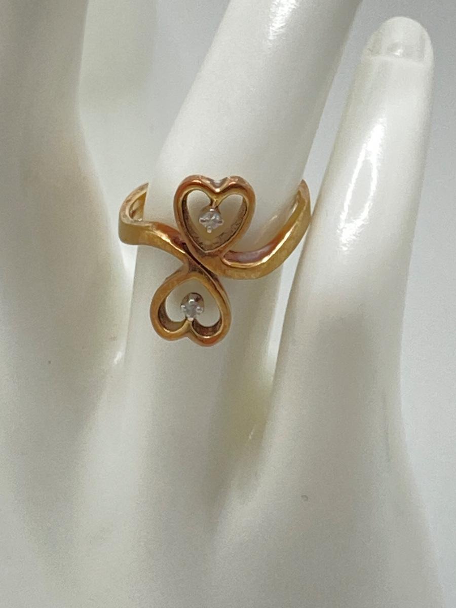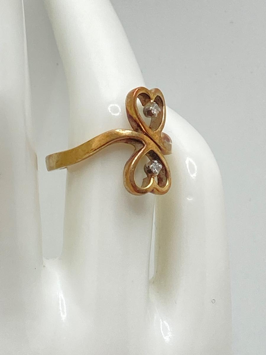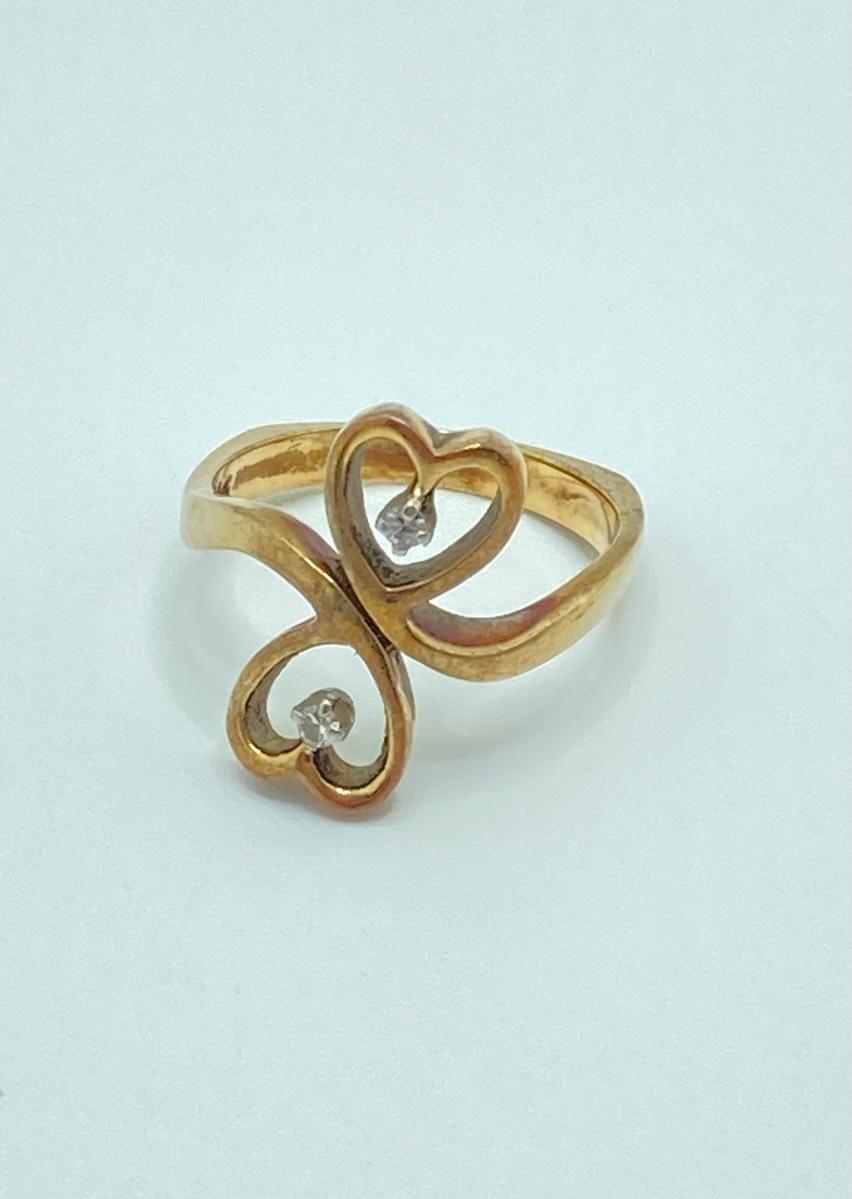 LOT 82: Double Heart Gold Ring with Stones - 14KT, TW 4.62g, Sz 6.75