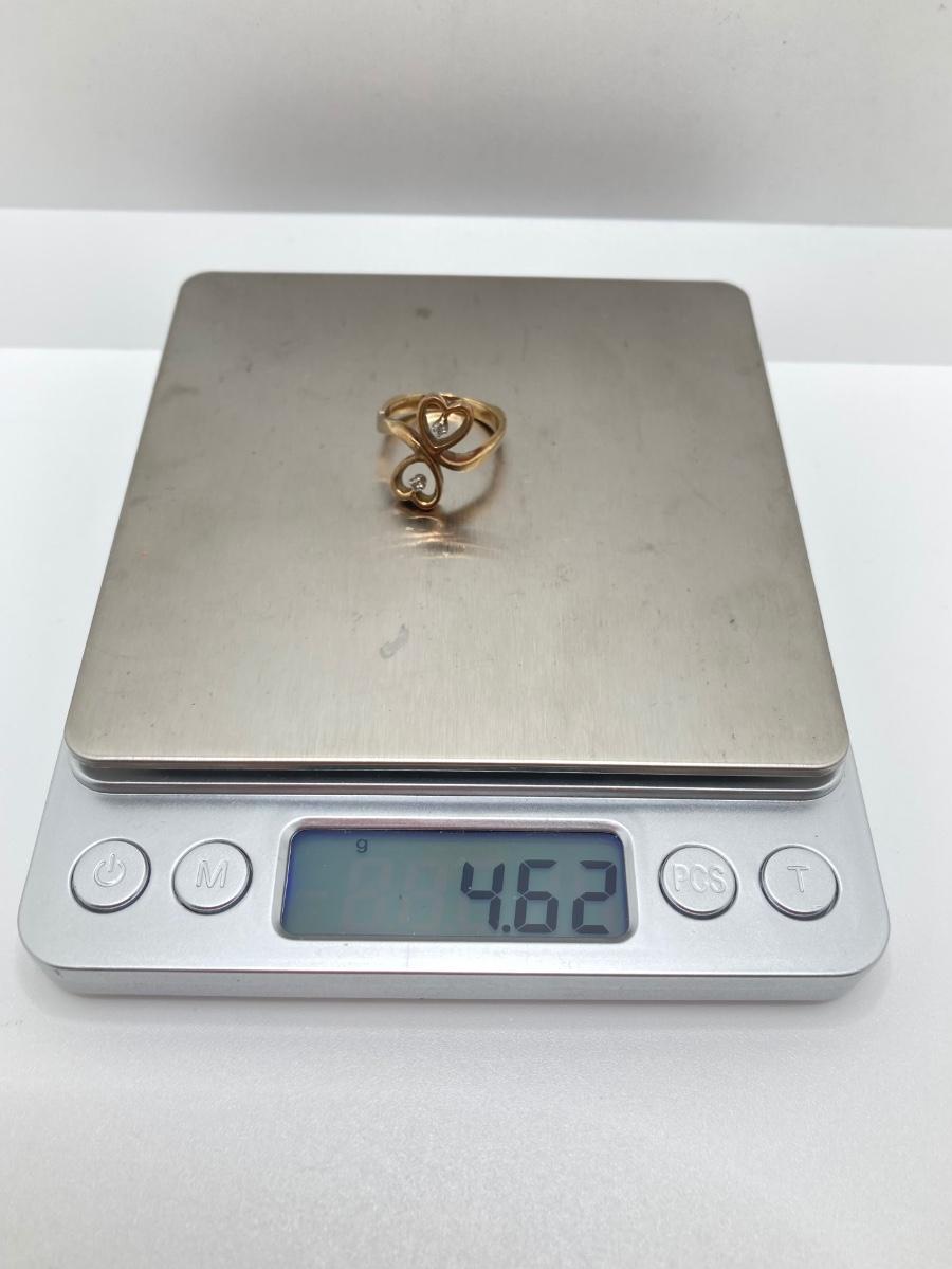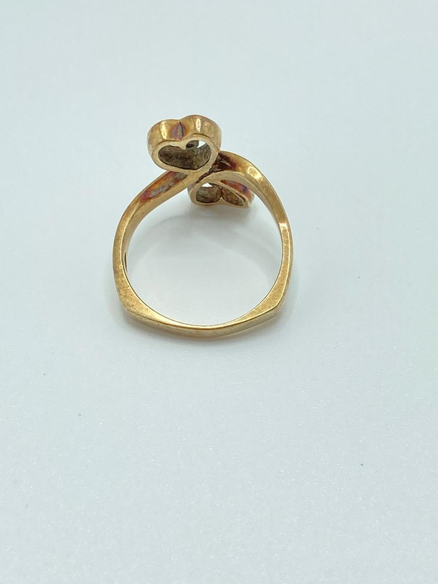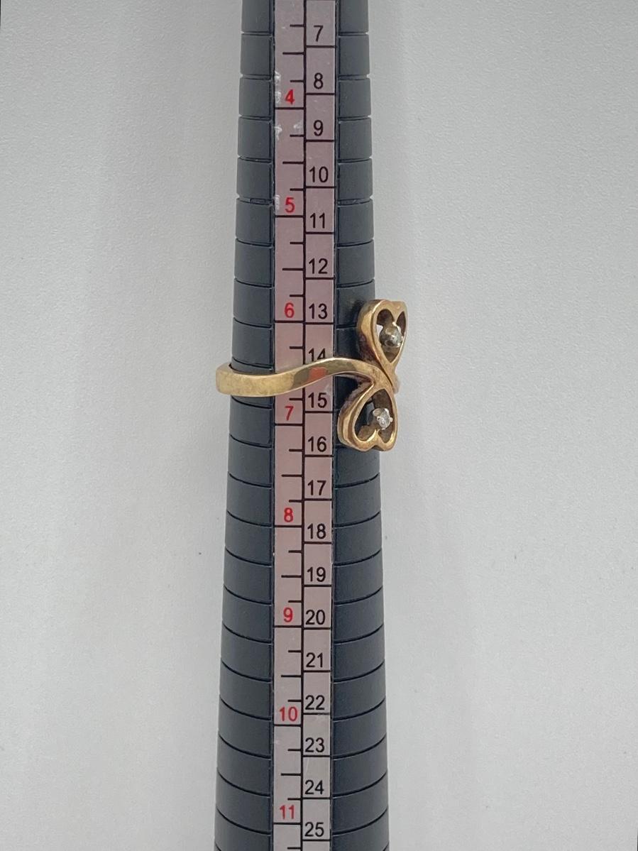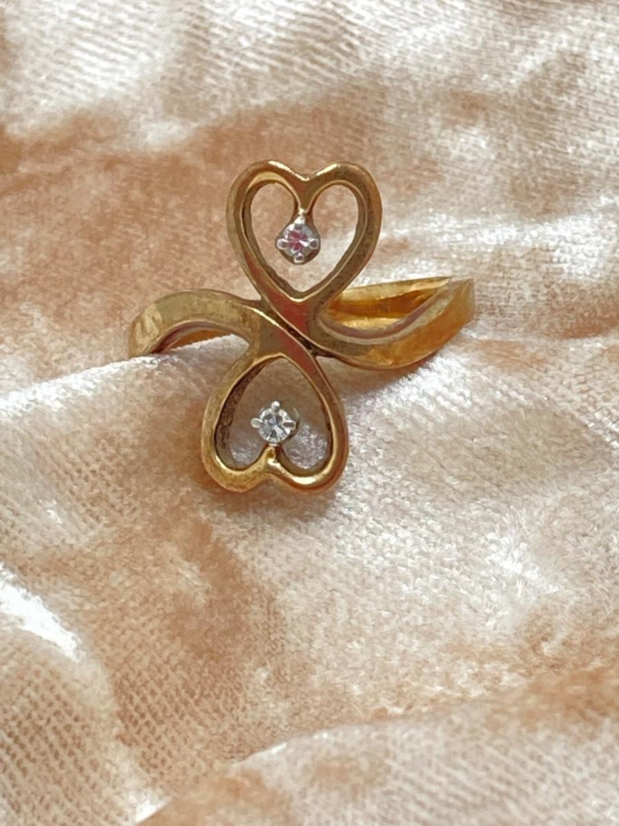 LOT 82: Double Heart Gold Ring with Stones - 14KT, TW 4.62g, Sz 6.75