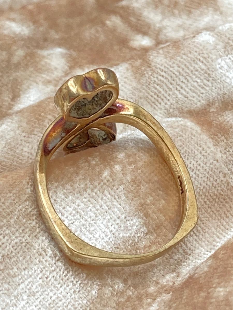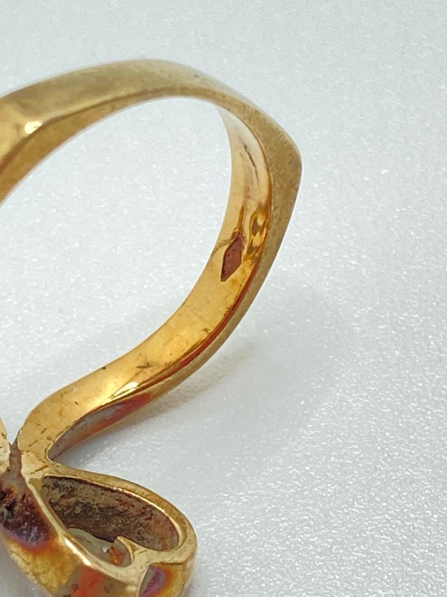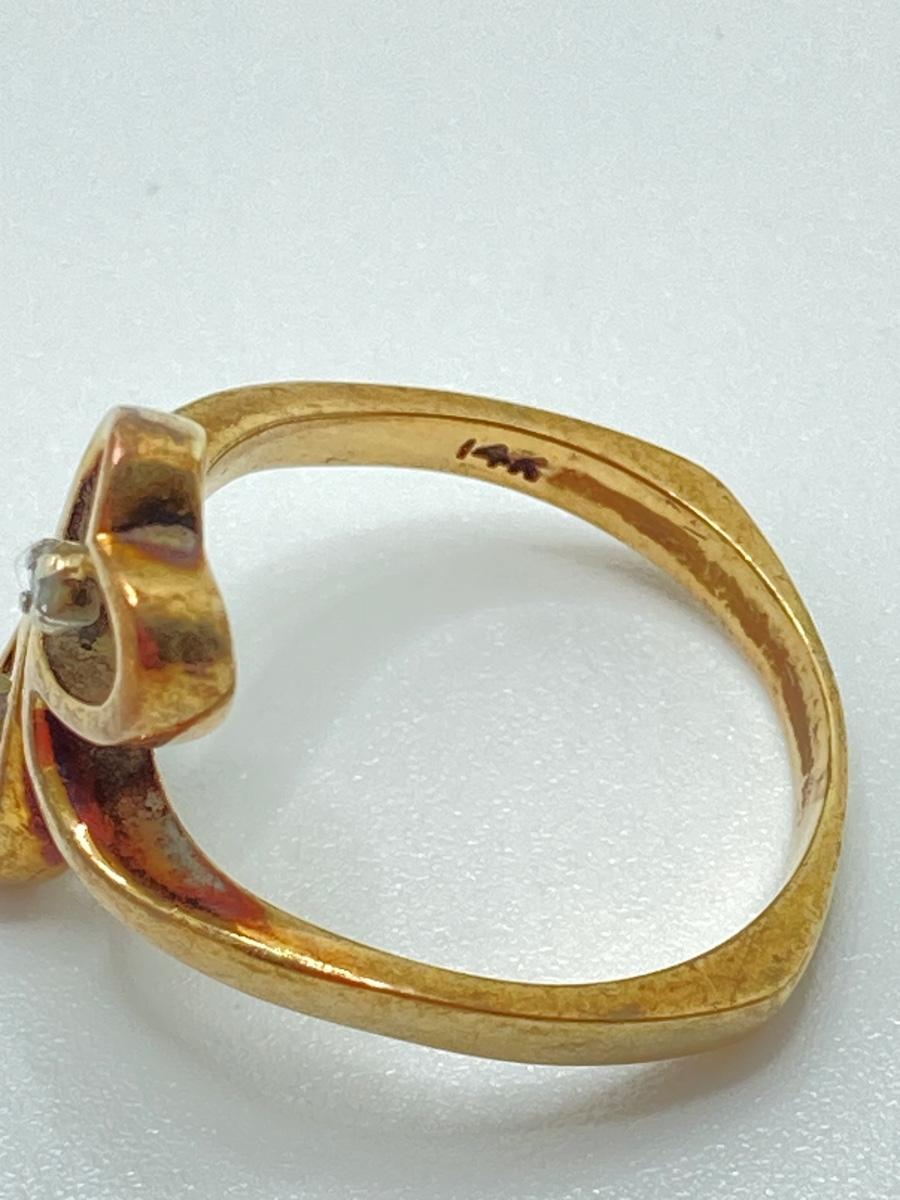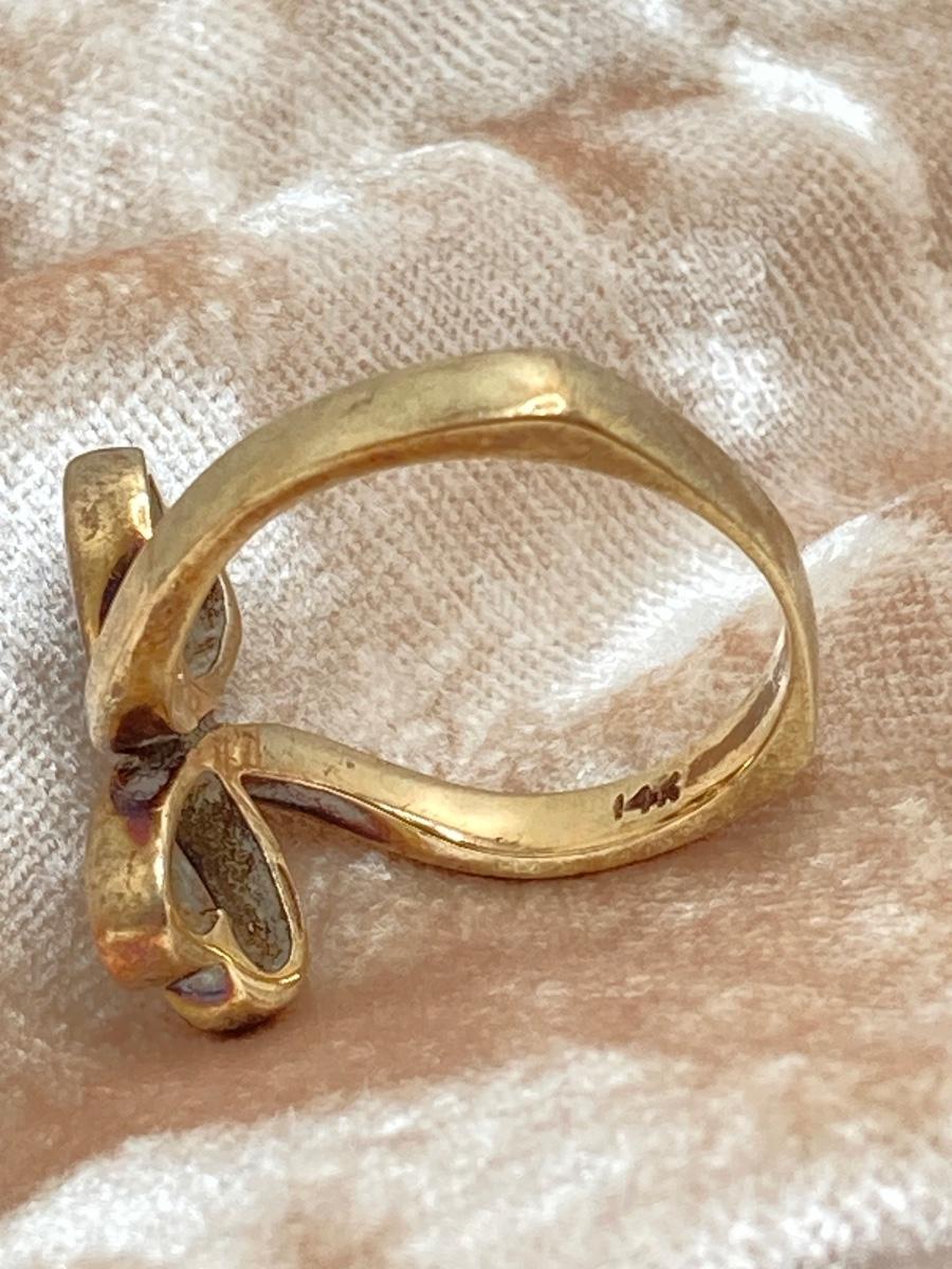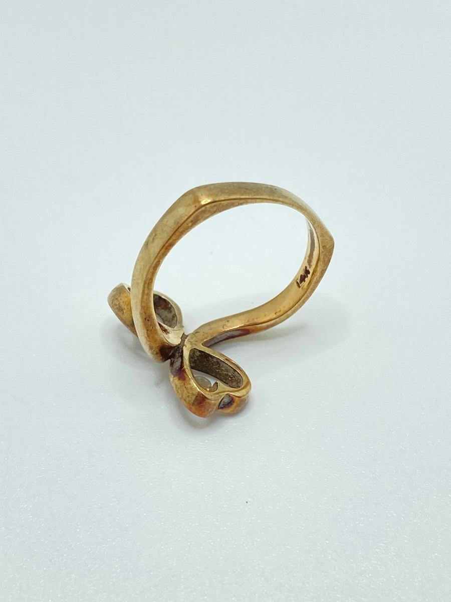 LOT 82: Double Heart Gold Ring with Stones - 14KT, TW 4.62g, Sz 6.75