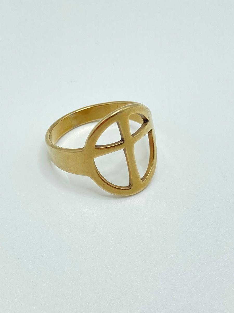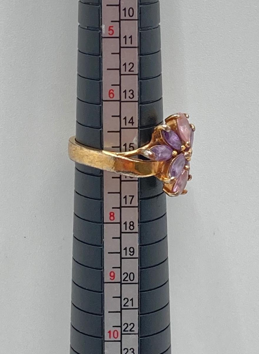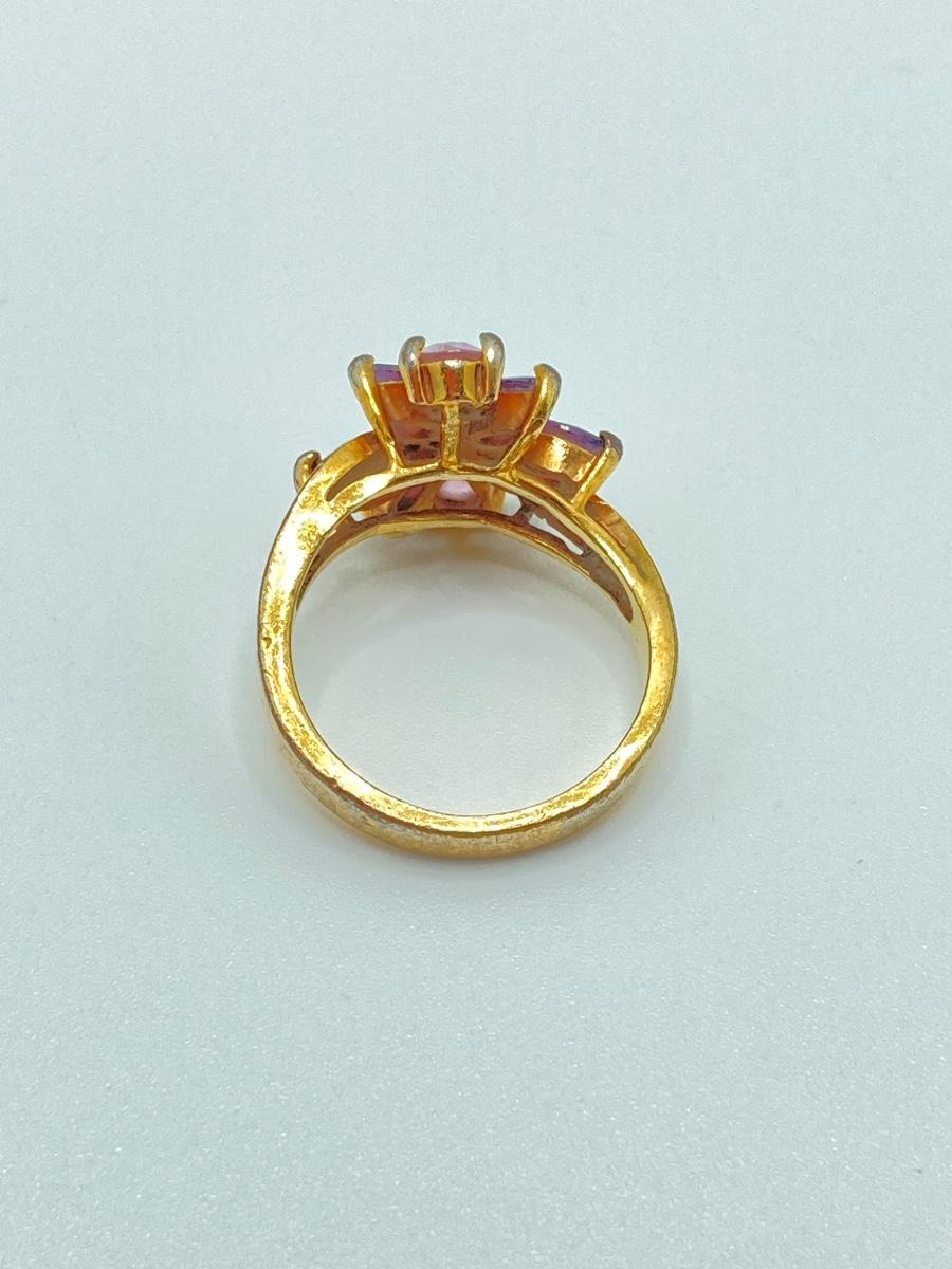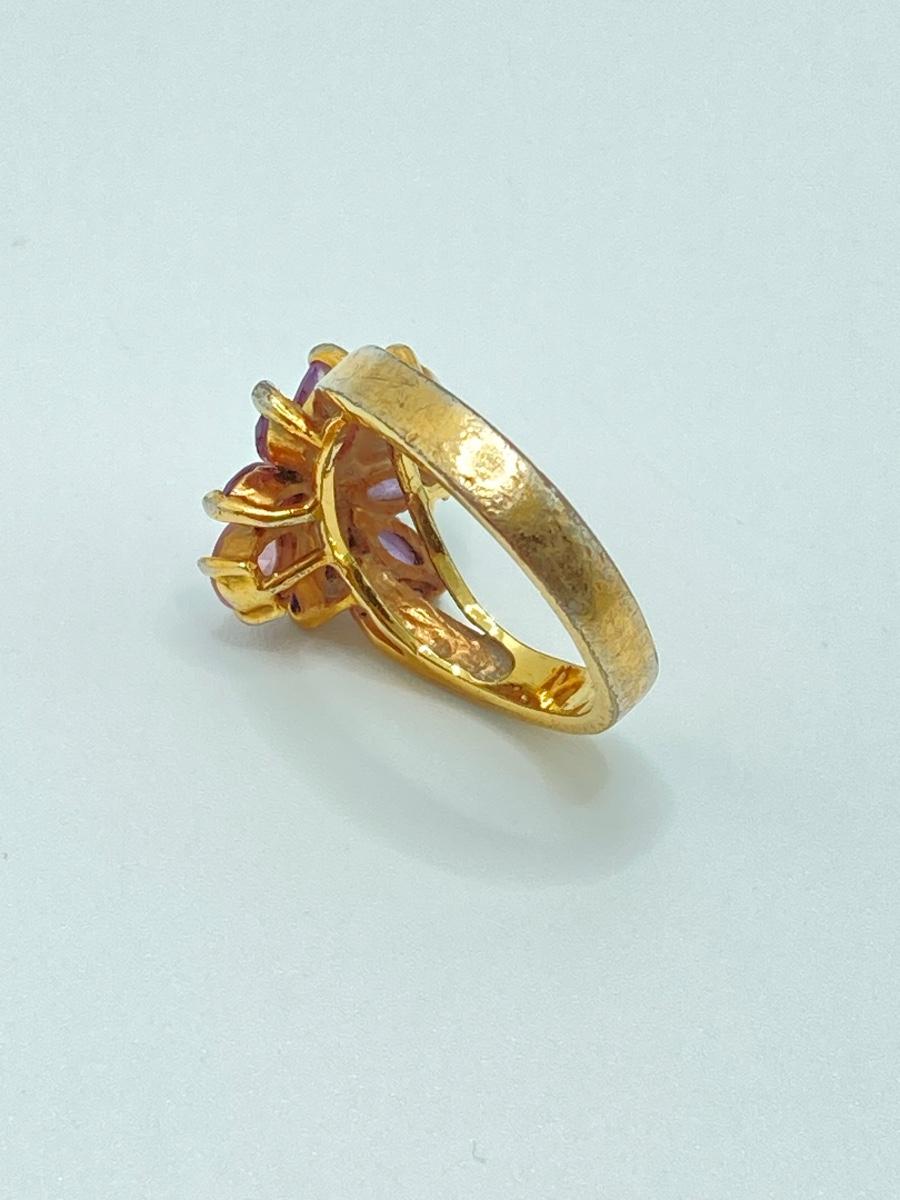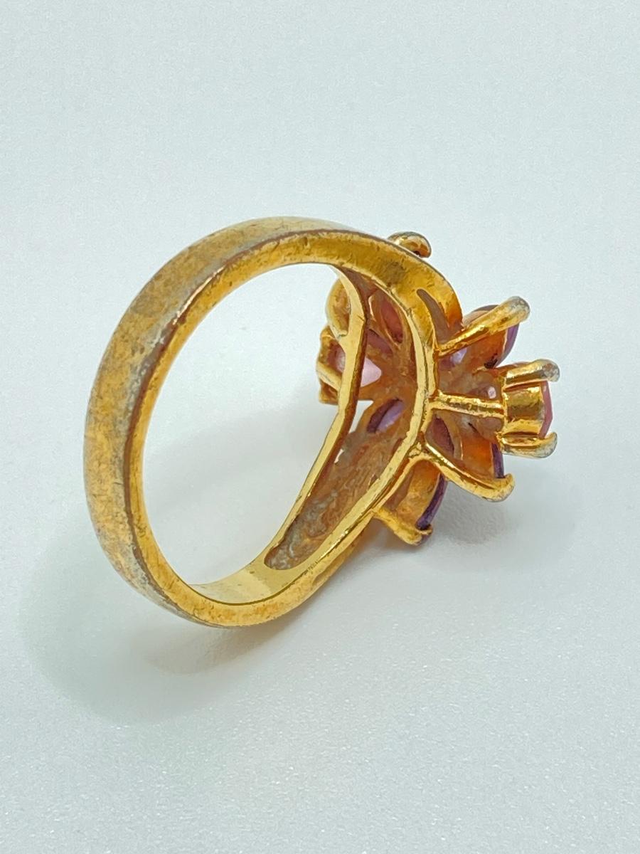 LOT 83: Pair of Gold Tone Fashion Rings - Taiwan Purple Flower Sz 7 and Cross Style Sz 8.5