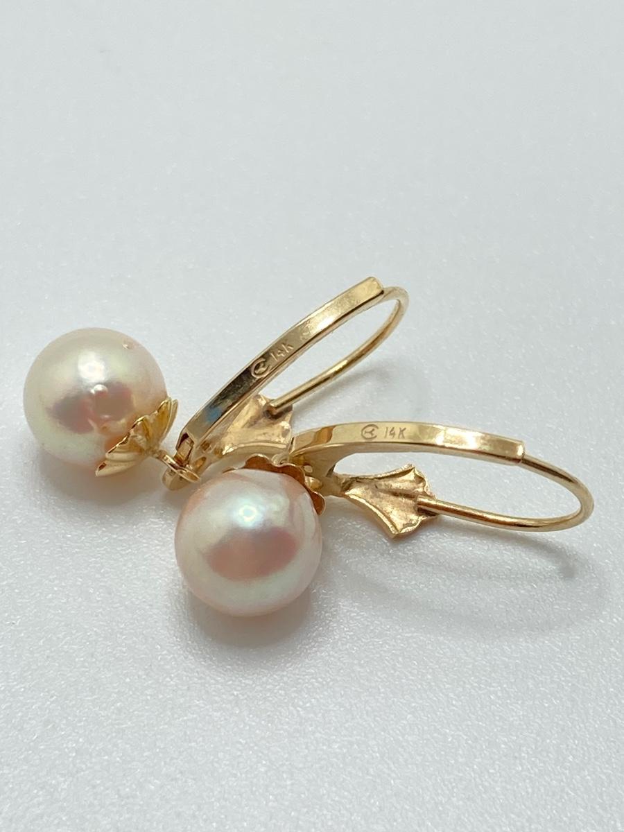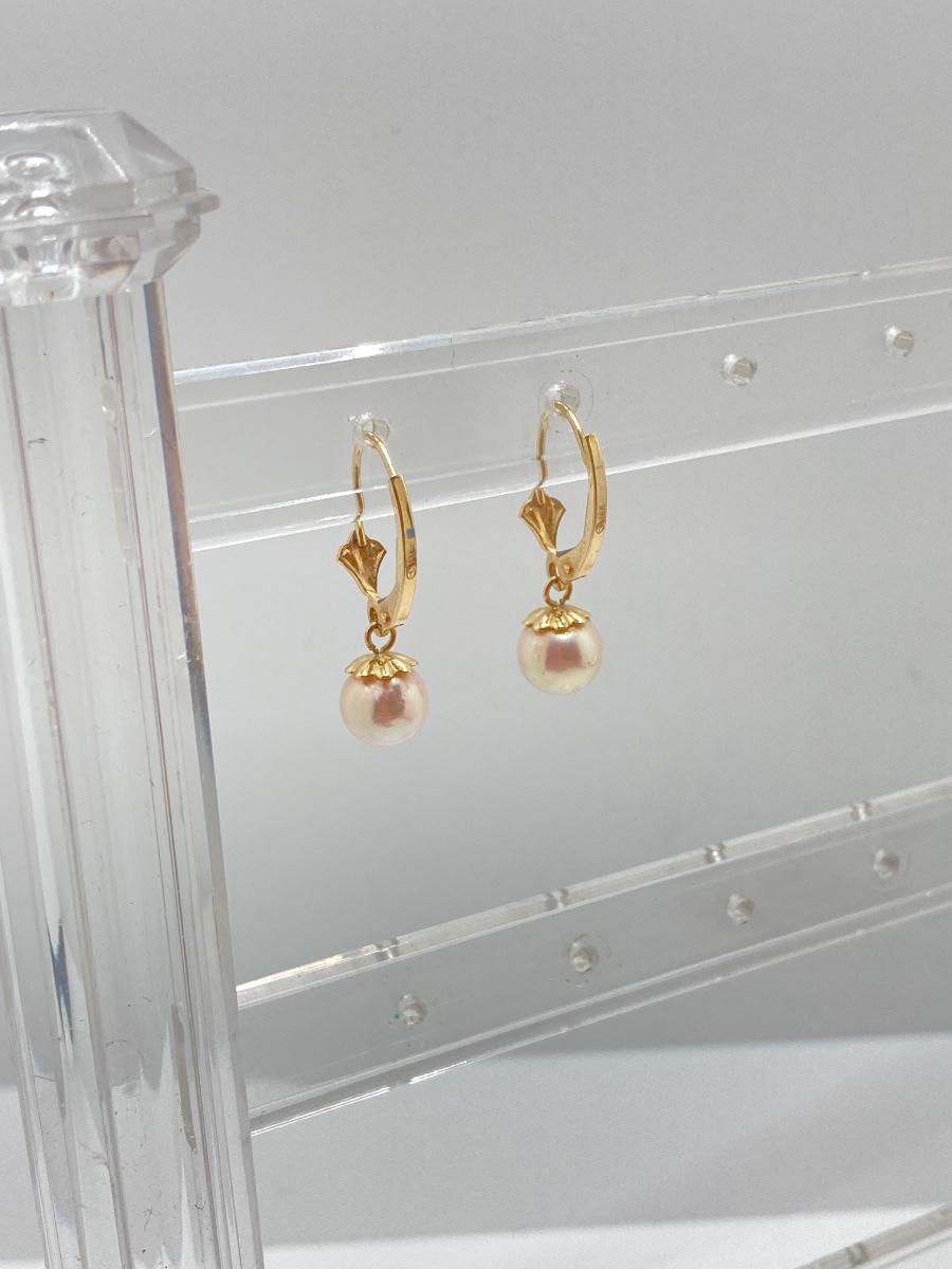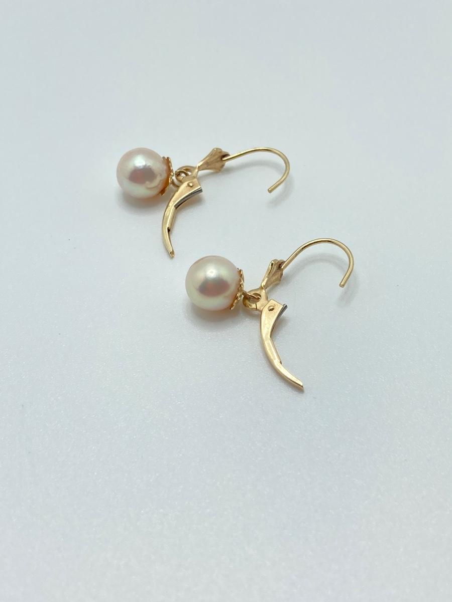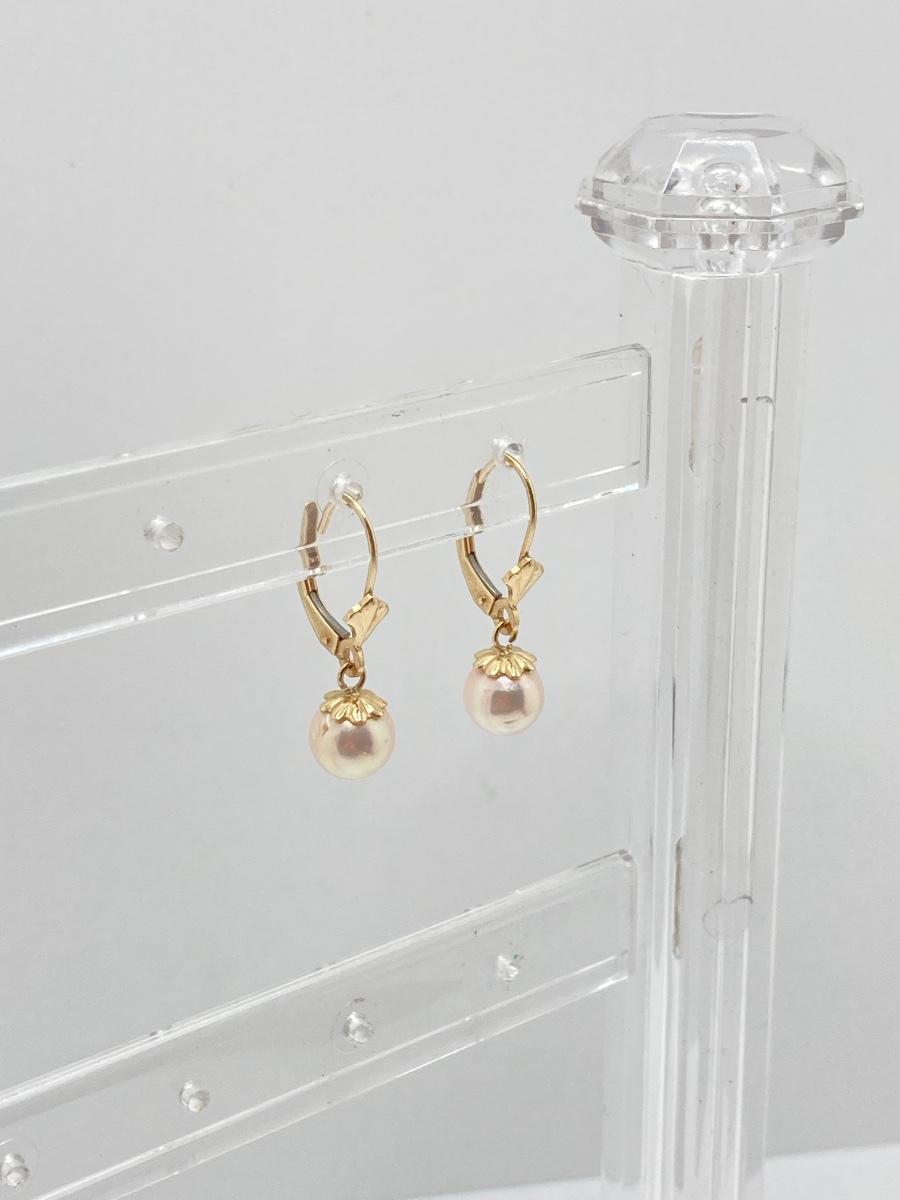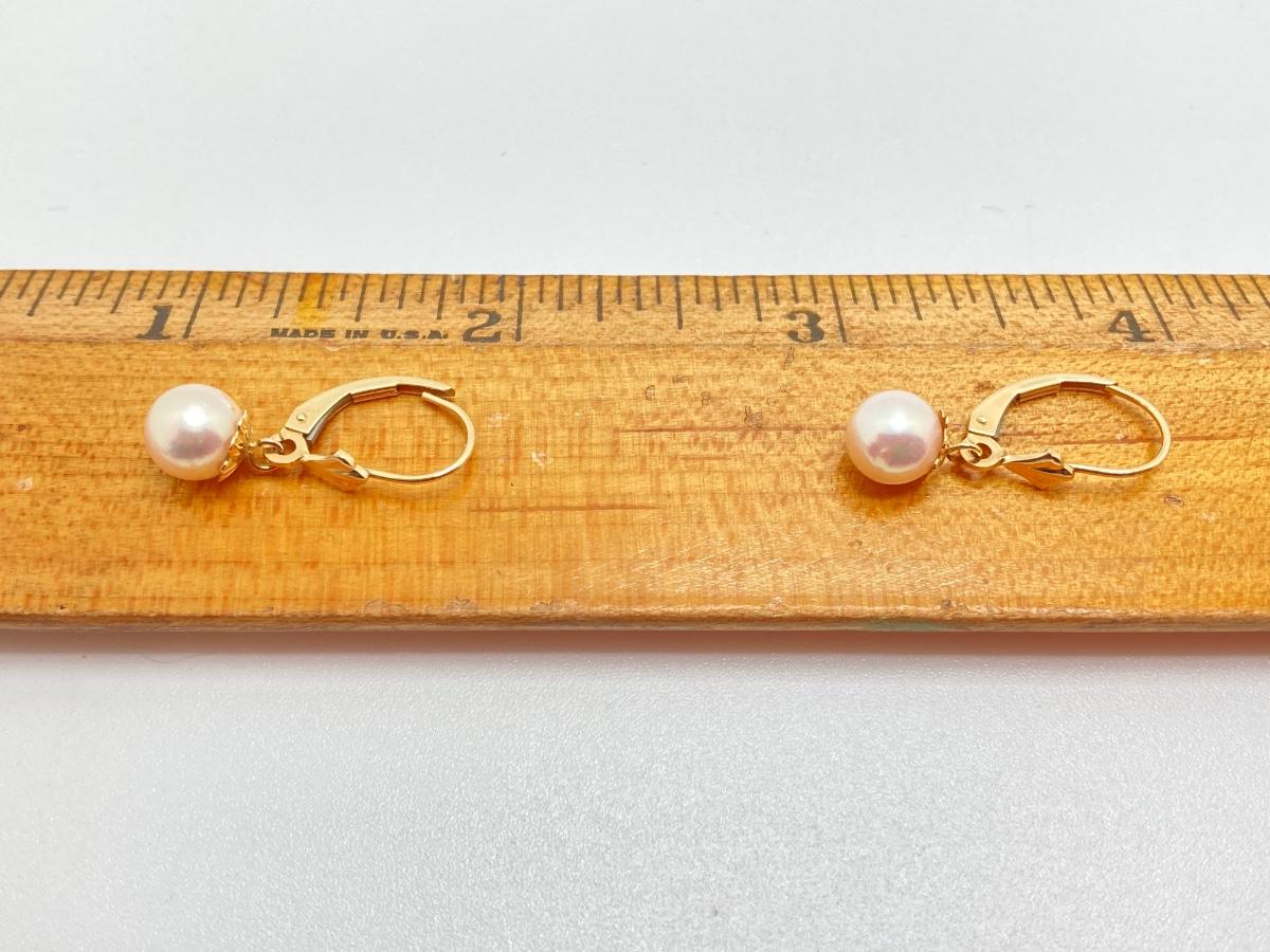 LOT 85: Gold and Pearl Pierced Dangle Earrings - 14KT, TW 1.84g