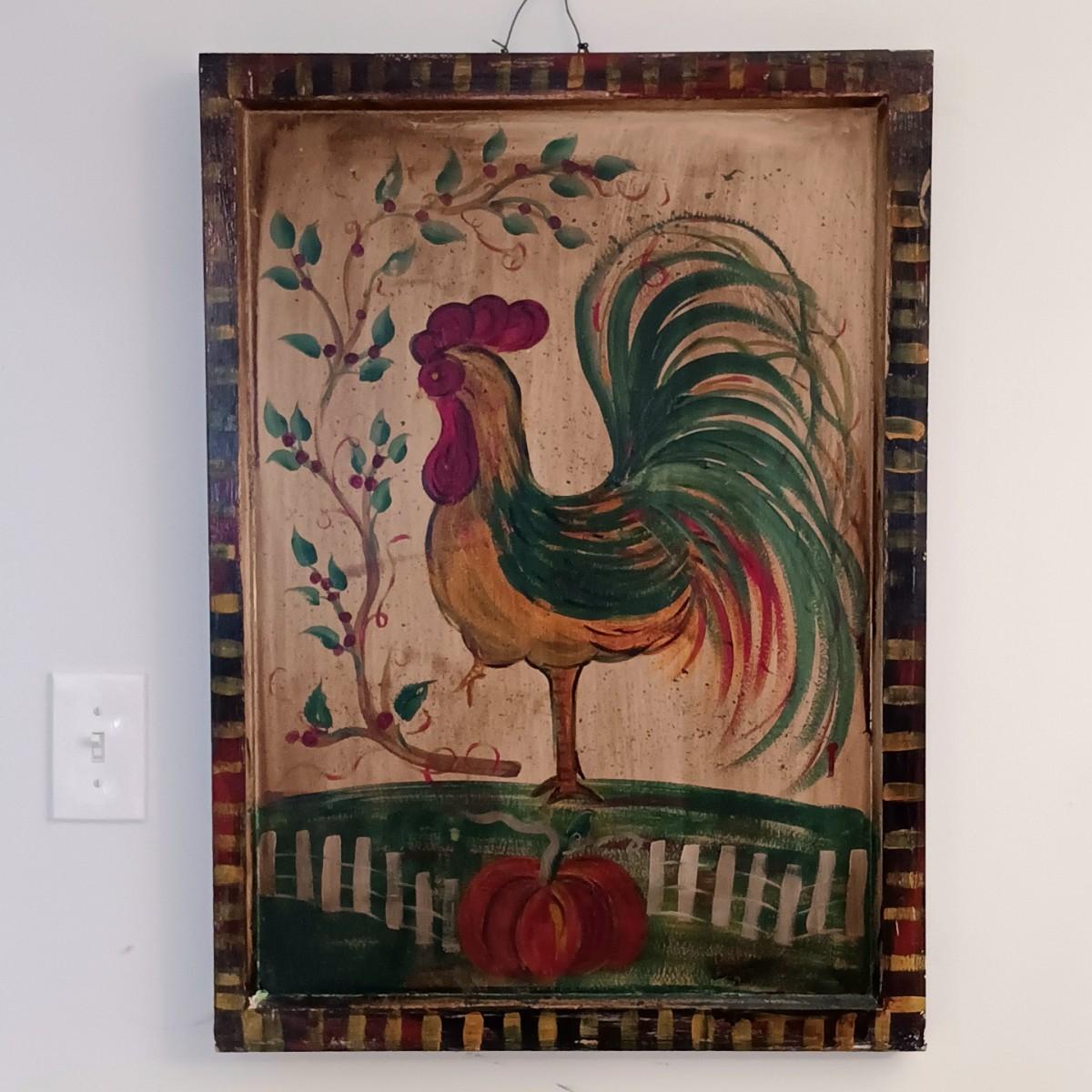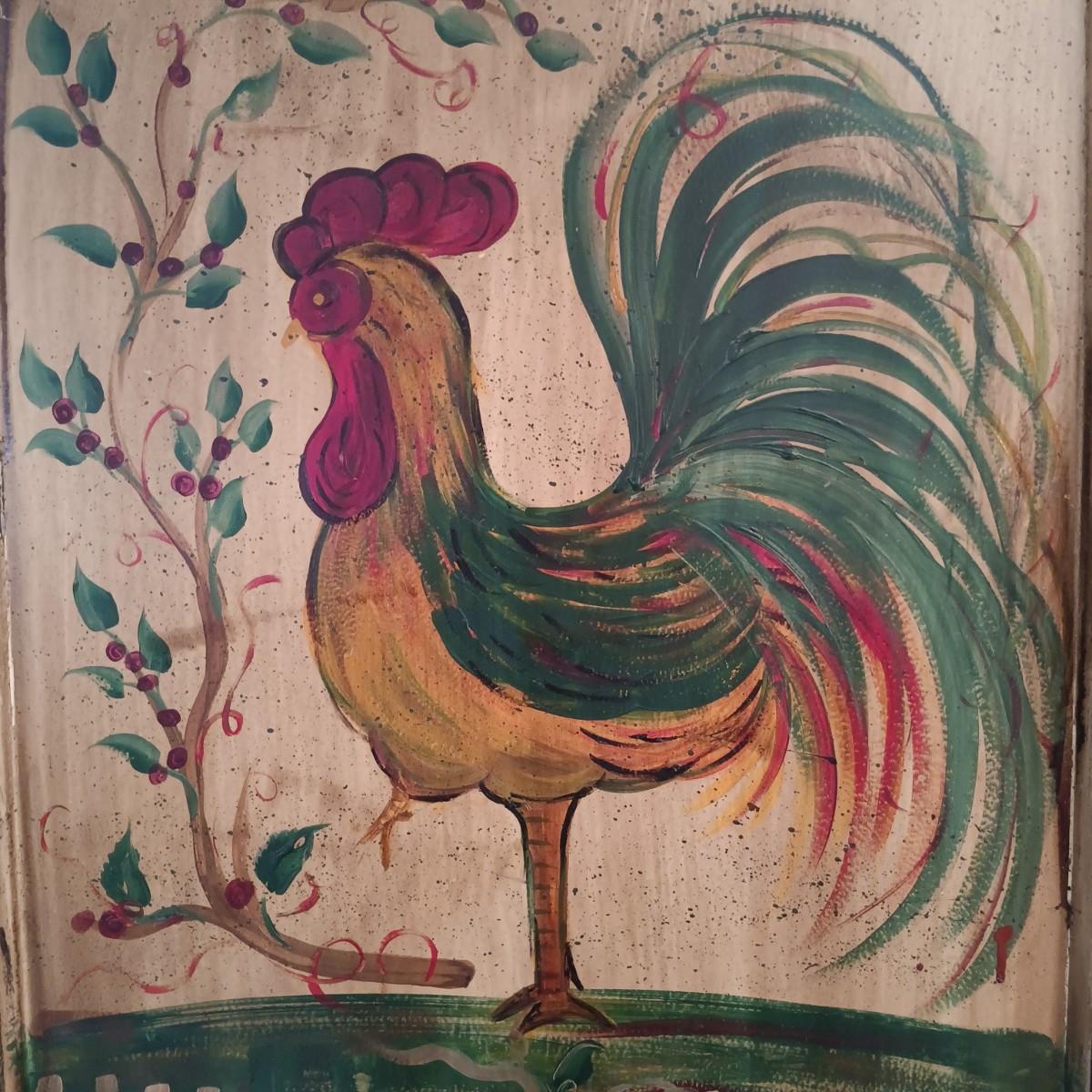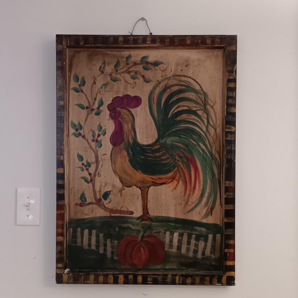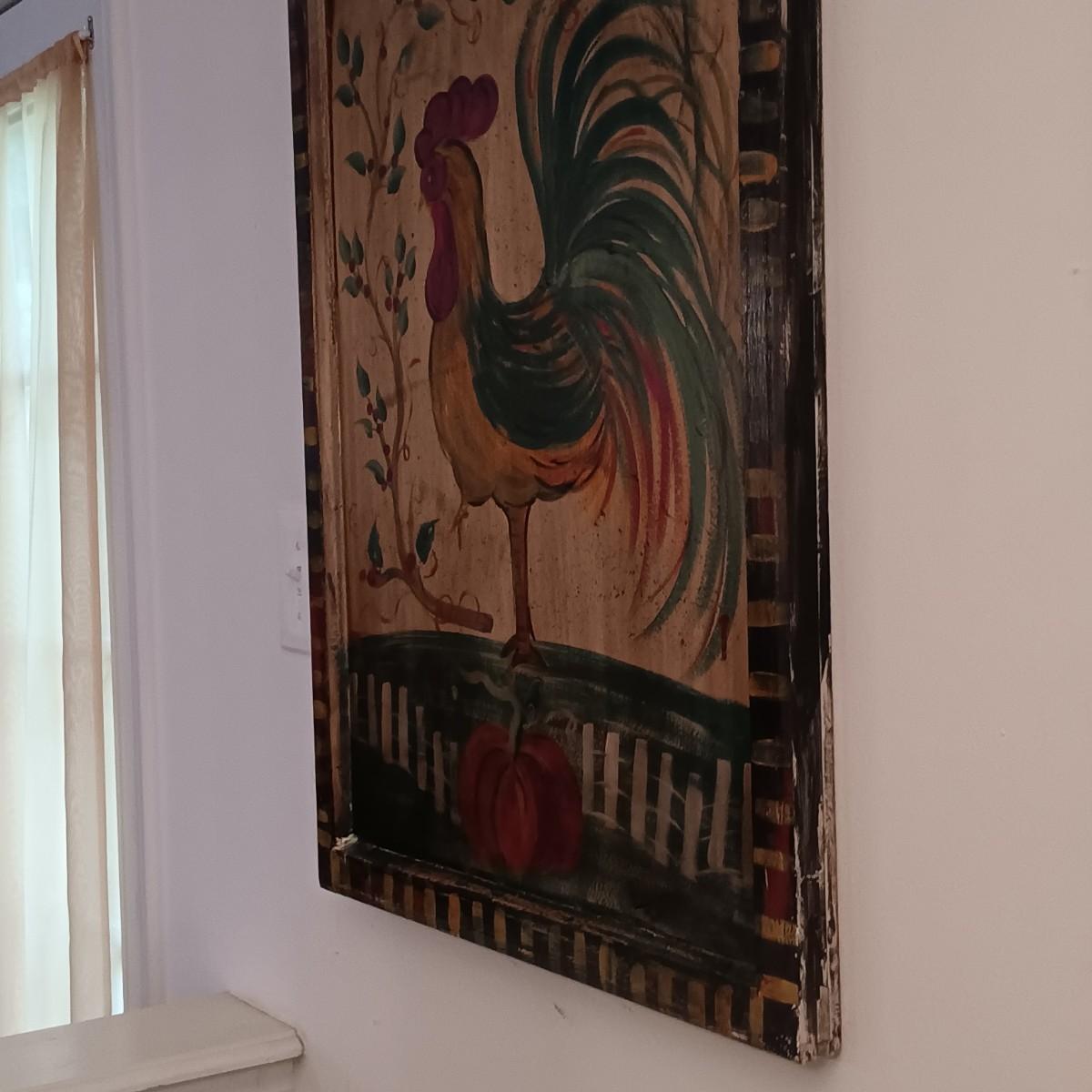 LOT 2: Hand Painted Rooster on Repurposed Glass Window