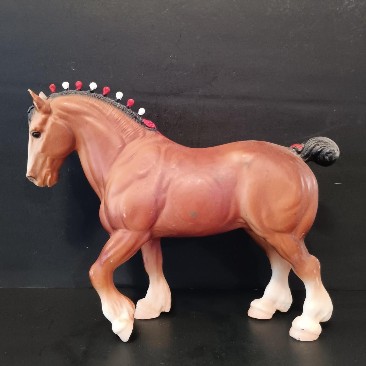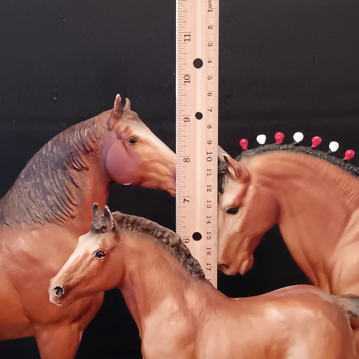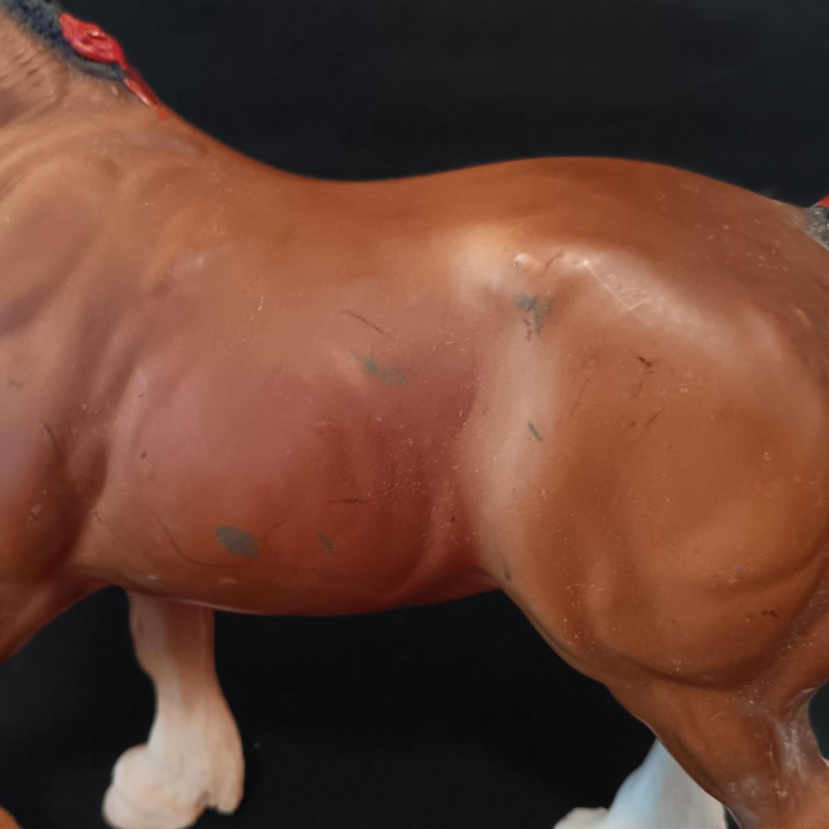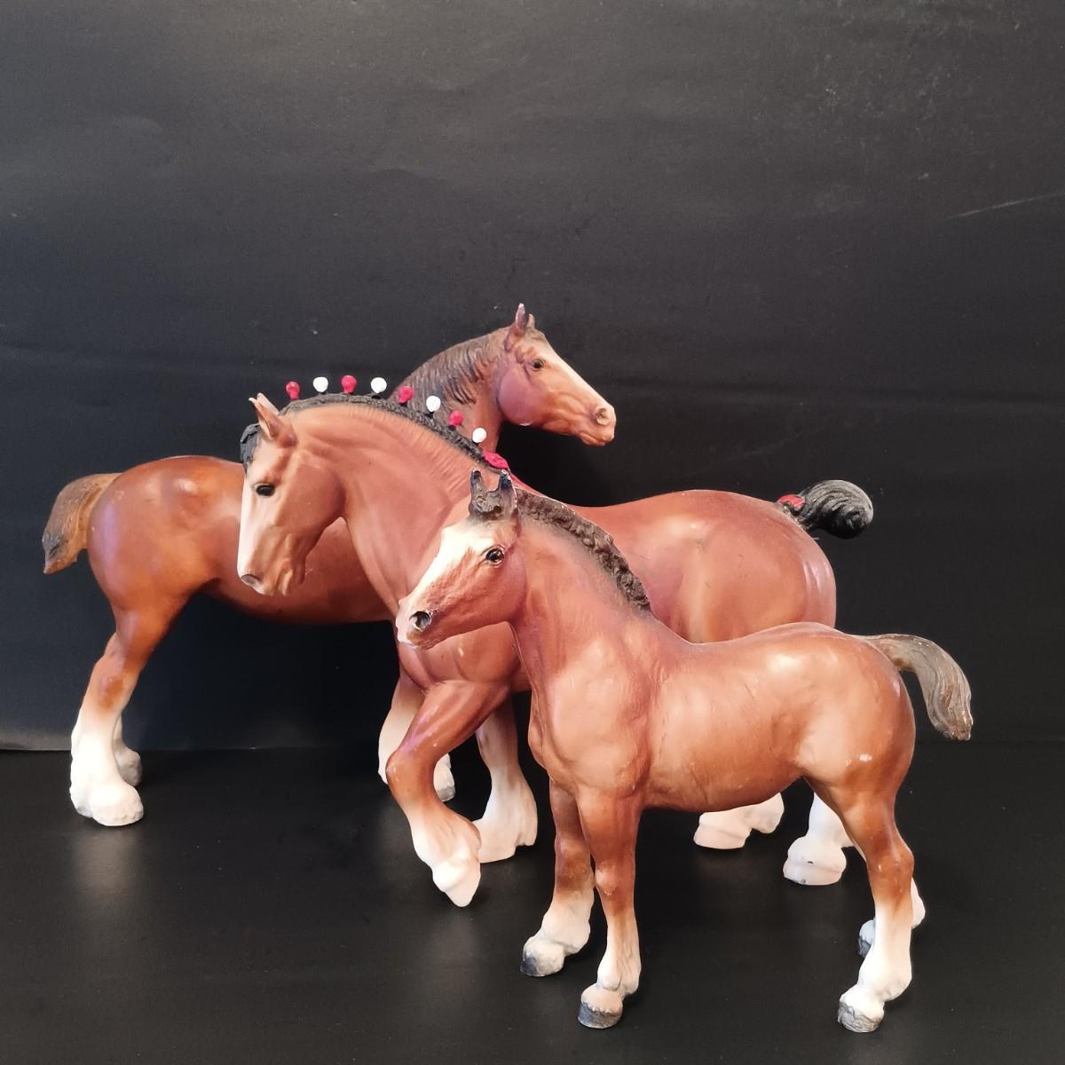 LOT 11: Breyer Molding Co. Vintage Bay Red Cydesdale Stallion, Clydesdale Mare and Foal