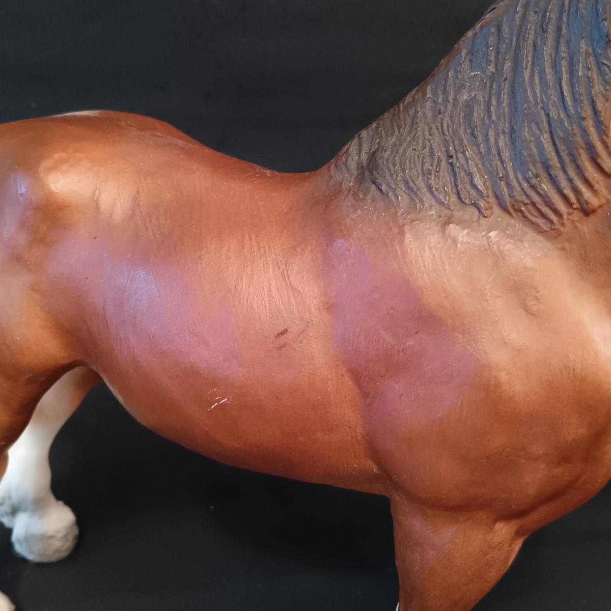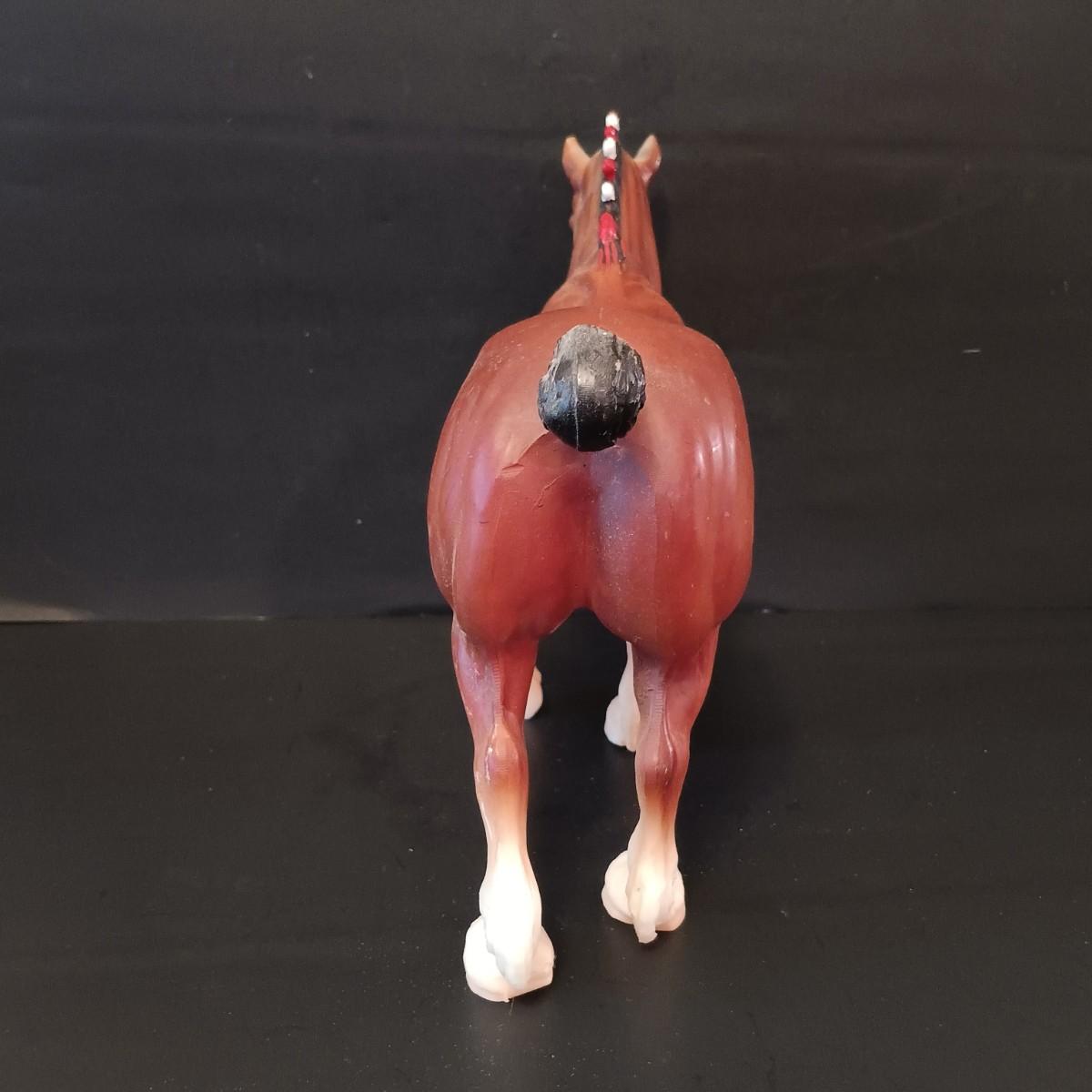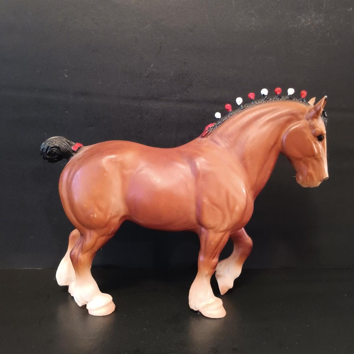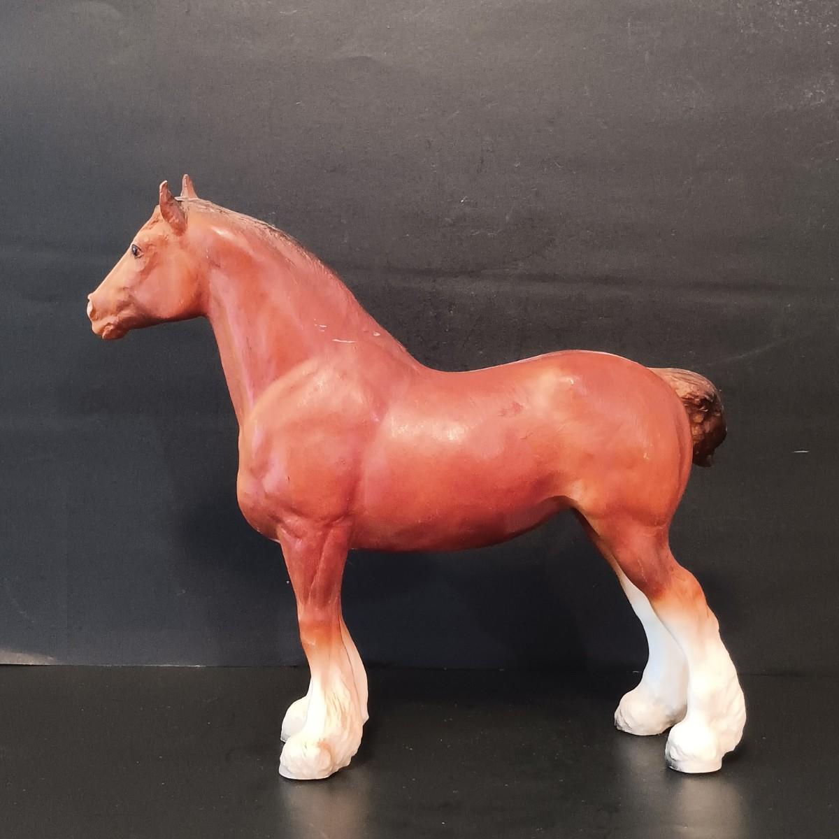 LOT 11: Breyer Molding Co. Vintage Bay Red Cydesdale Stallion, Clydesdale Mare and Foal
