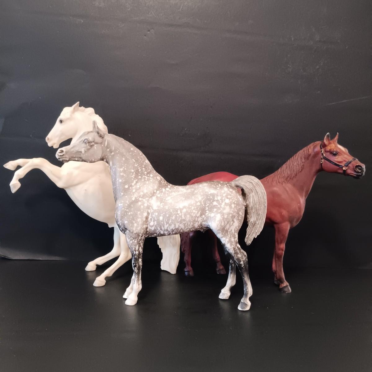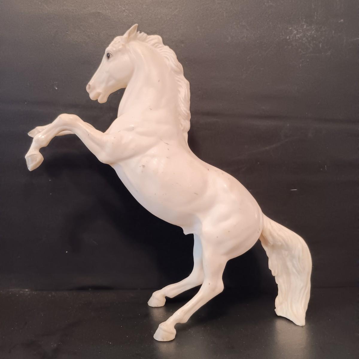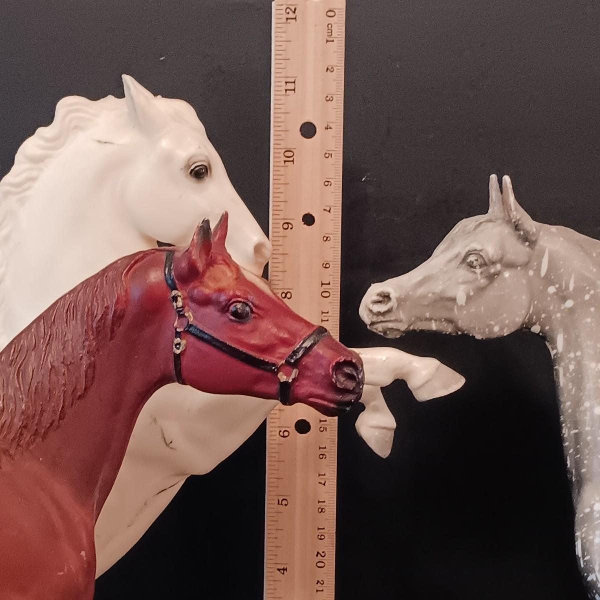 LOT 12: Breyer Molding Co. Vintage Alabaster Lipizzaner Rearing Stallion, Man O' War and Proud Dapple Gray Arabian Stallion