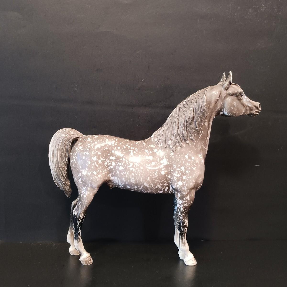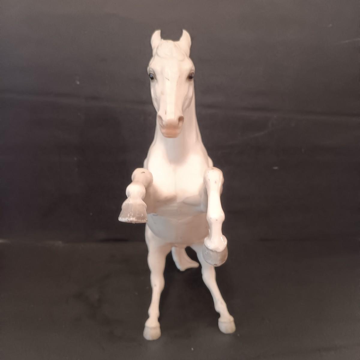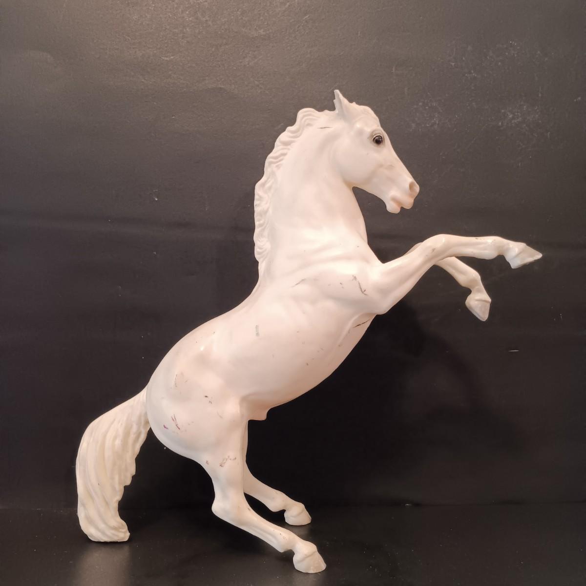 LOT 12: Breyer Molding Co. Vintage Alabaster Lipizzaner Rearing Stallion, Man O' War and Proud Dapple Gray Arabian Stallion