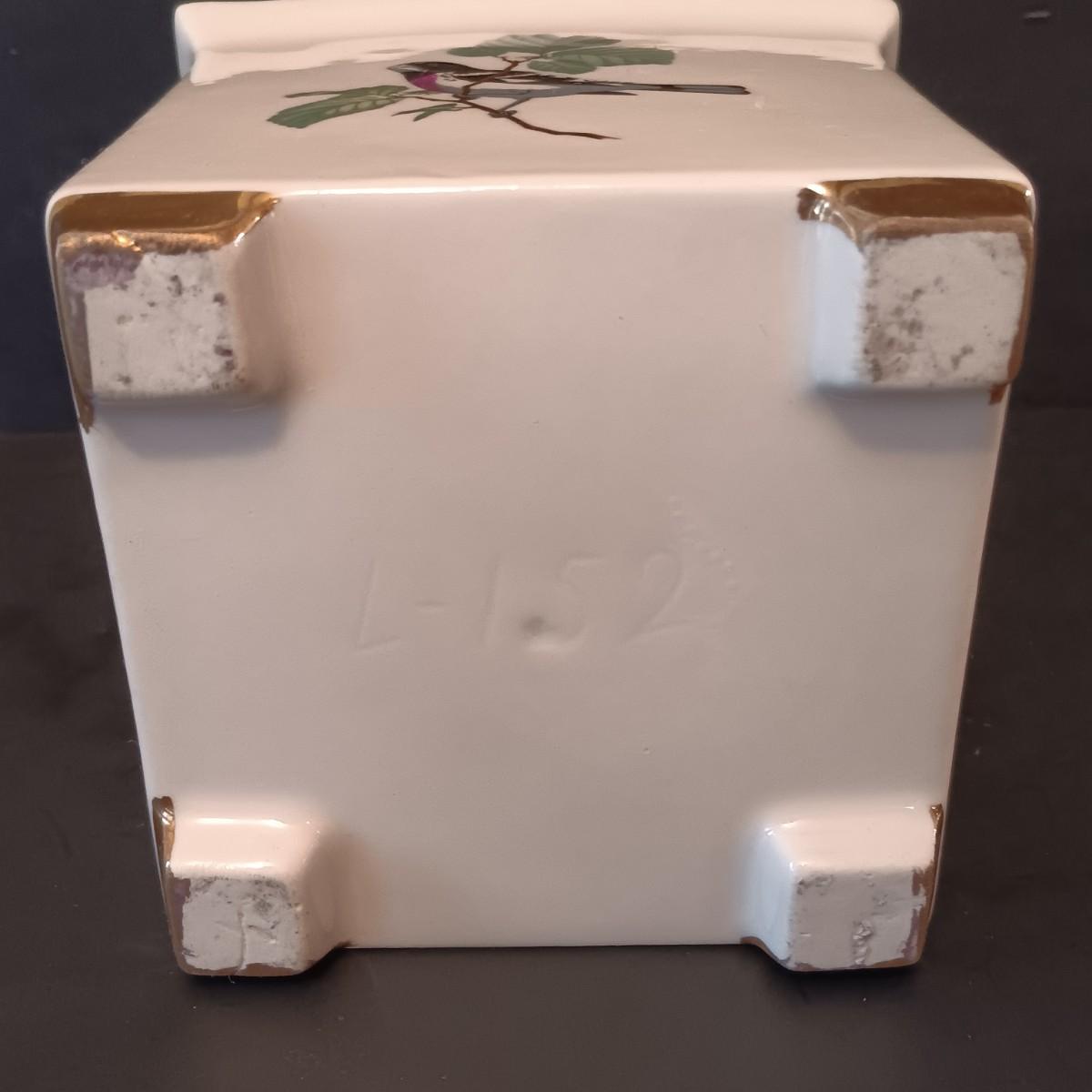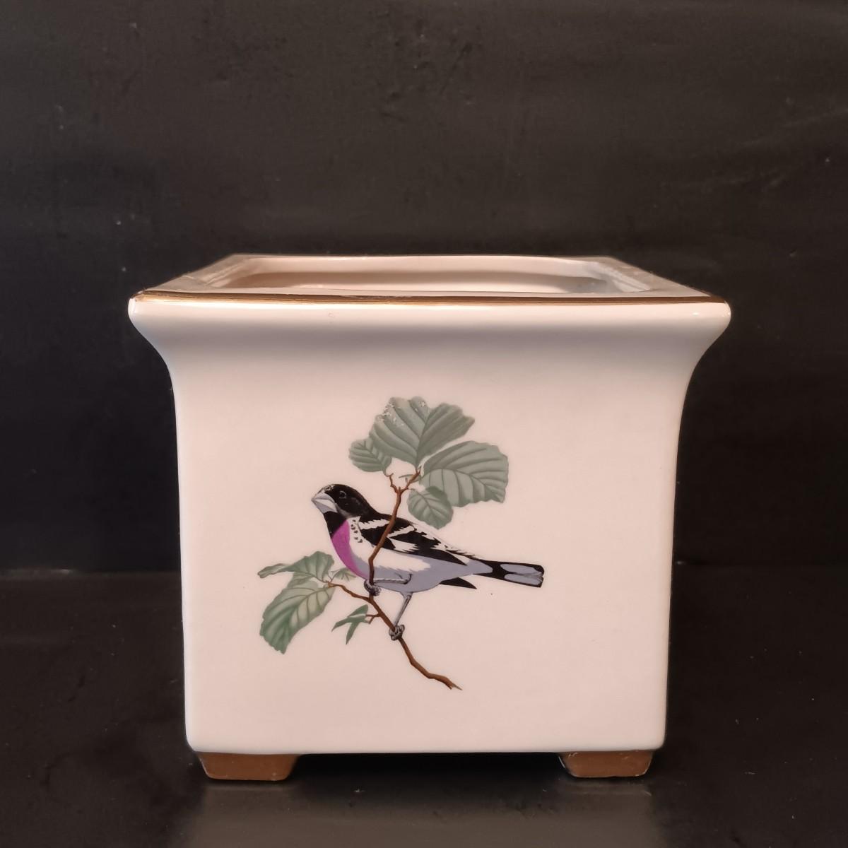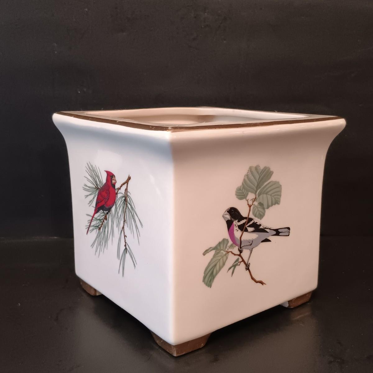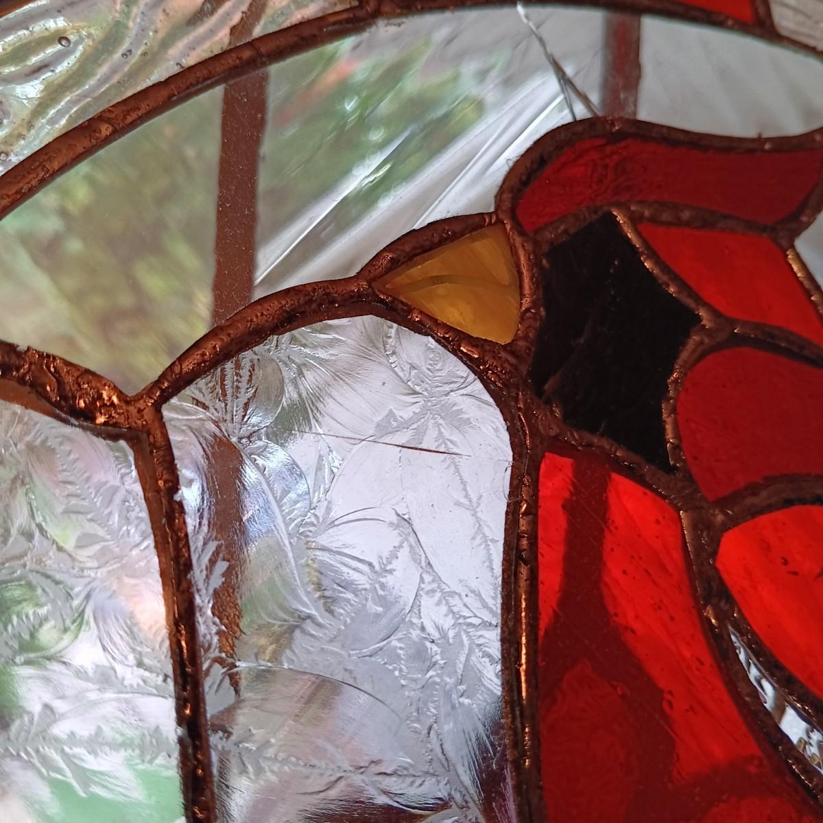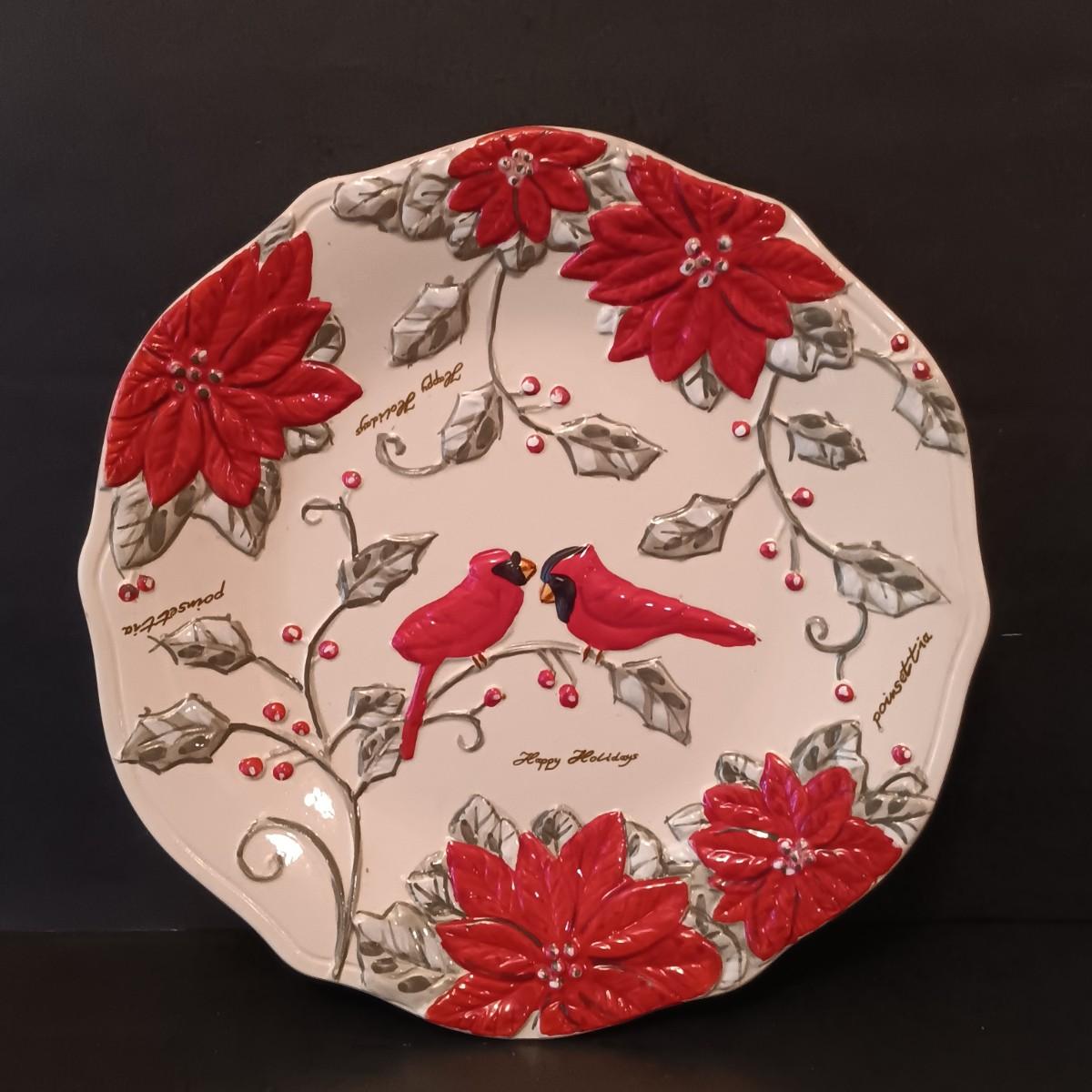 LOT 15: Cardinal and Holly Stained Glass Windows w/ Vintage Birds Planter & Gibson Elite Cardinal Holiday Plate