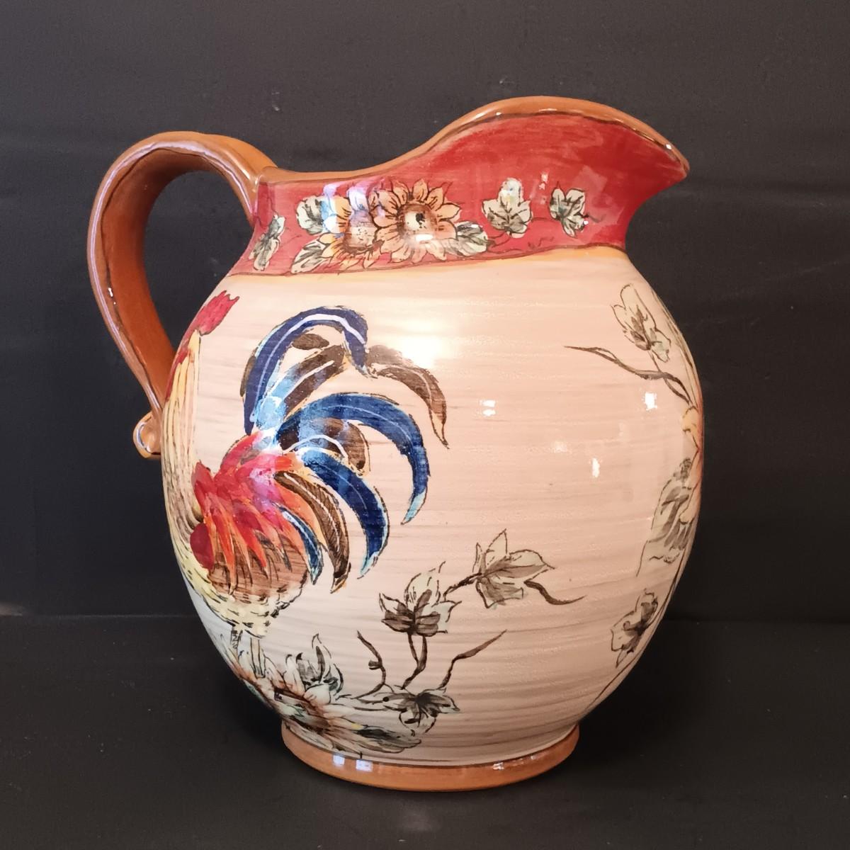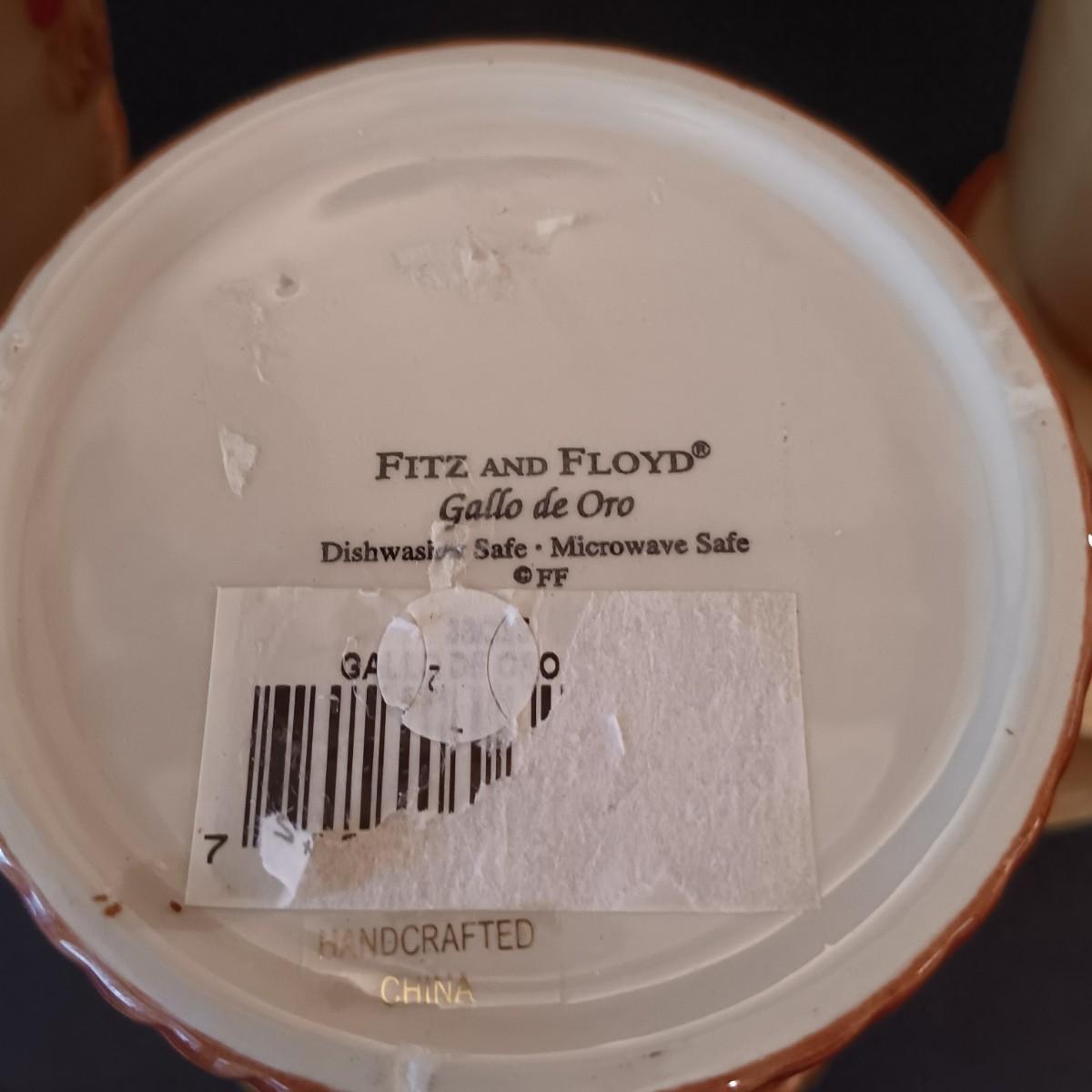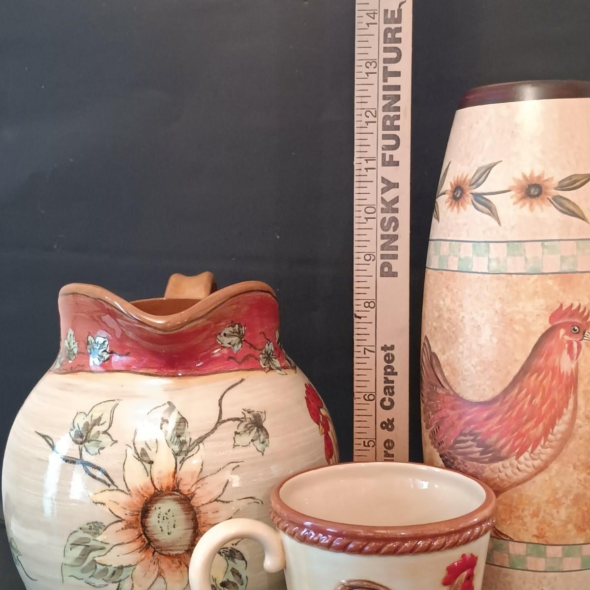 LOT 17: Fitz and Floyd Gallo de Oro Rooster Mugs w/ Rooster Pitcher & Chicken Vase