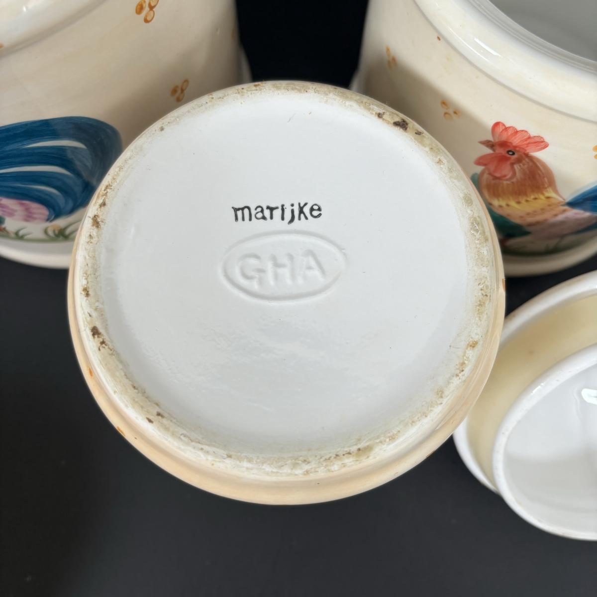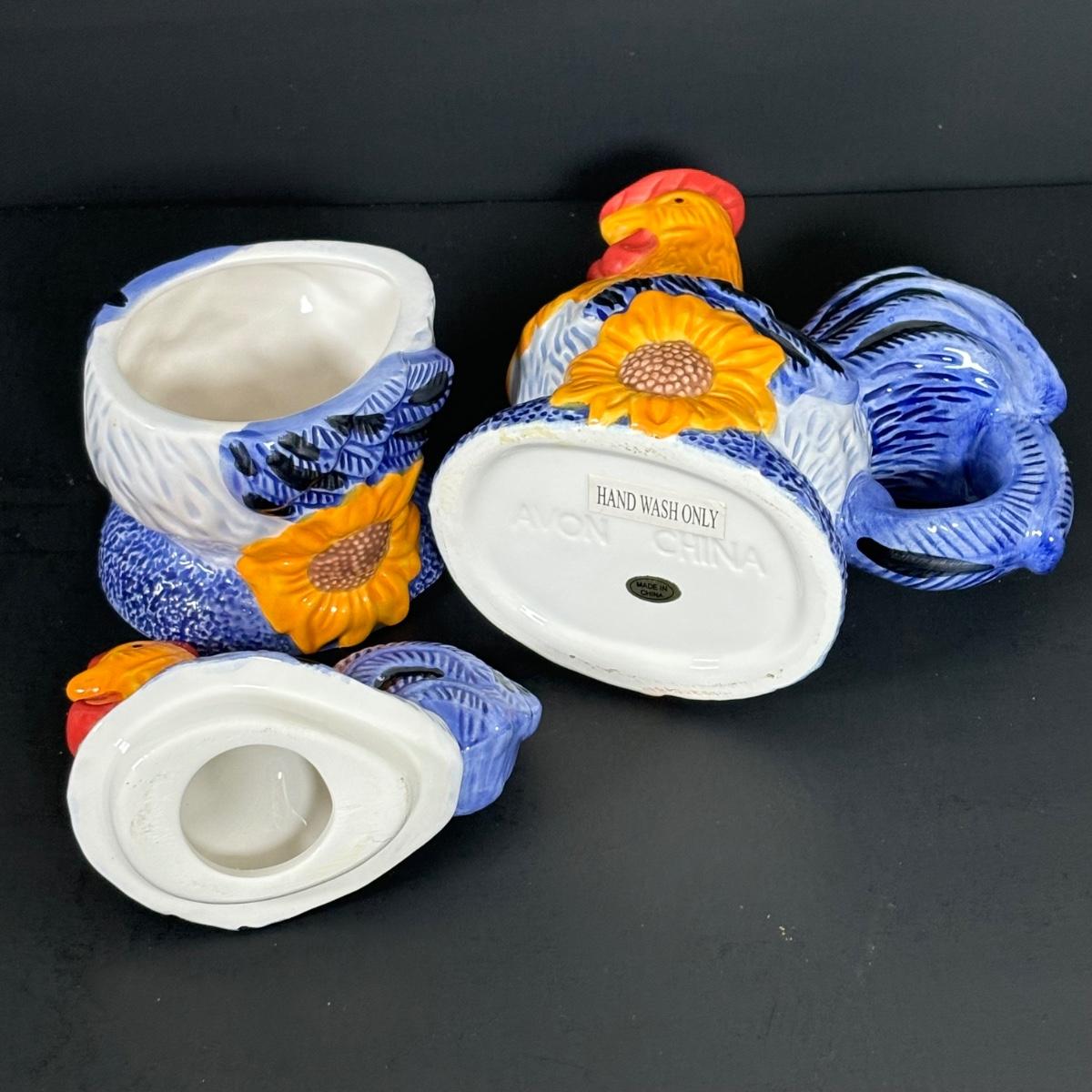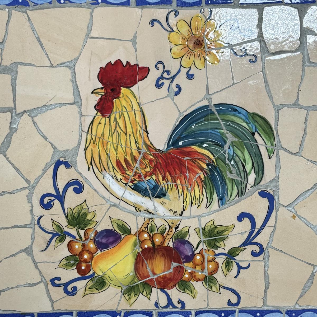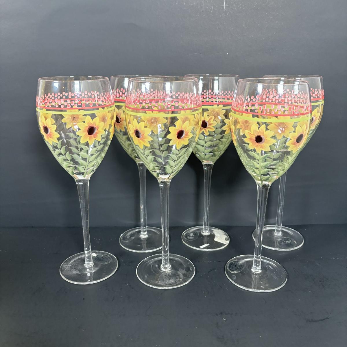 LOT 25: Roosters & Sunflower Collection: Mosaic Tray, Canisters, Salt/Pepper, Trivet, The Secrets of Pistoulet by Pfaltzgraff Hand Painted Water/Wine Glasses (6)