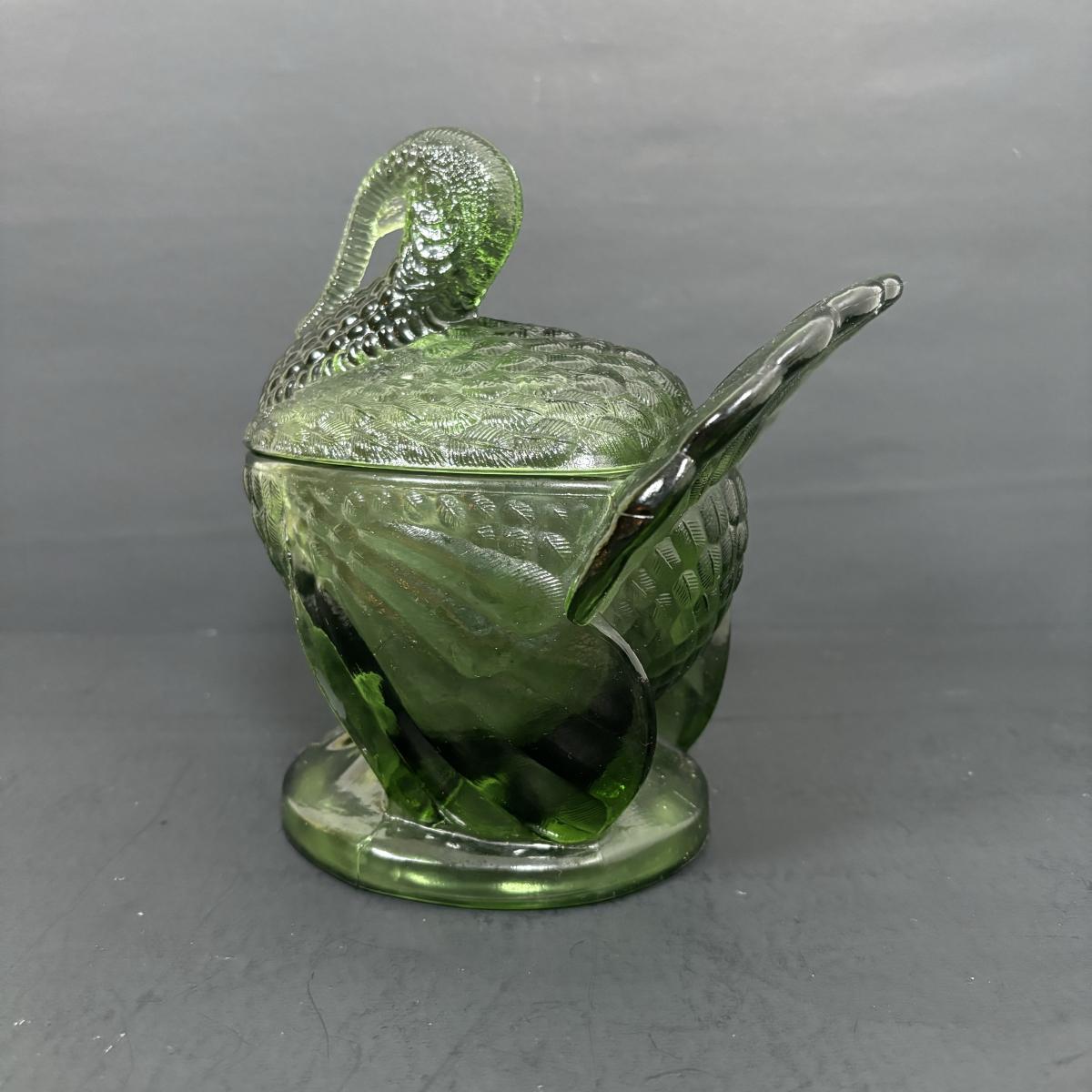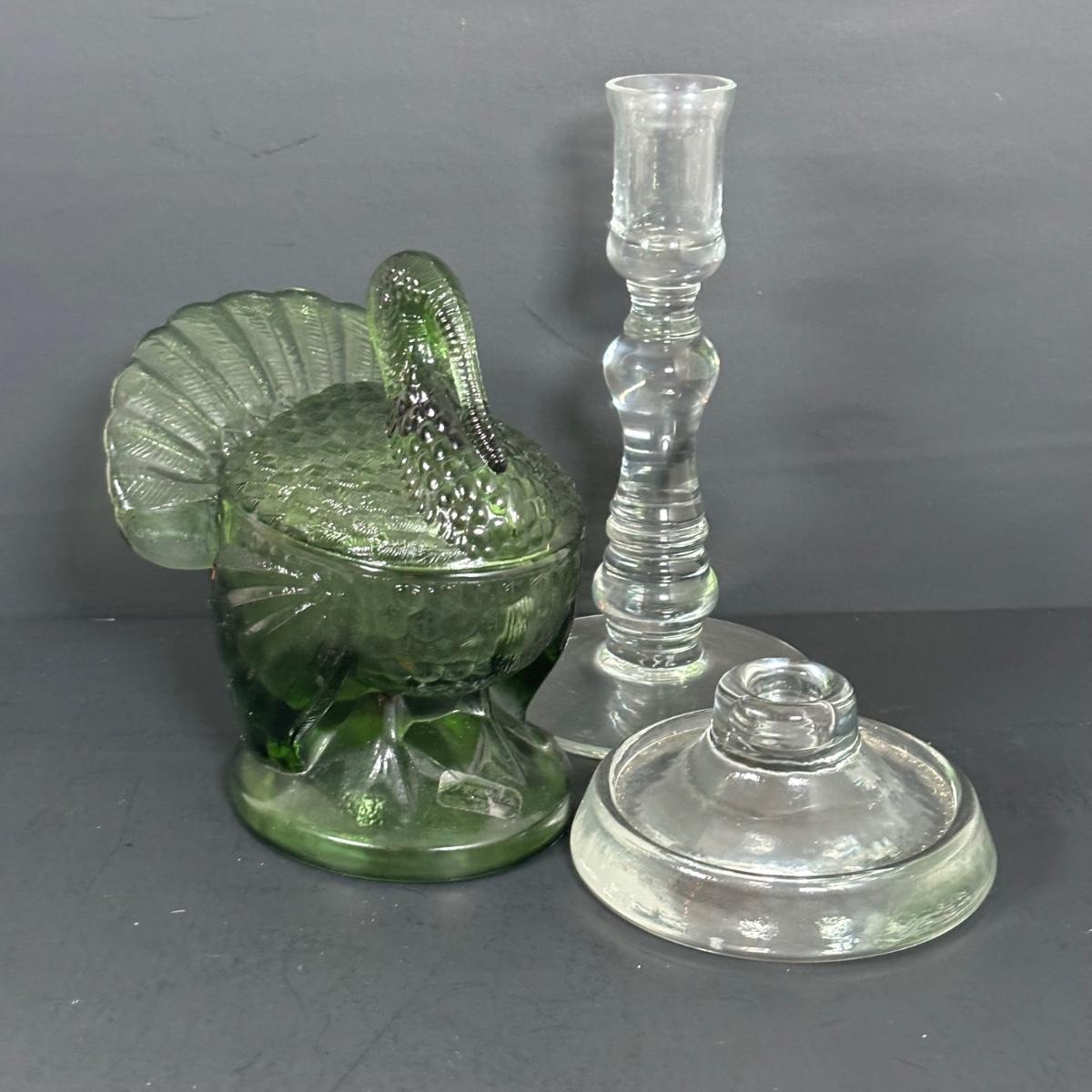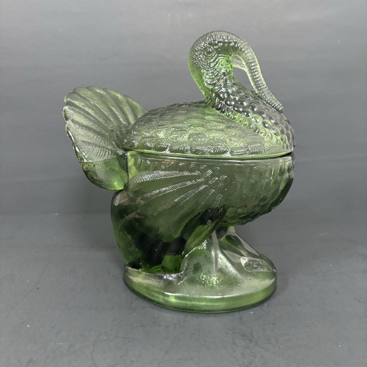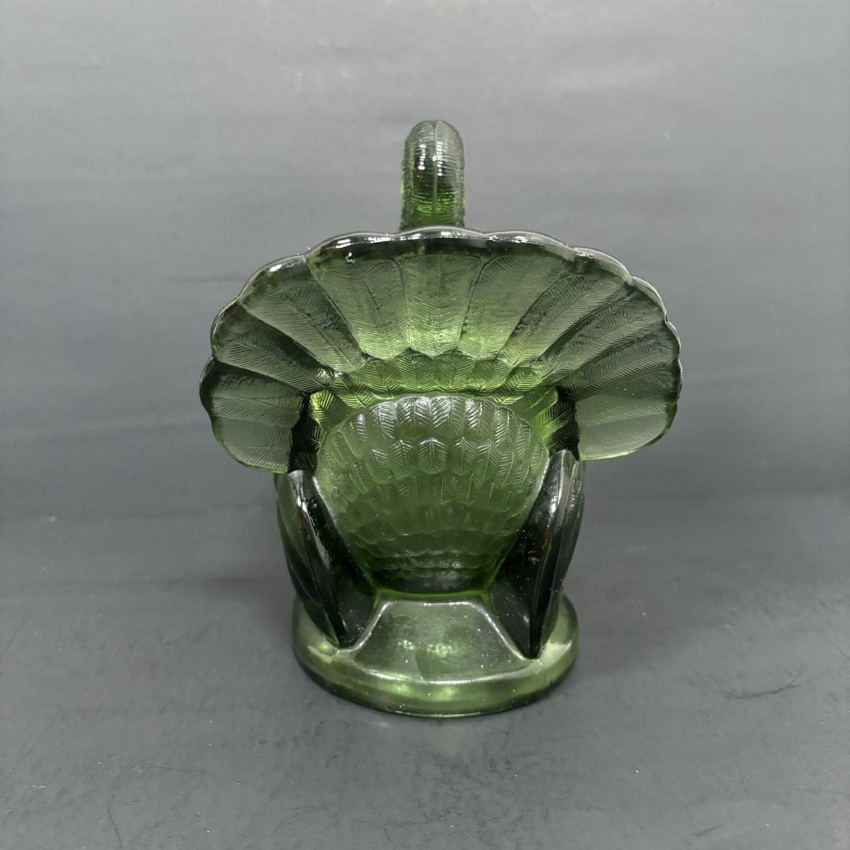 LOT 27: Vintage L.E. Smith Green Glass Turkey Shaped Lidded 7.25 in Candy Dish & More