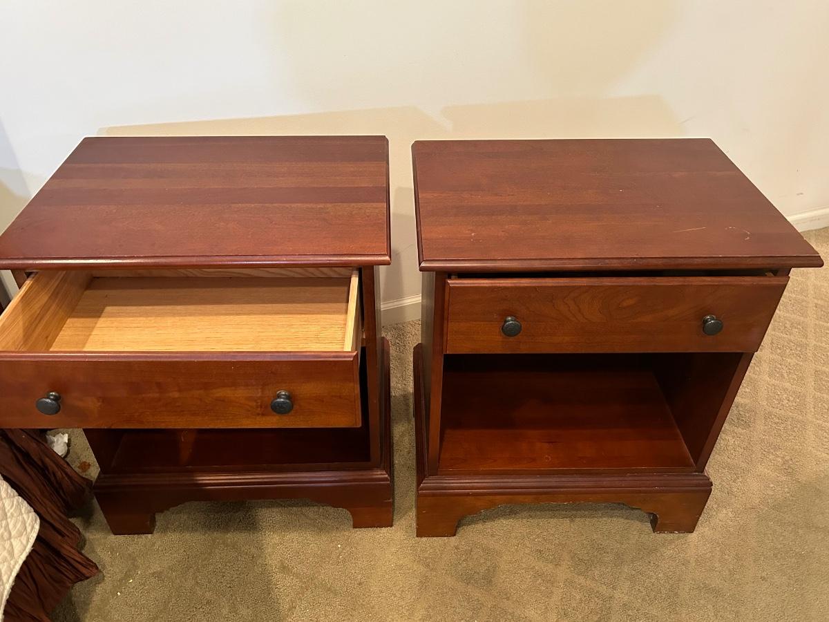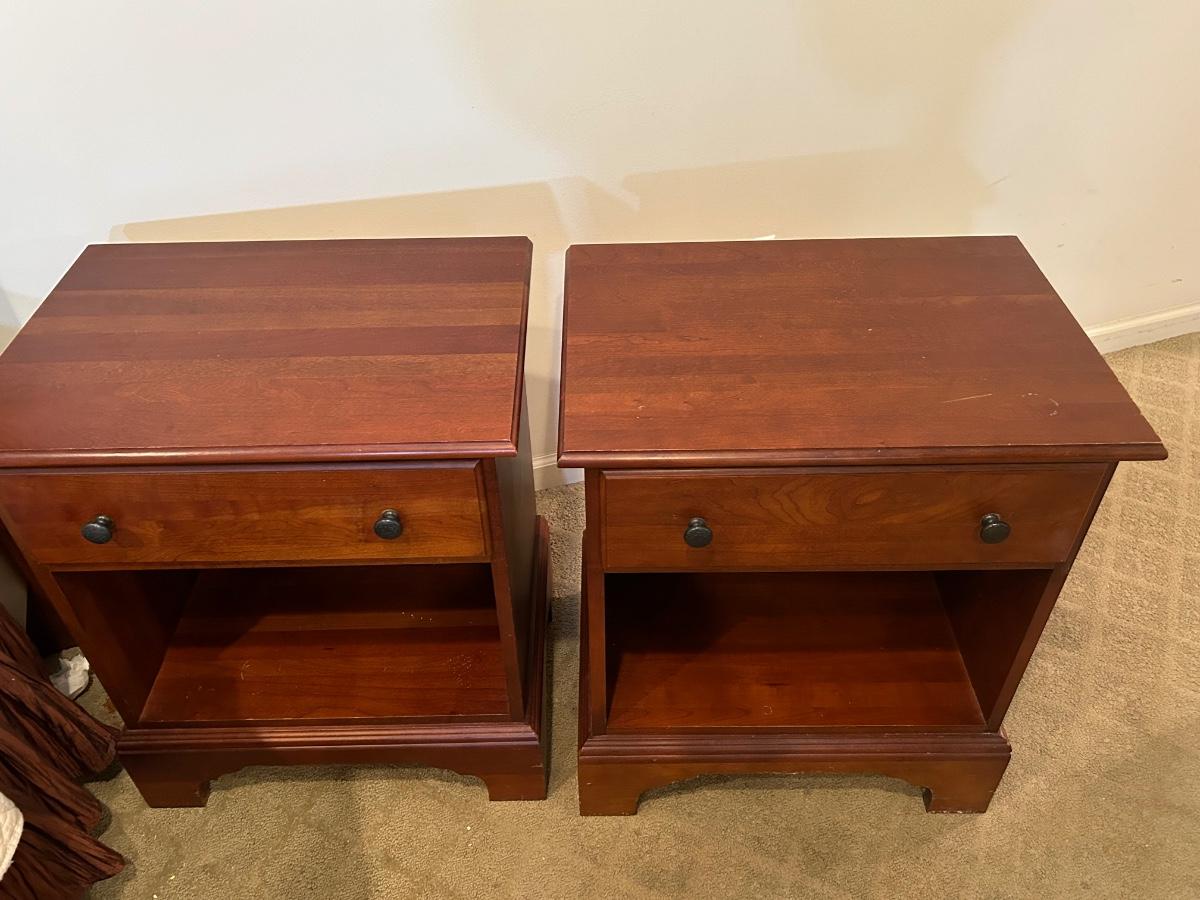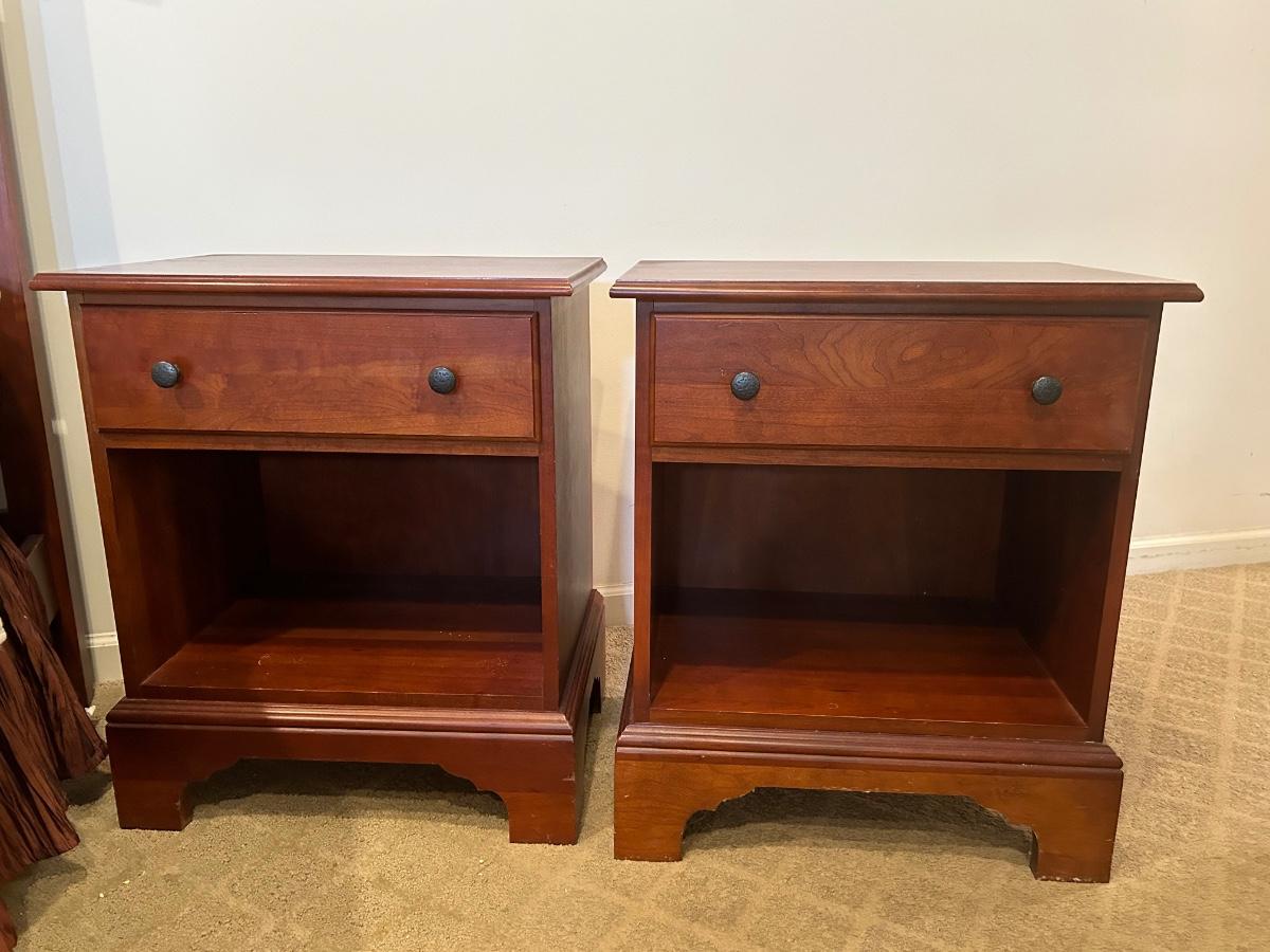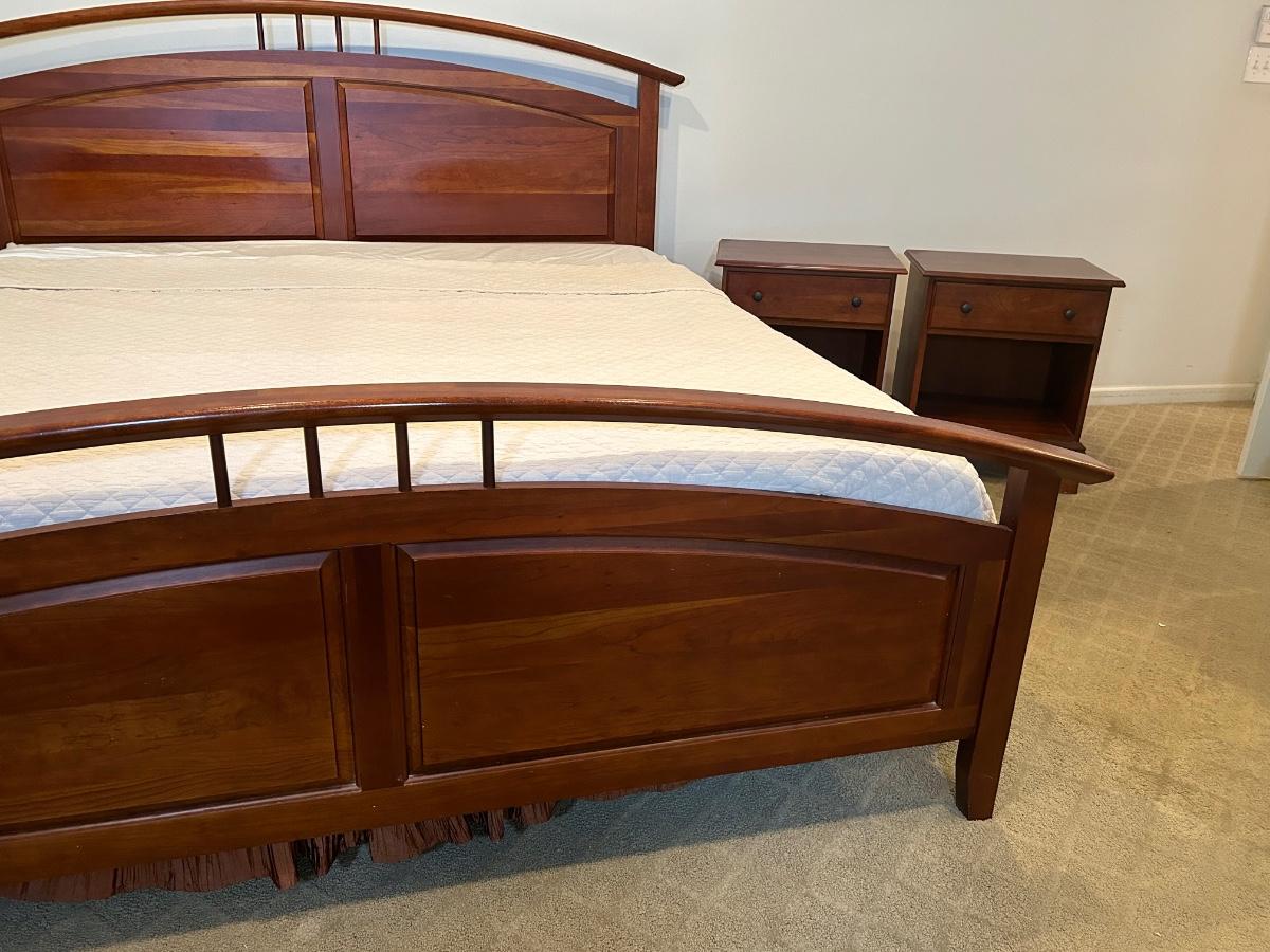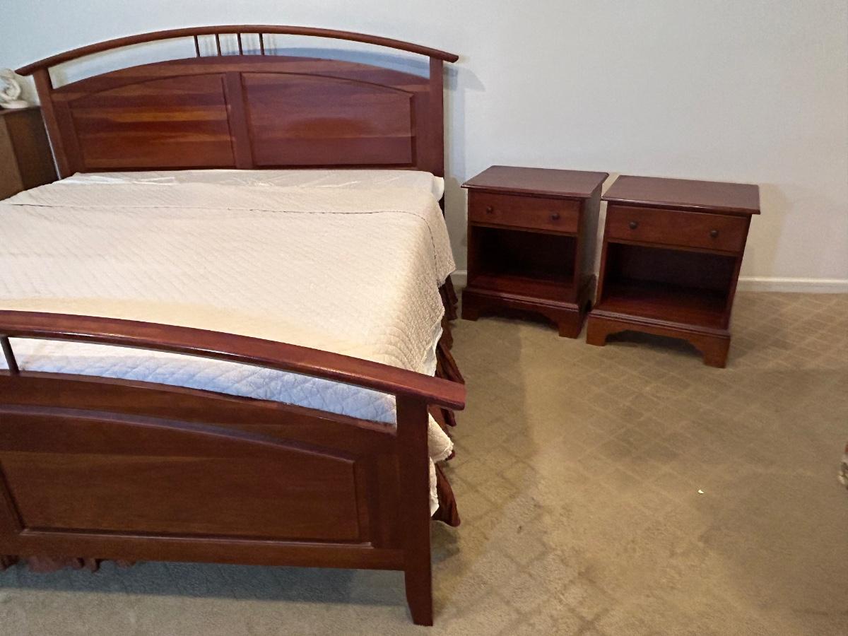 LOT 30: Wood Headboard, Footboard and Two Nightstands