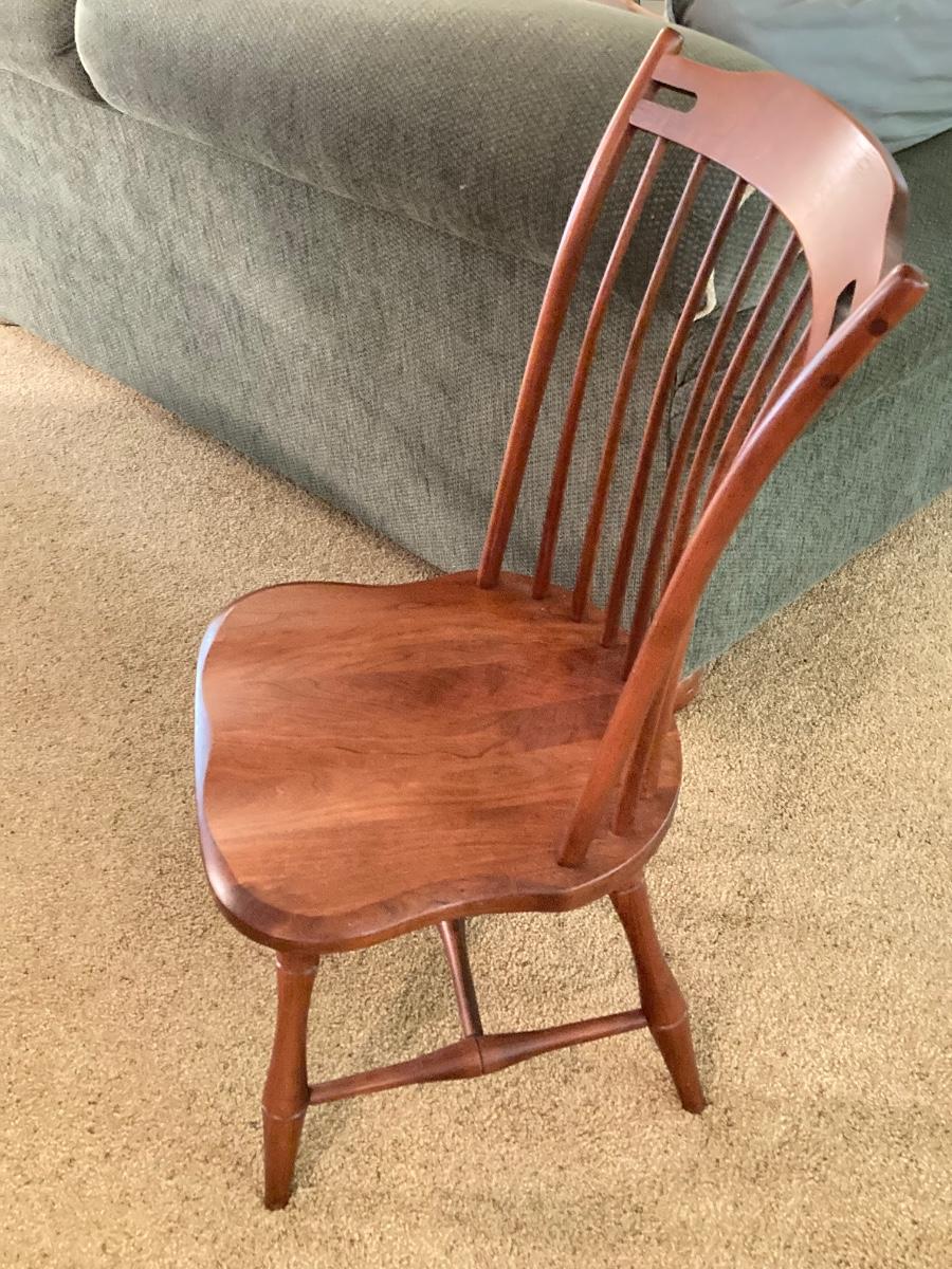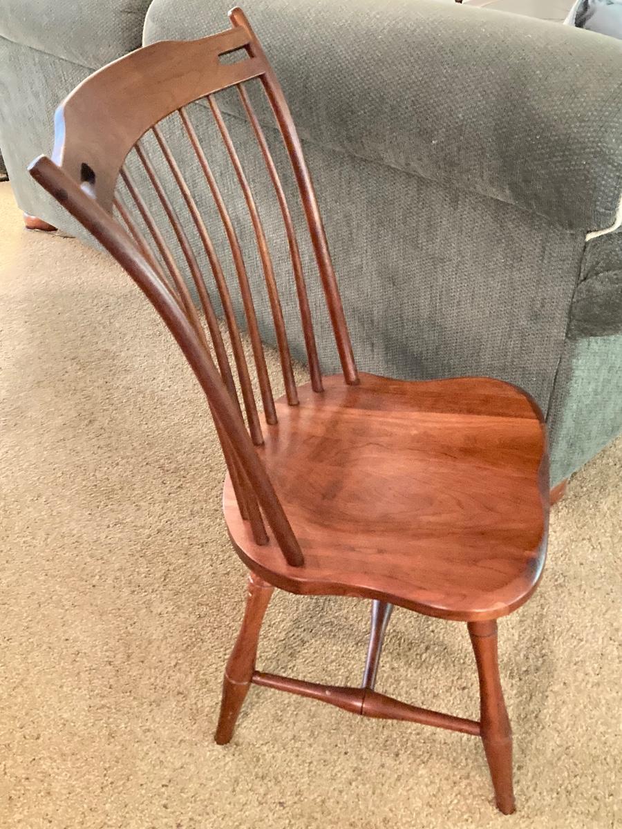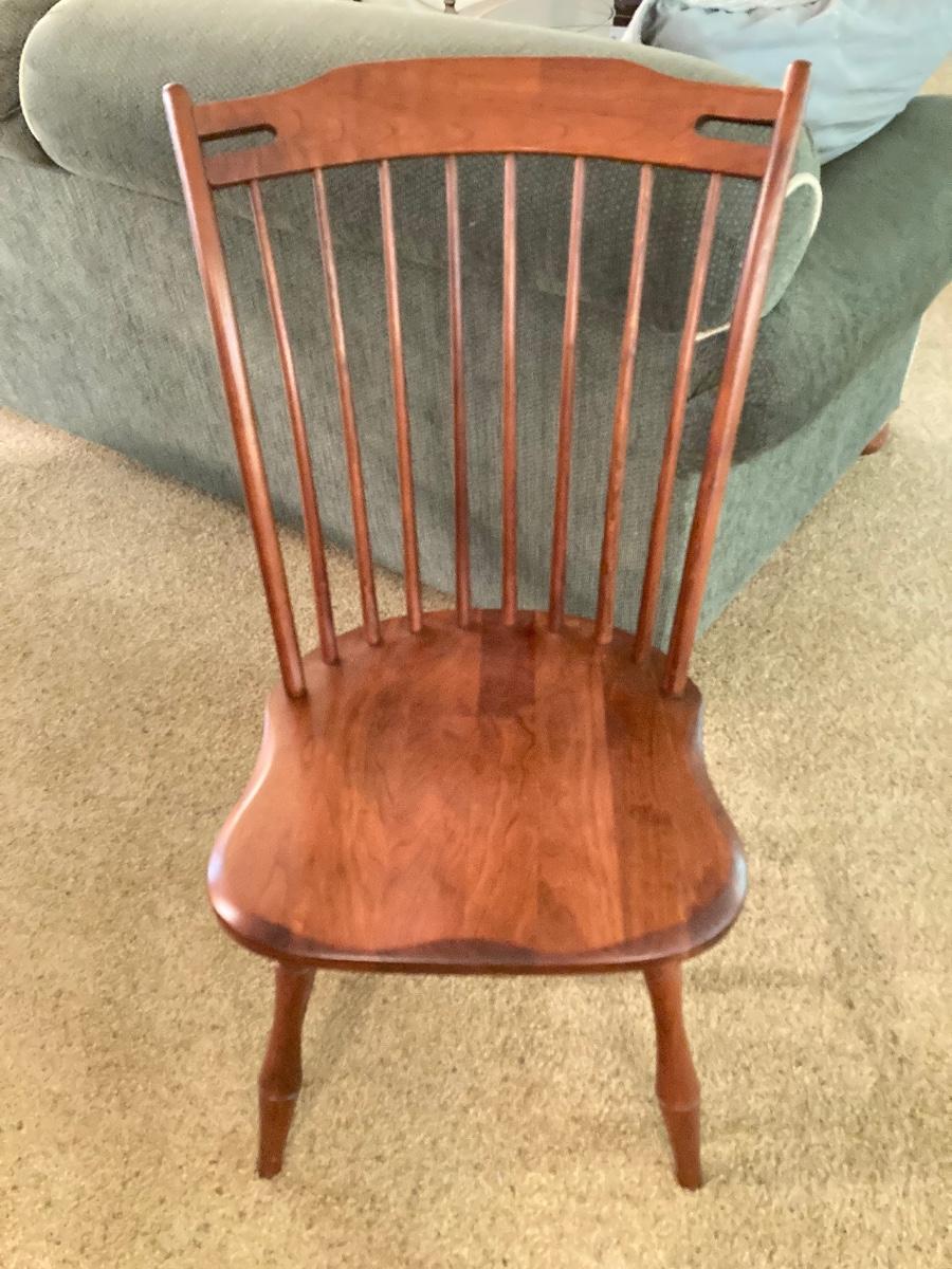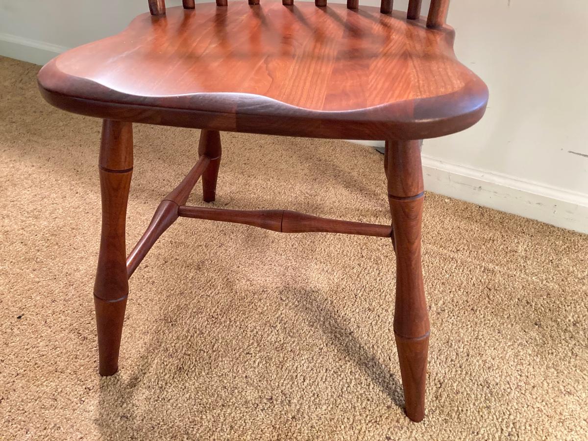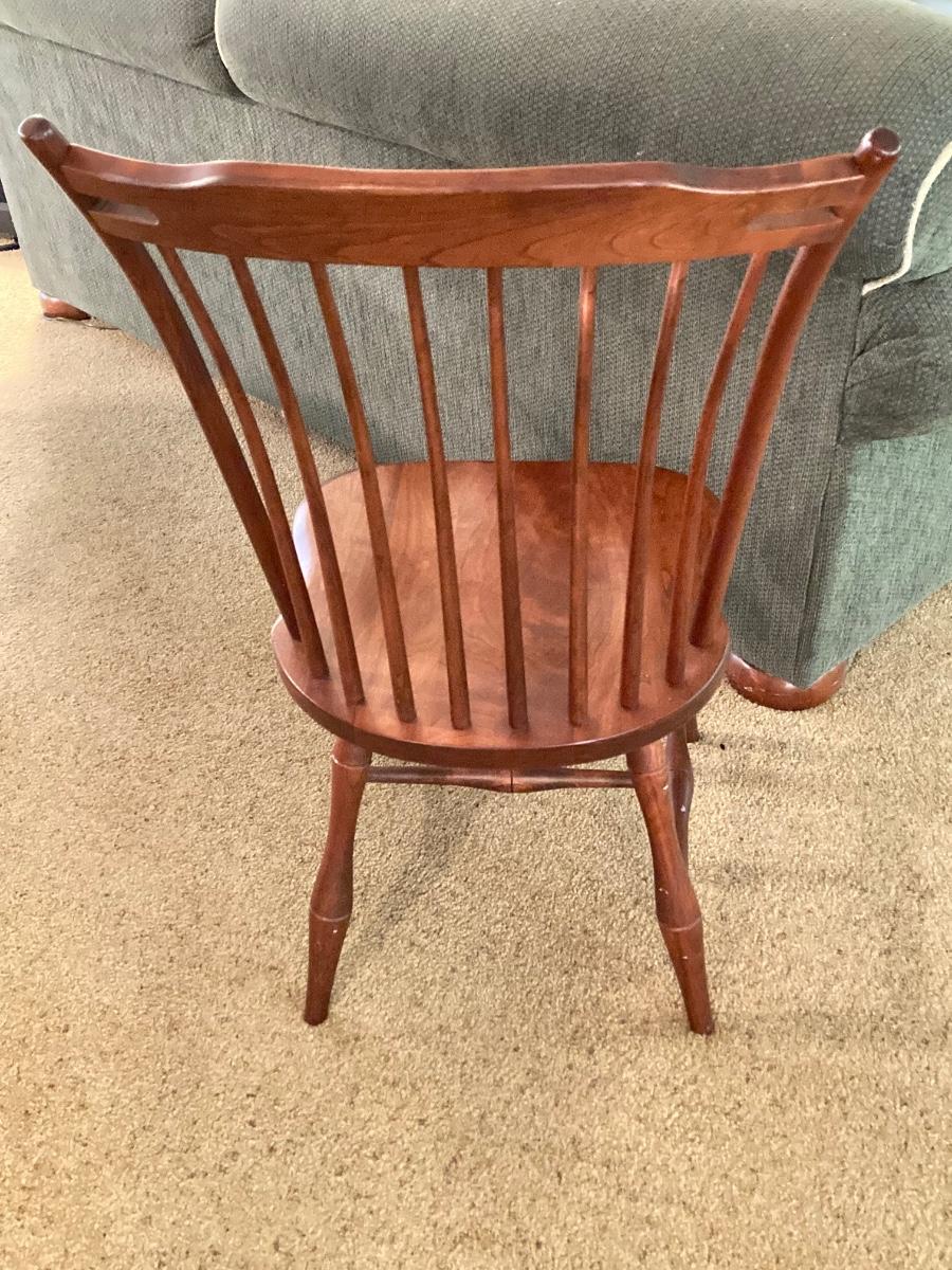 LOT 55D: Pennsylvania House Round Drop Leaf Wood Table and Four Tom Seely Furniture Rod Back Seasoned Cherry Chairs
