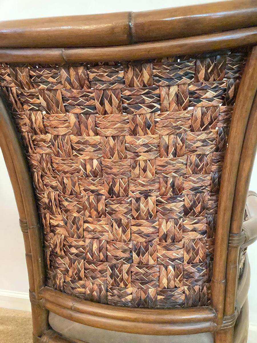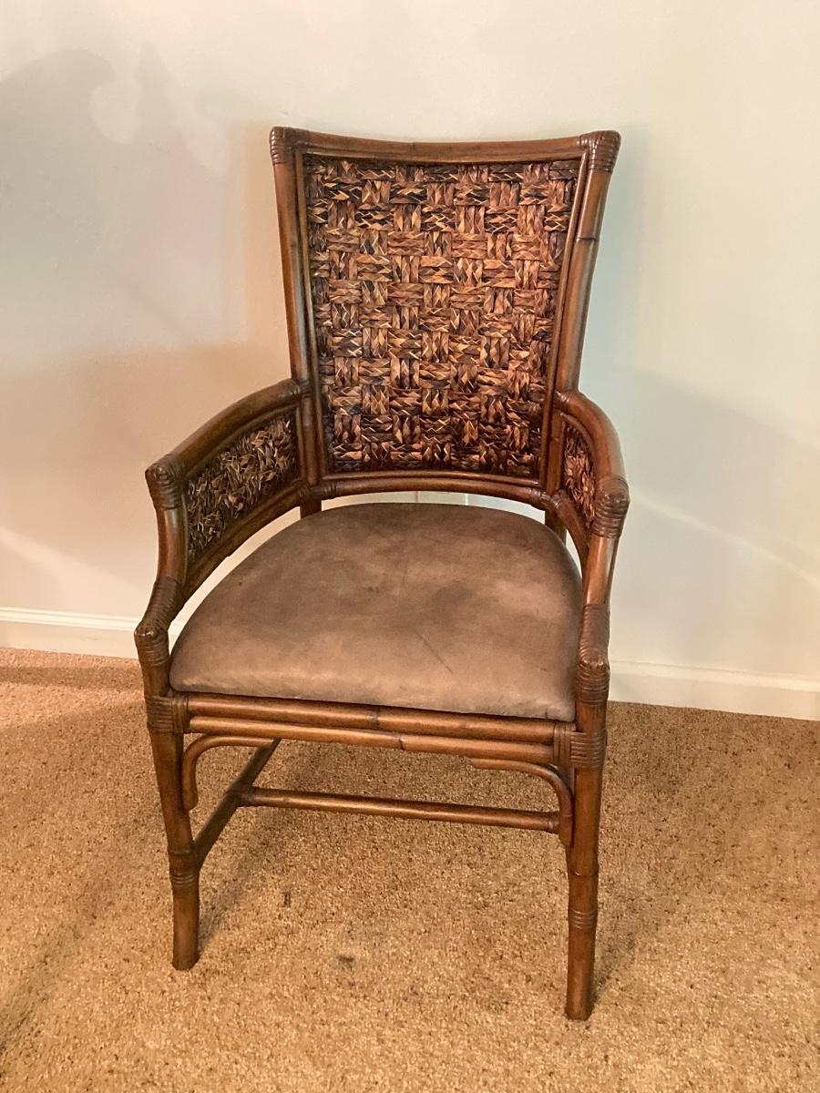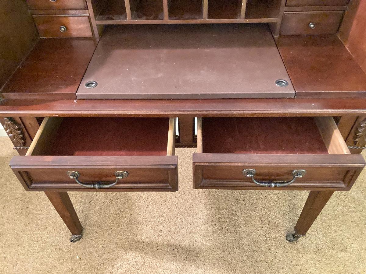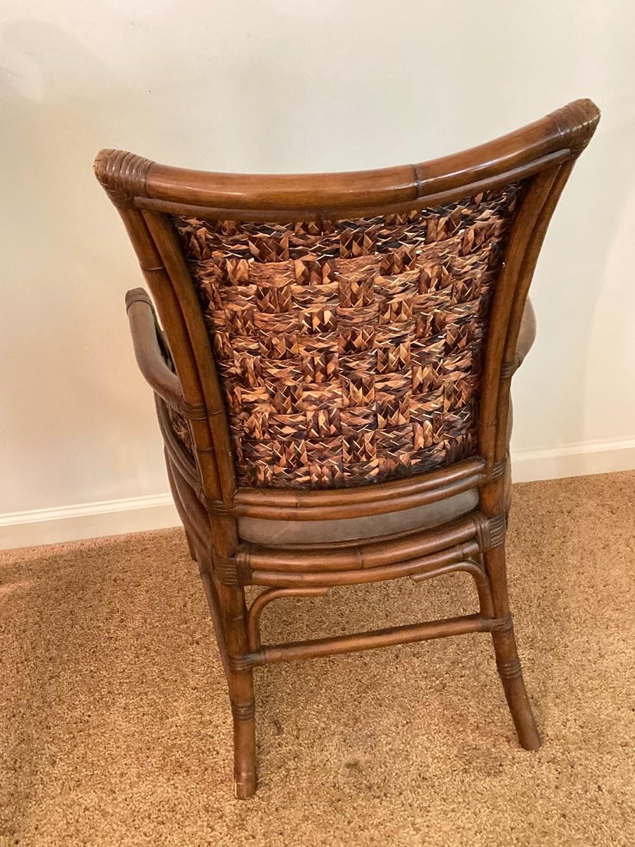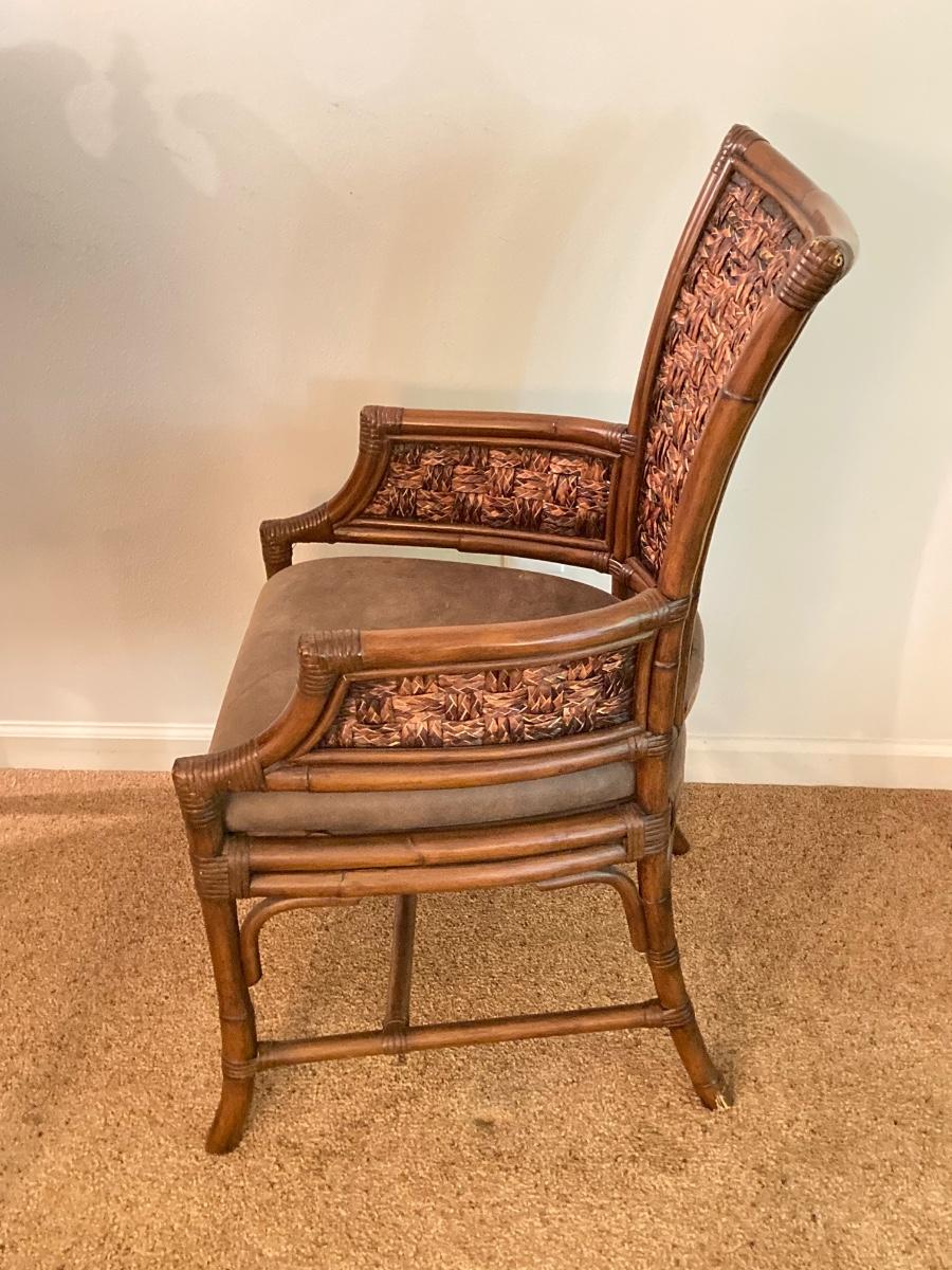 LOT 58L: Rolling Wood Roll Top Secretary Desk and Bassett Furniture Rattan Chair