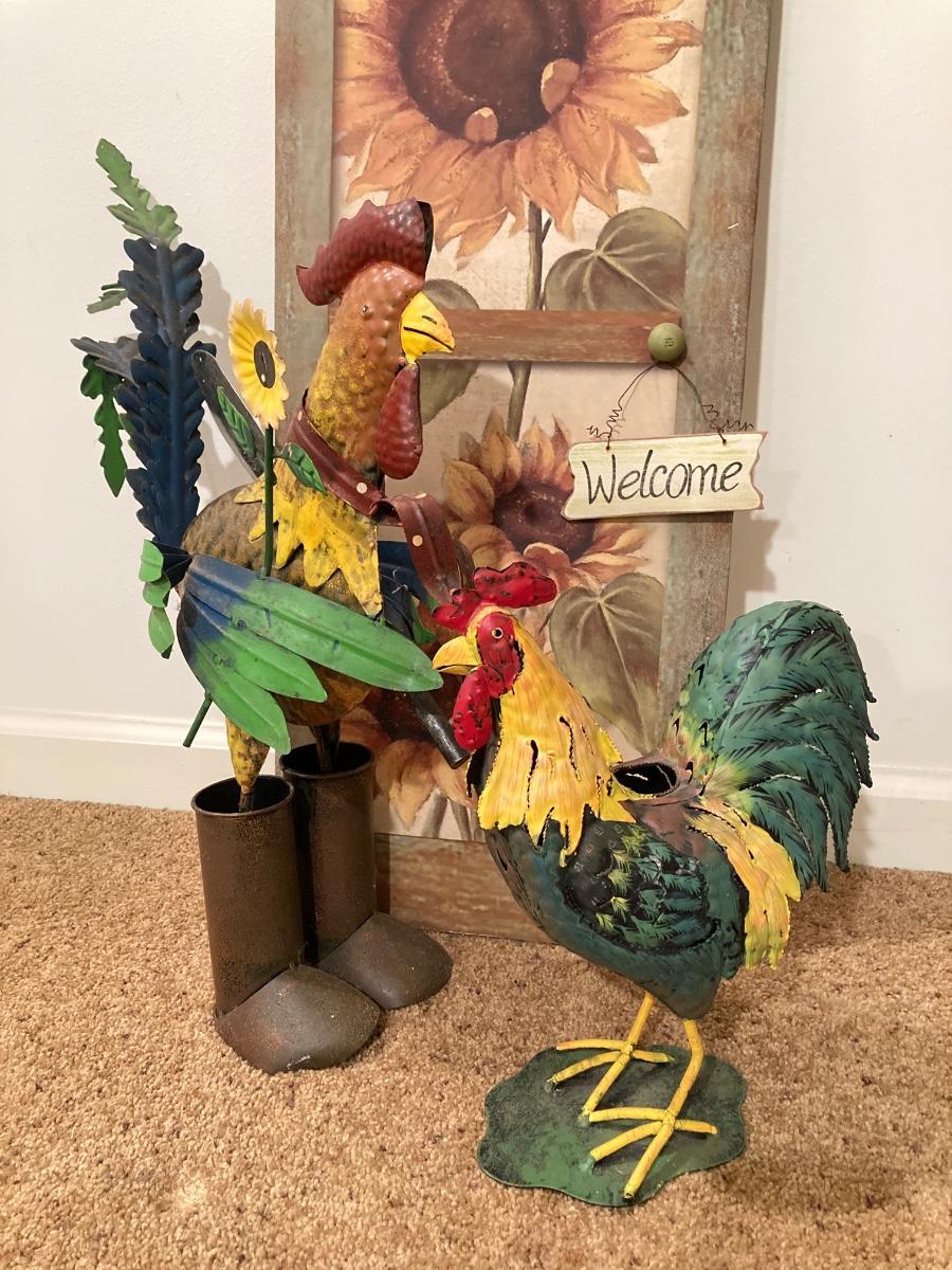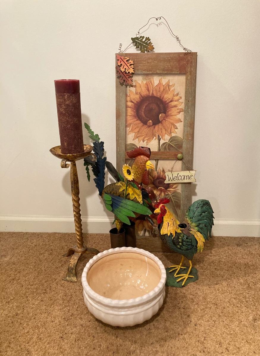LOT 64L: Farm House Home Decor - Roosters, Candle Holder, Sunflower and More