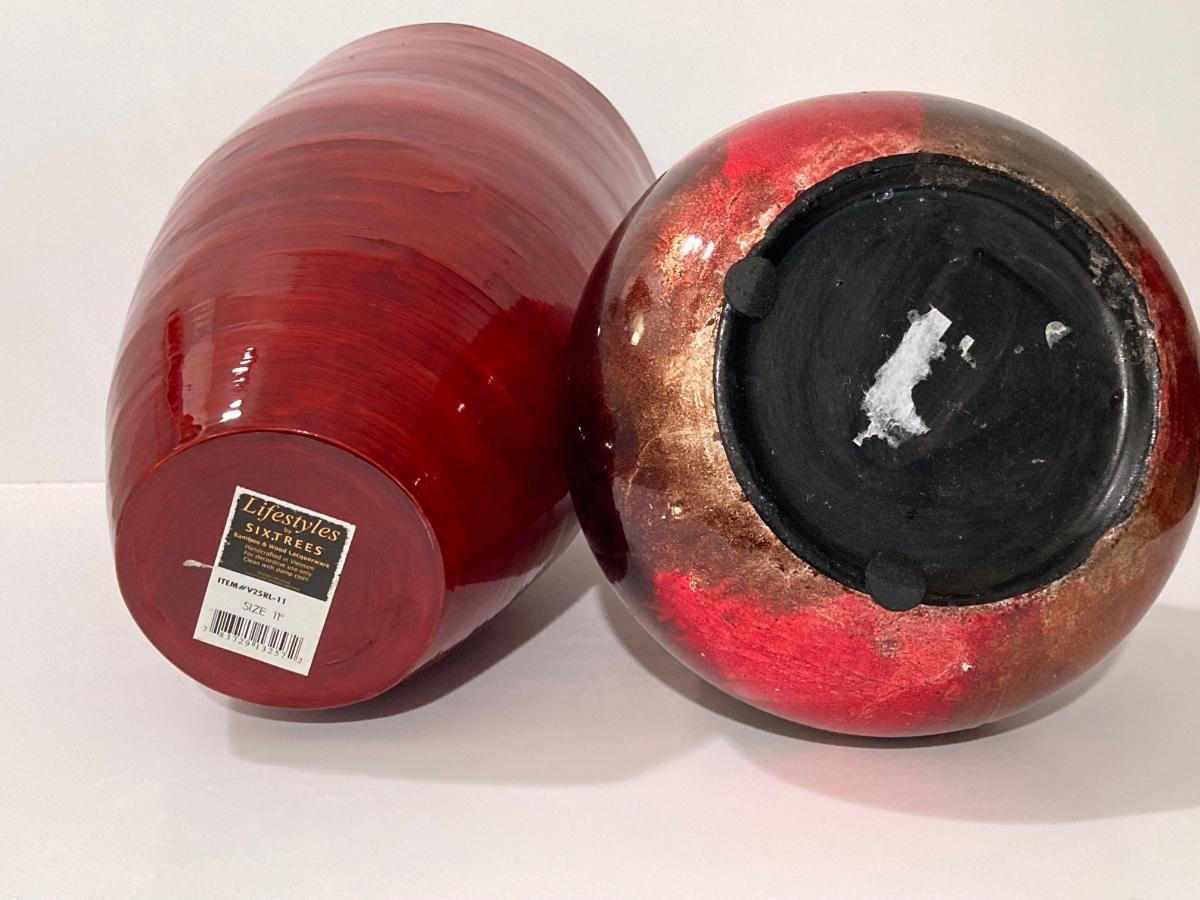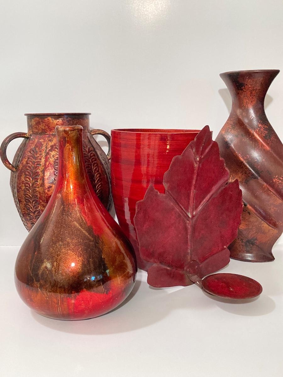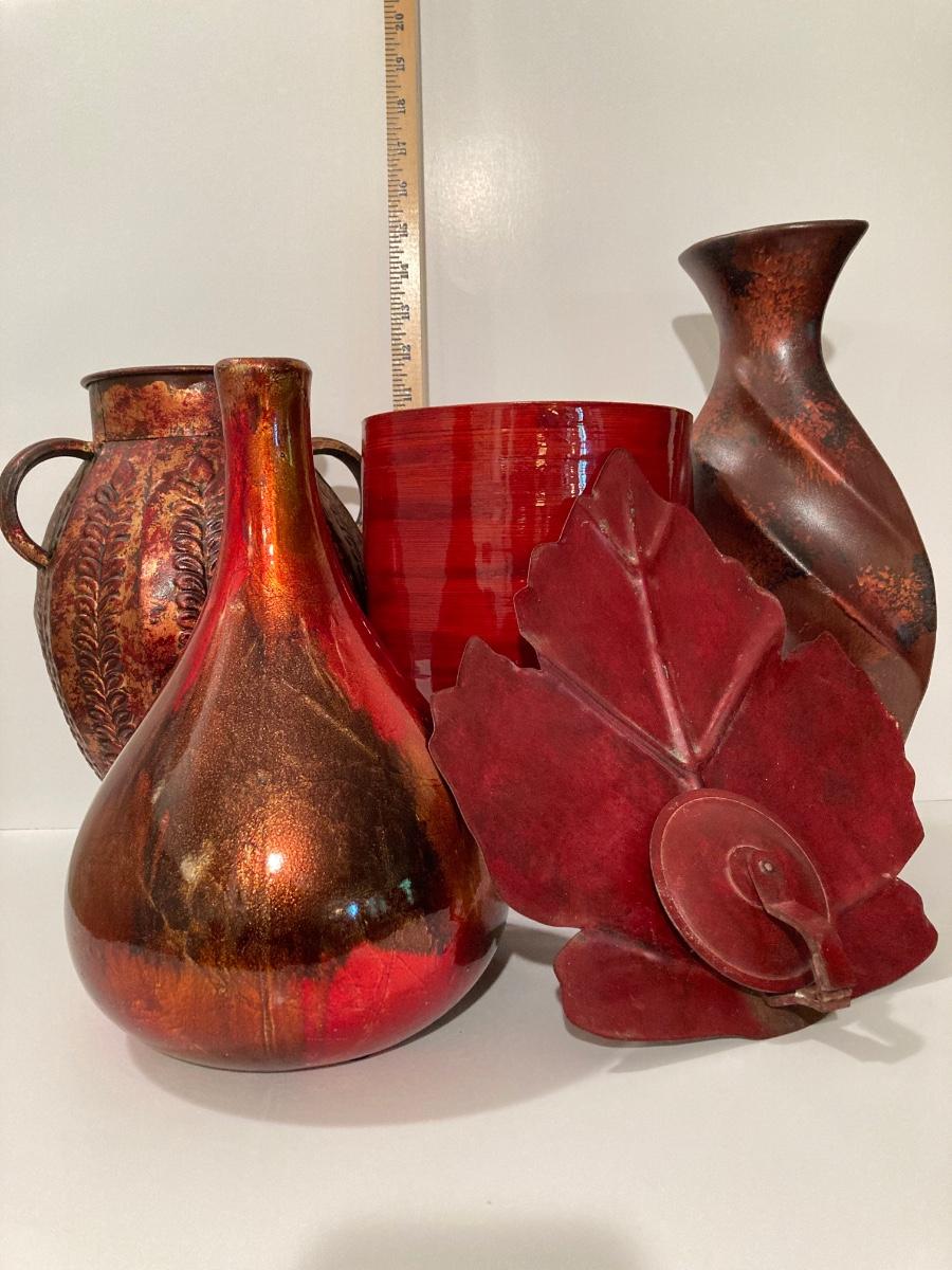 LOT 66L: Warm Cranberry / Red Tone Vase and Candle Holder Collection