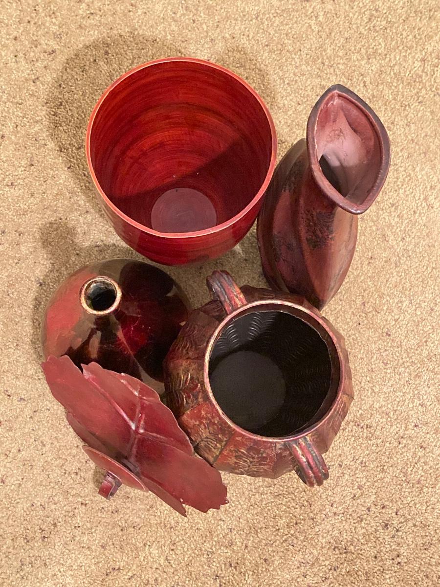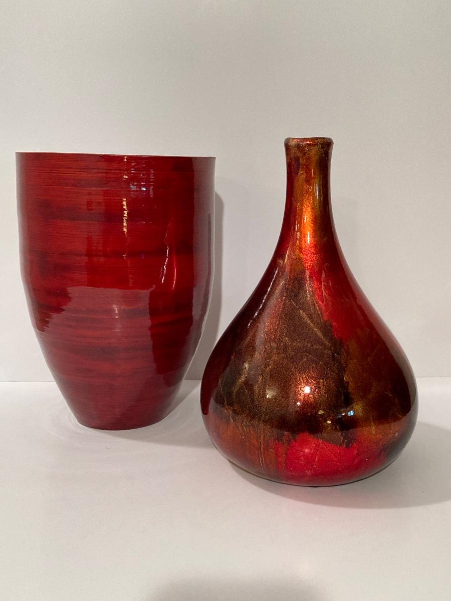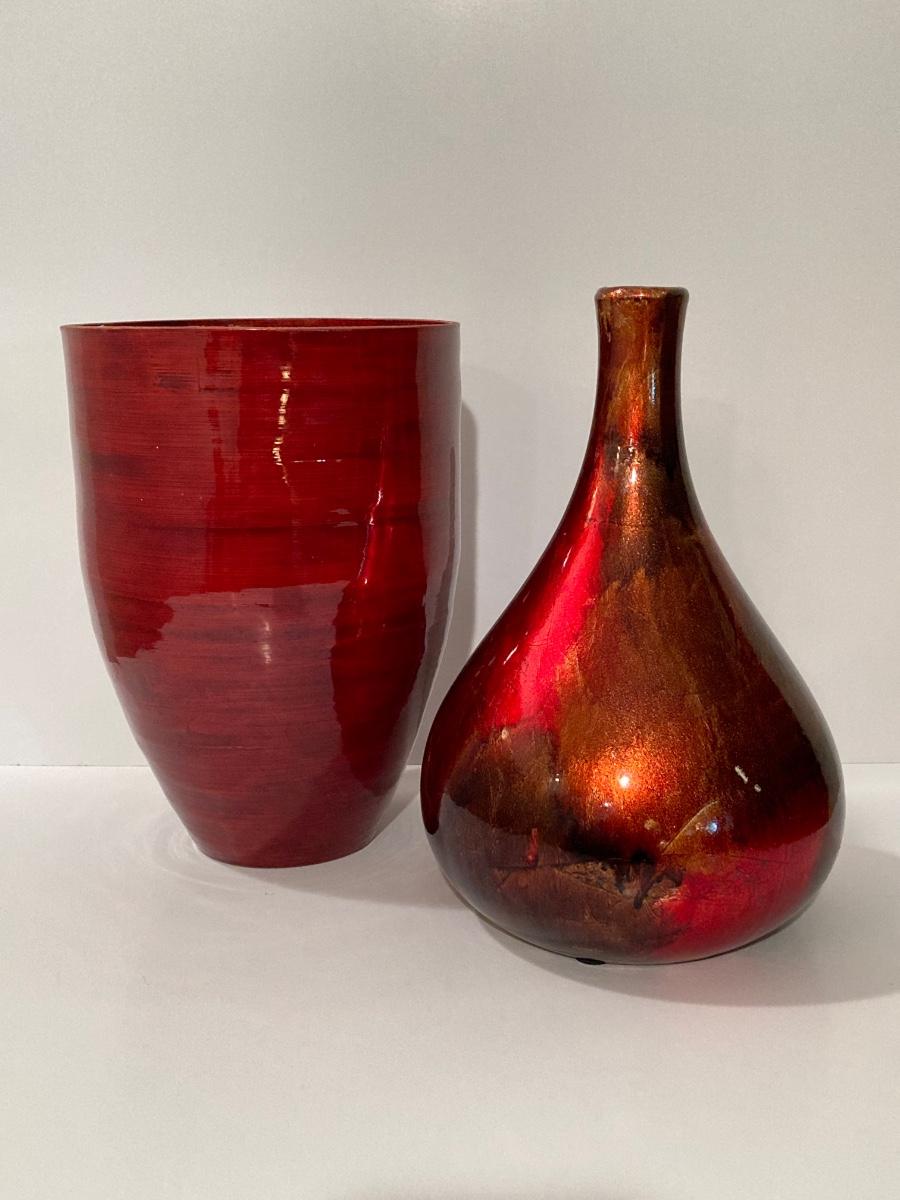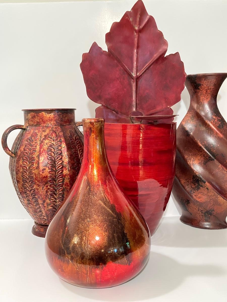 LOT 66L: Warm Cranberry / Red Tone Vase and Candle Holder Collection