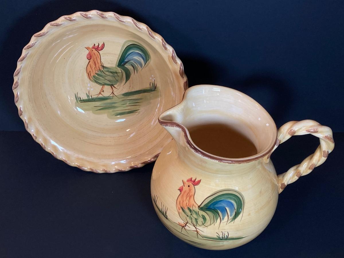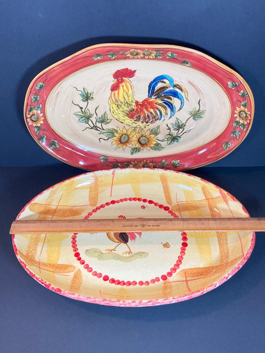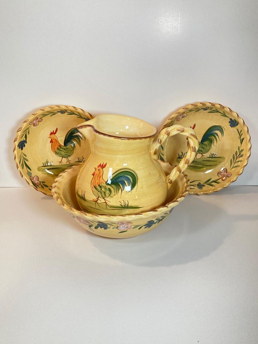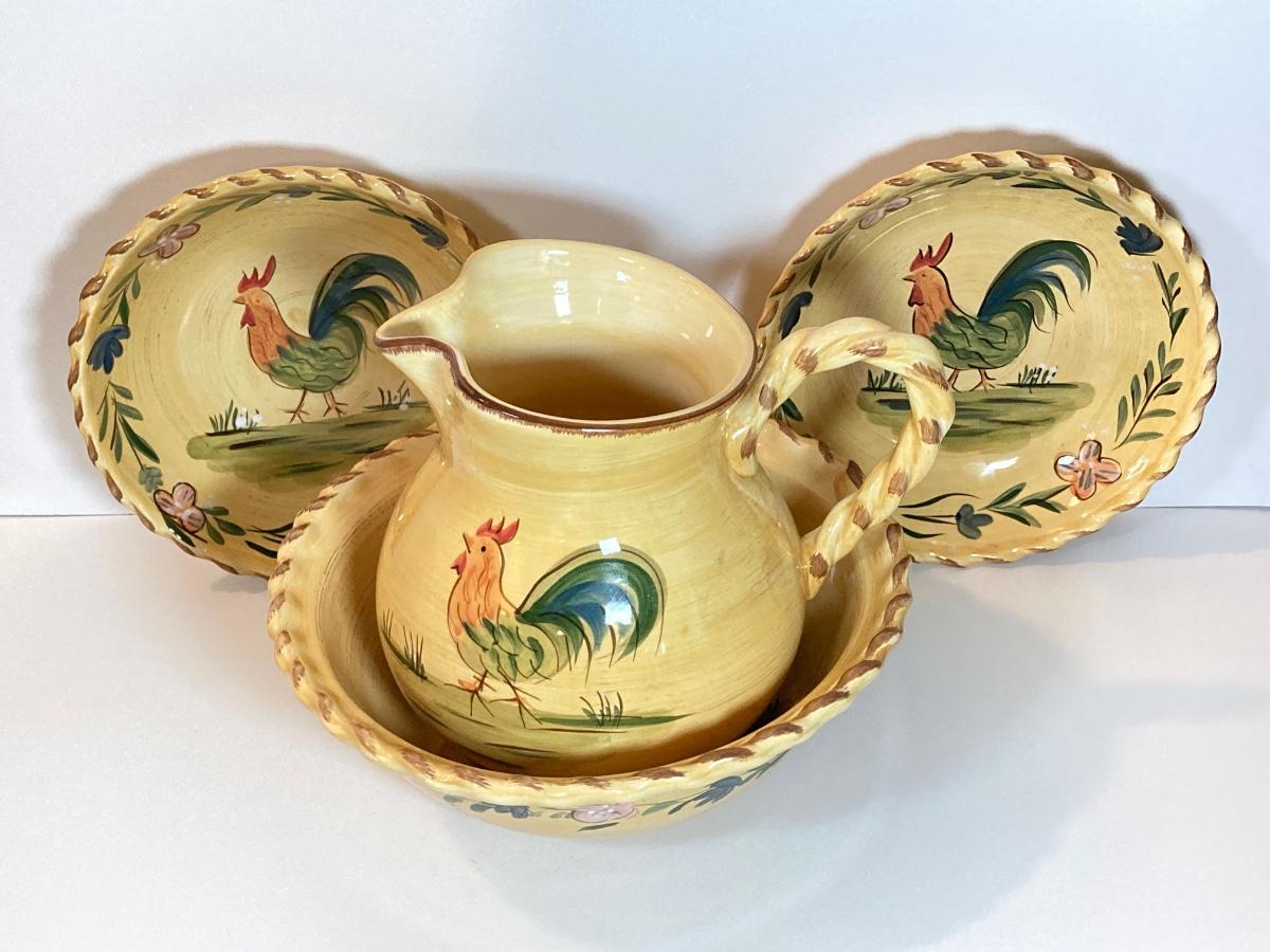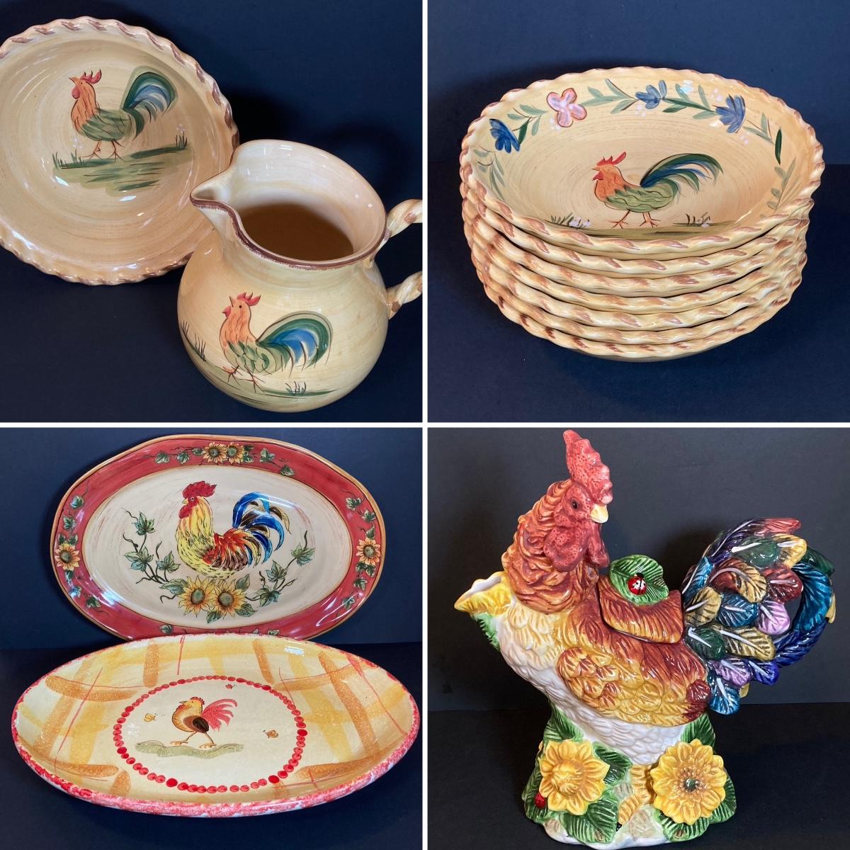 LOT 71K: Rooster Serving Ware - Bowls, Pitchers and Trays