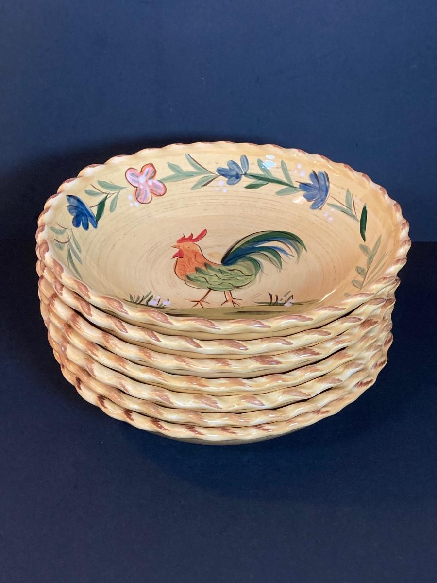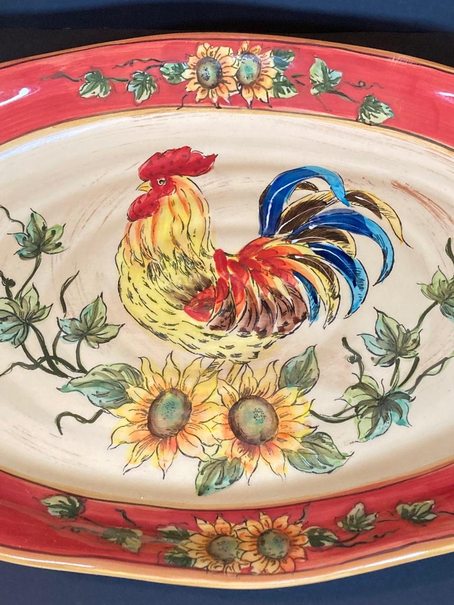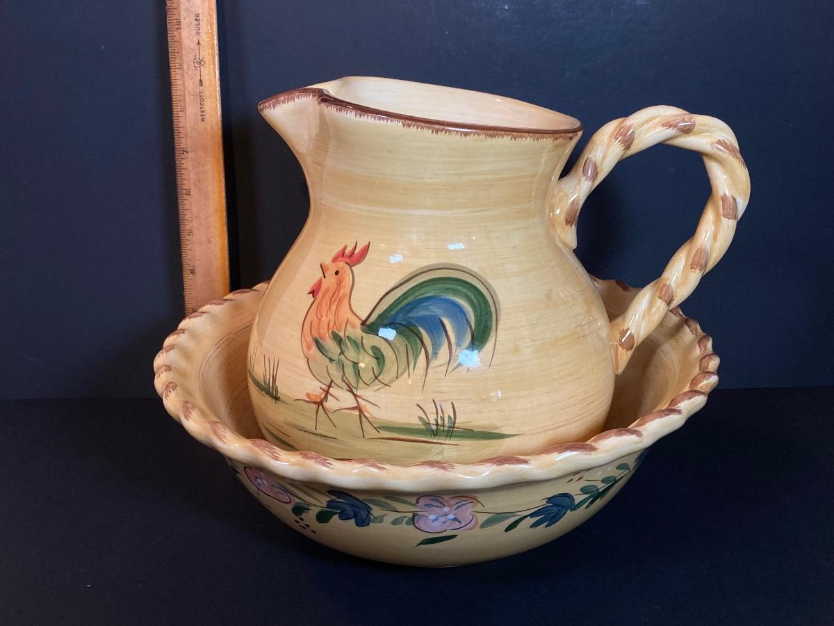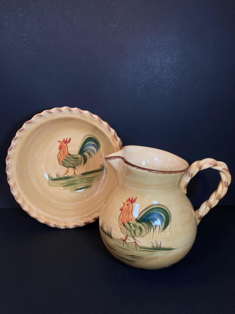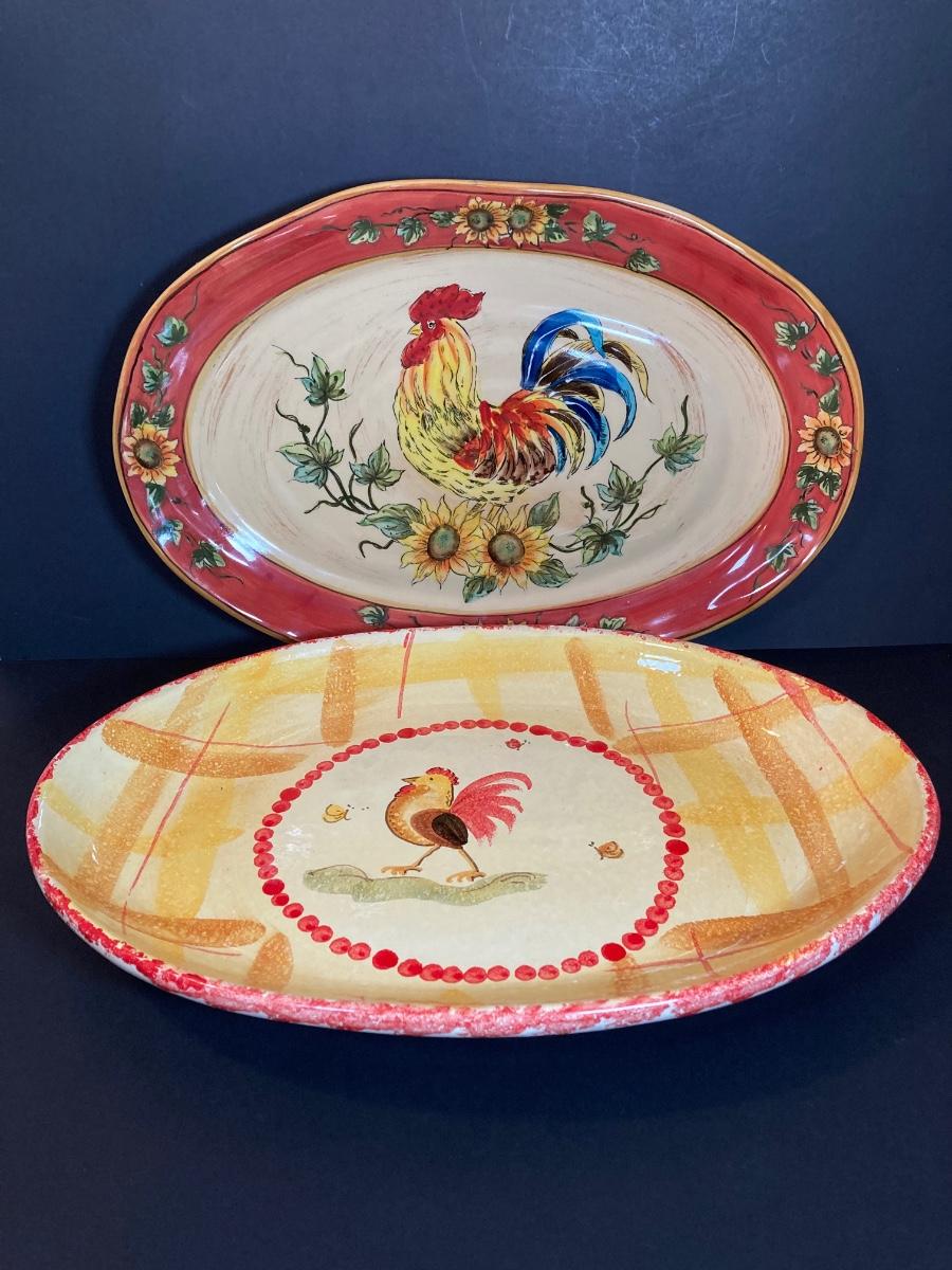 LOT 71K: Rooster Serving Ware - Bowls, Pitchers and Trays