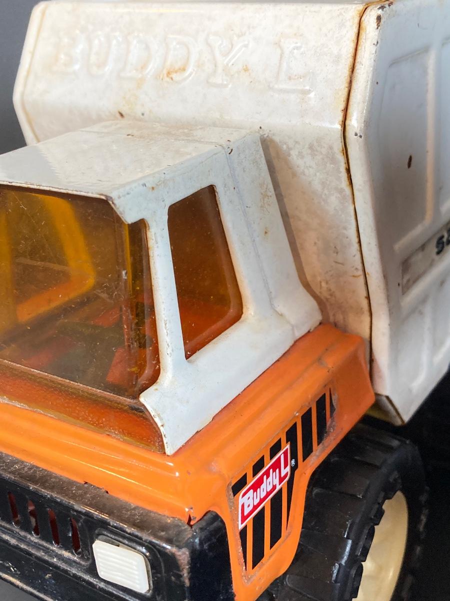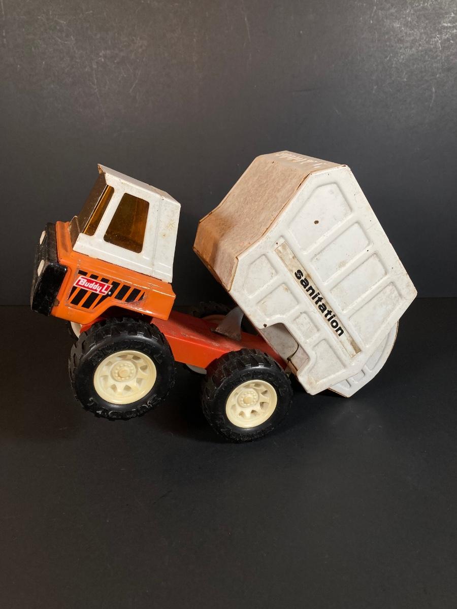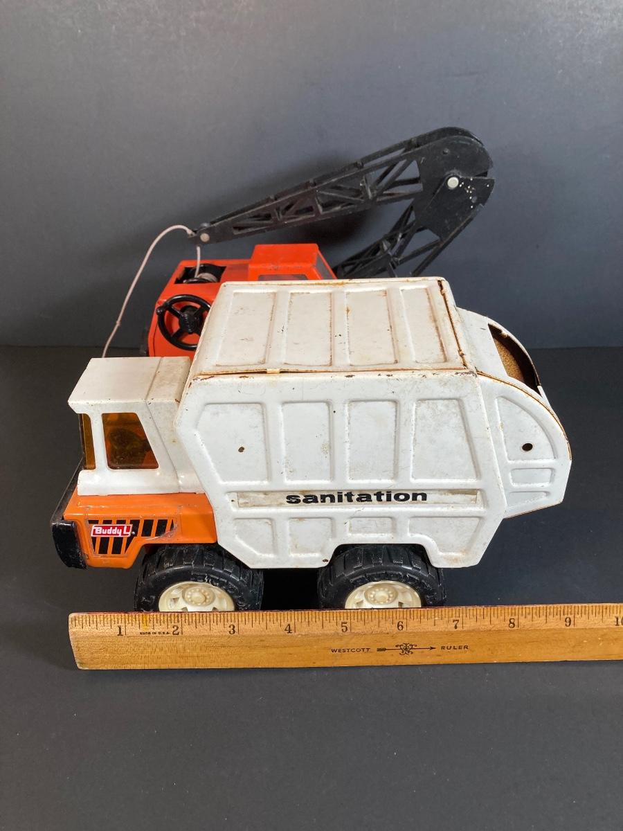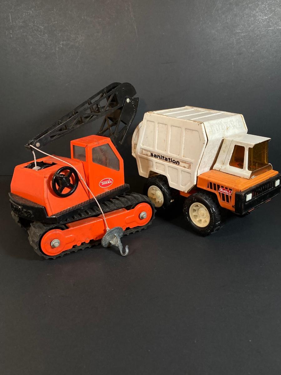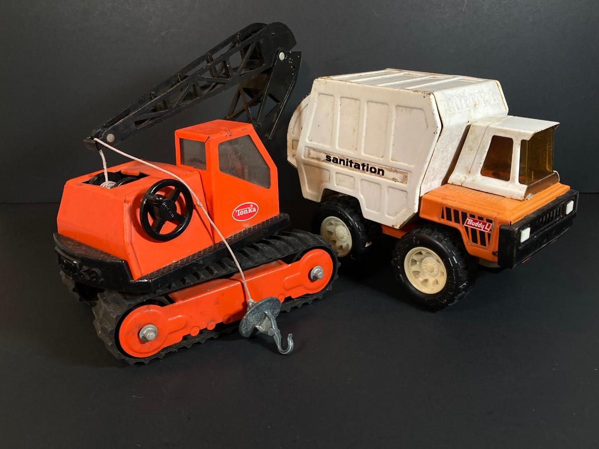 LOT 75L: Vintage Buddy L Sanitation Truck and Orange Tonka Crane Crawler