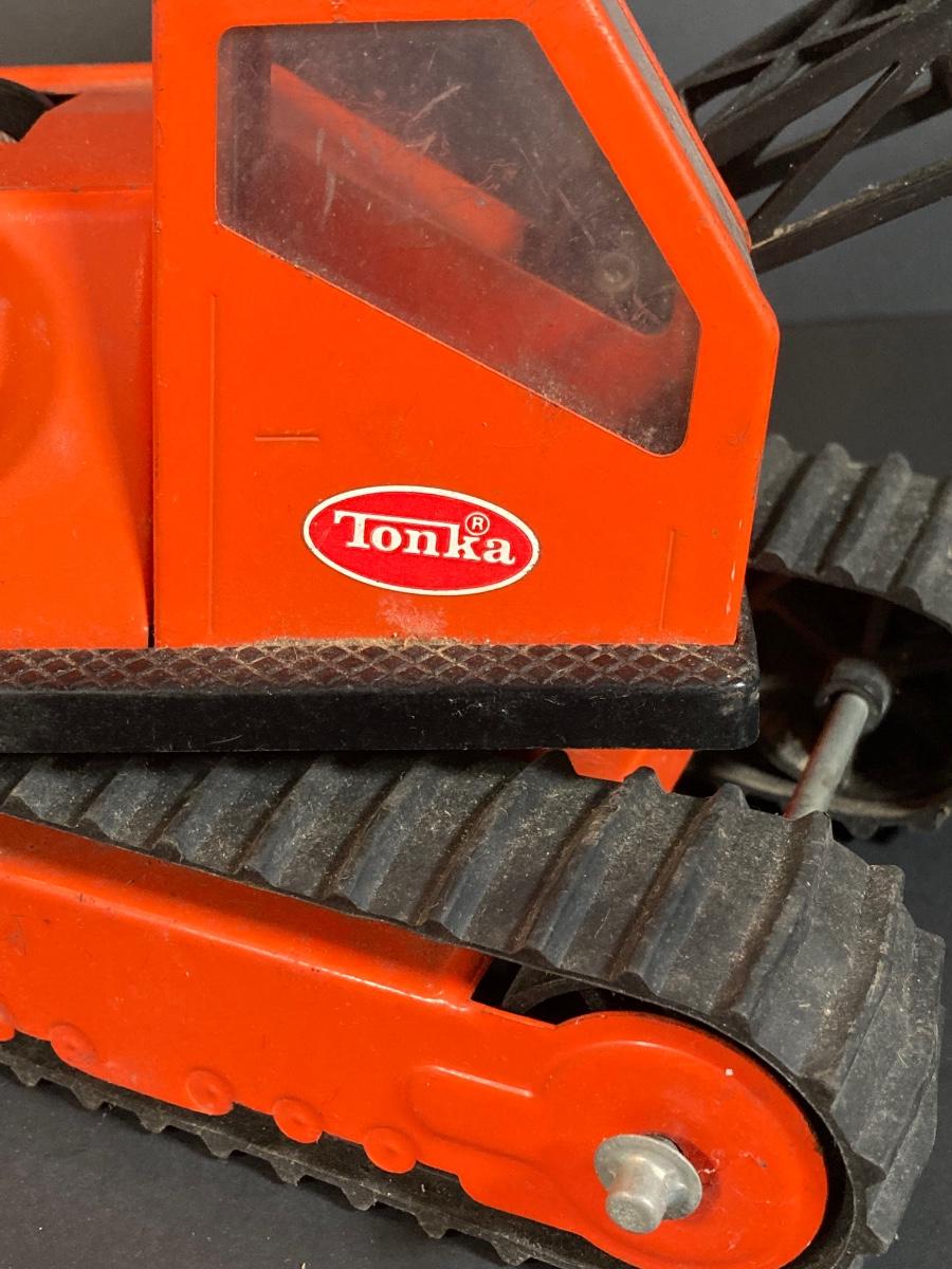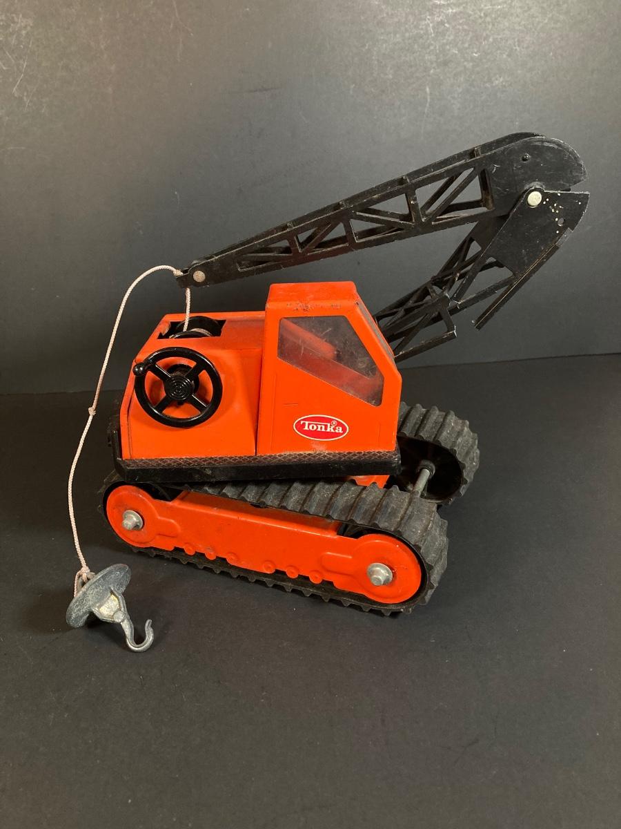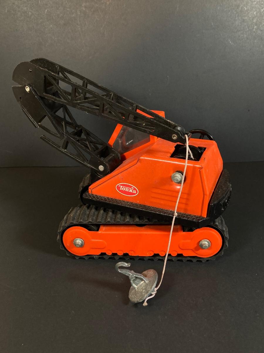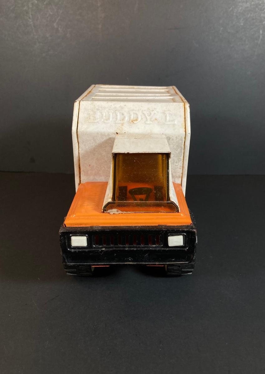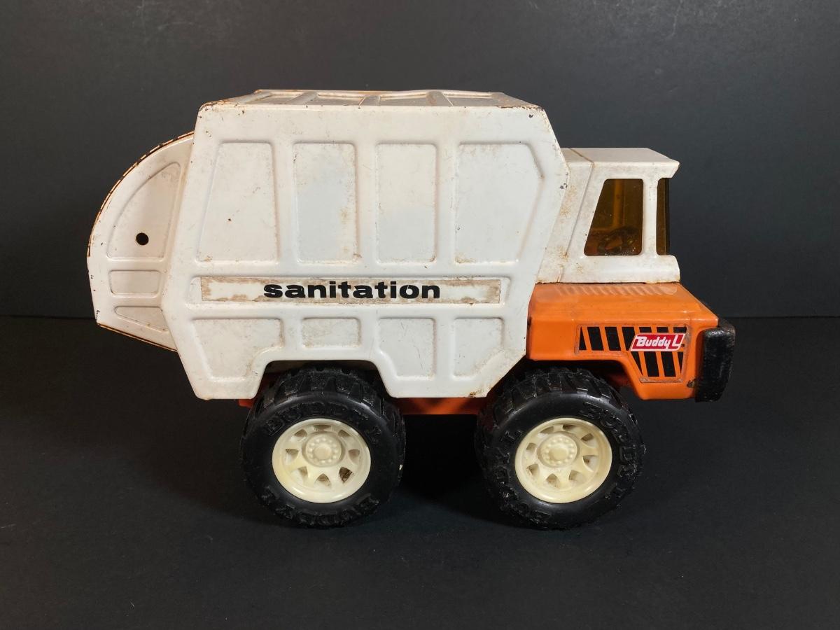 LOT 75L: Vintage Buddy L Sanitation Truck and Orange Tonka Crane Crawler