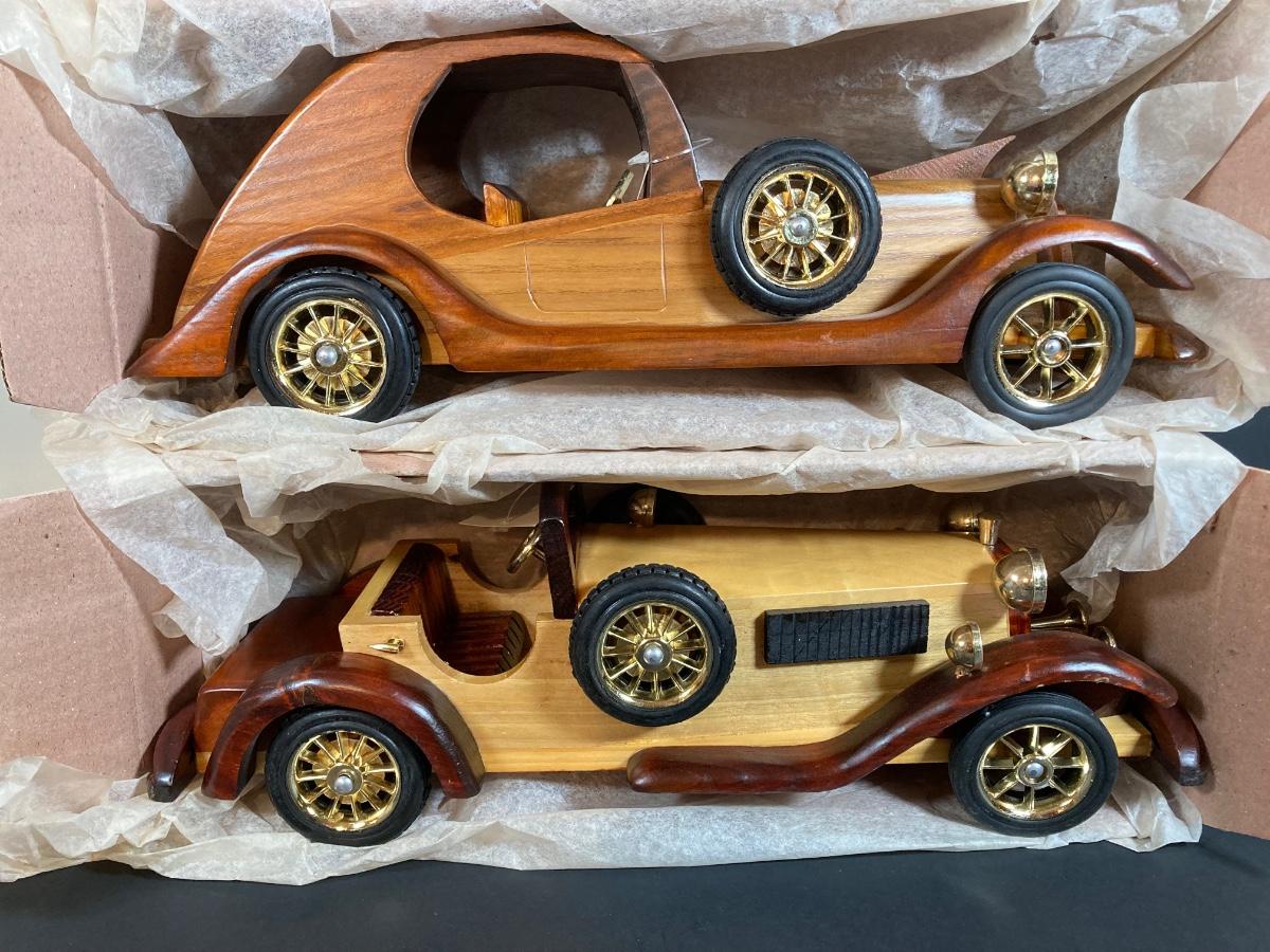 LOT 78L: Four Wooden Classic / Antique Style Automobiles - New in Box