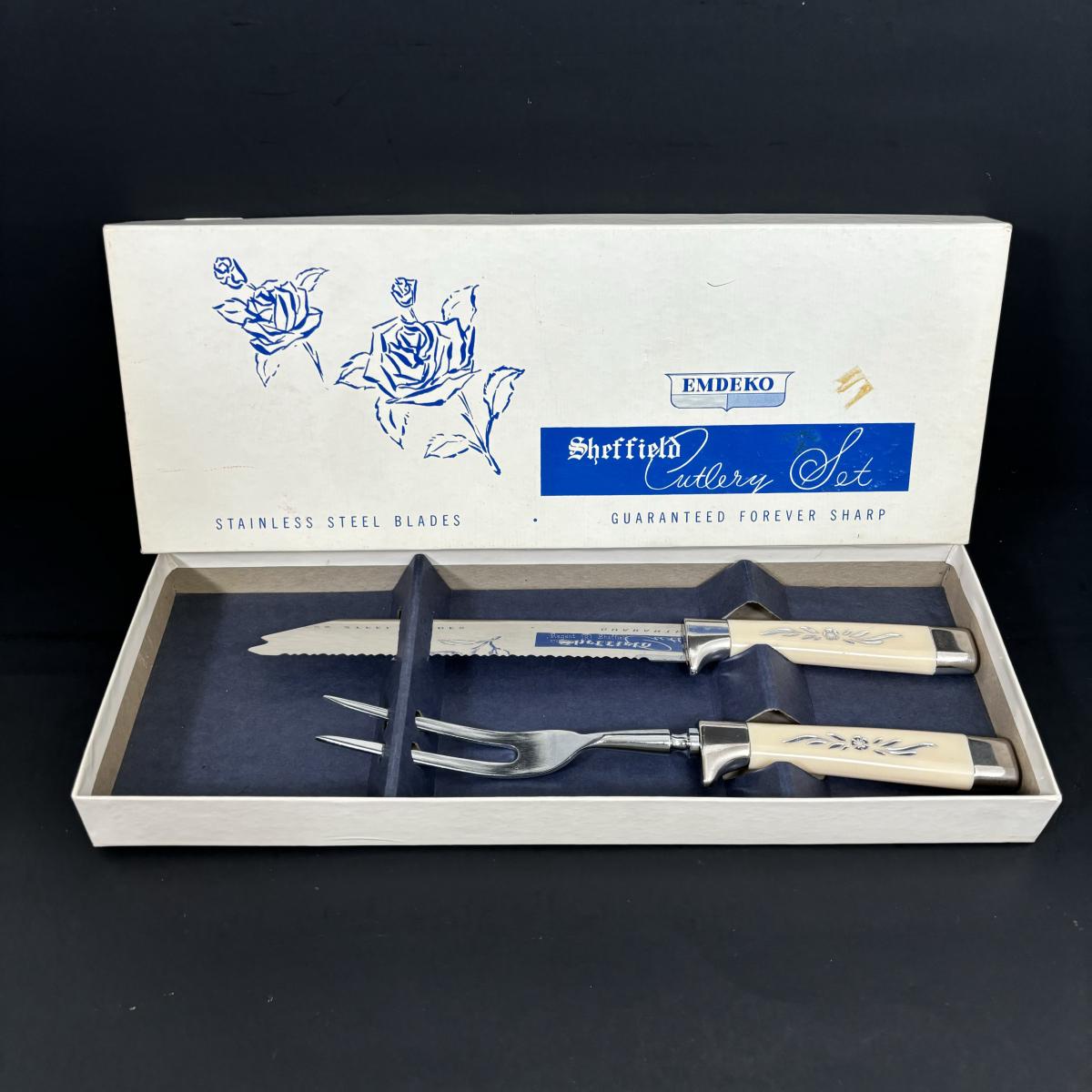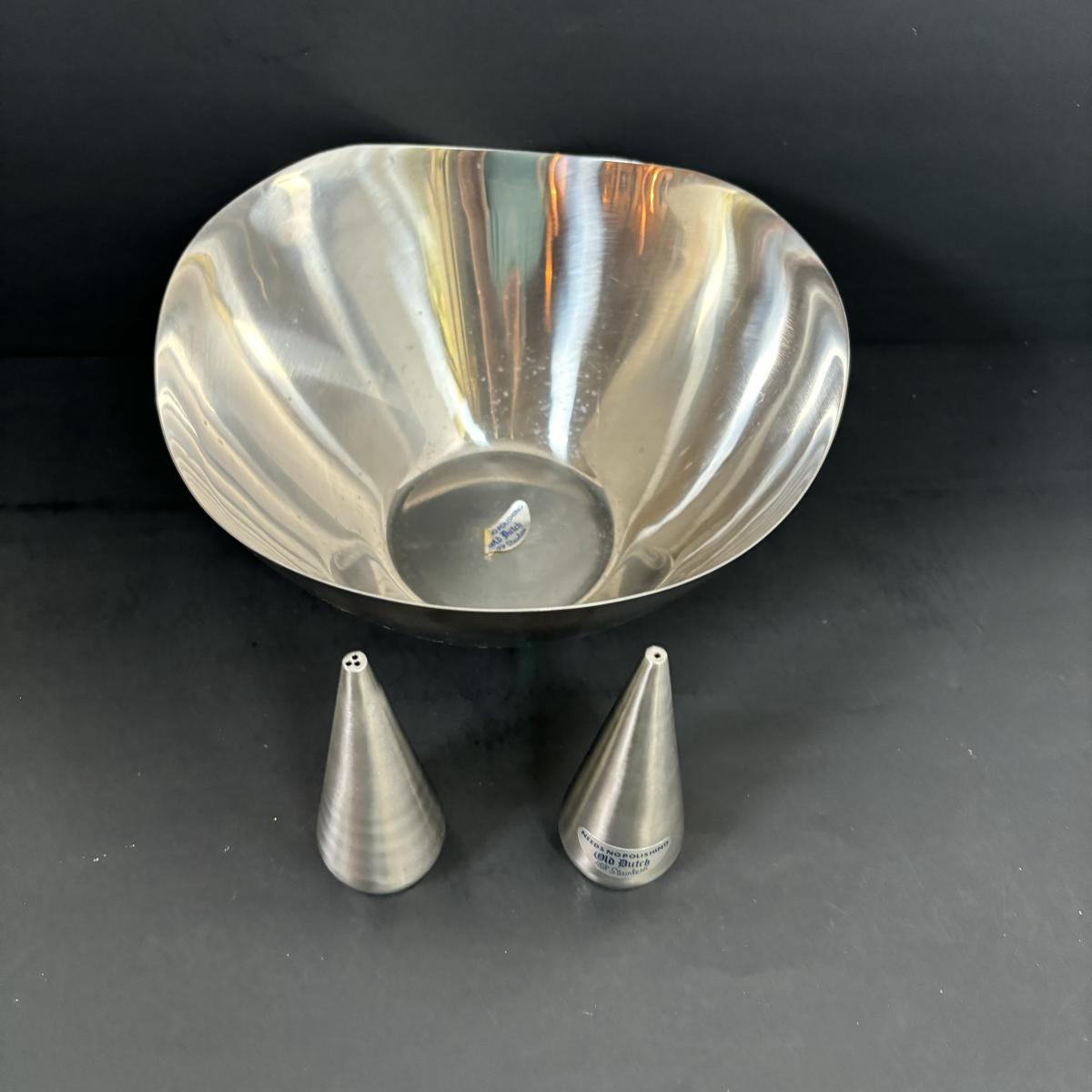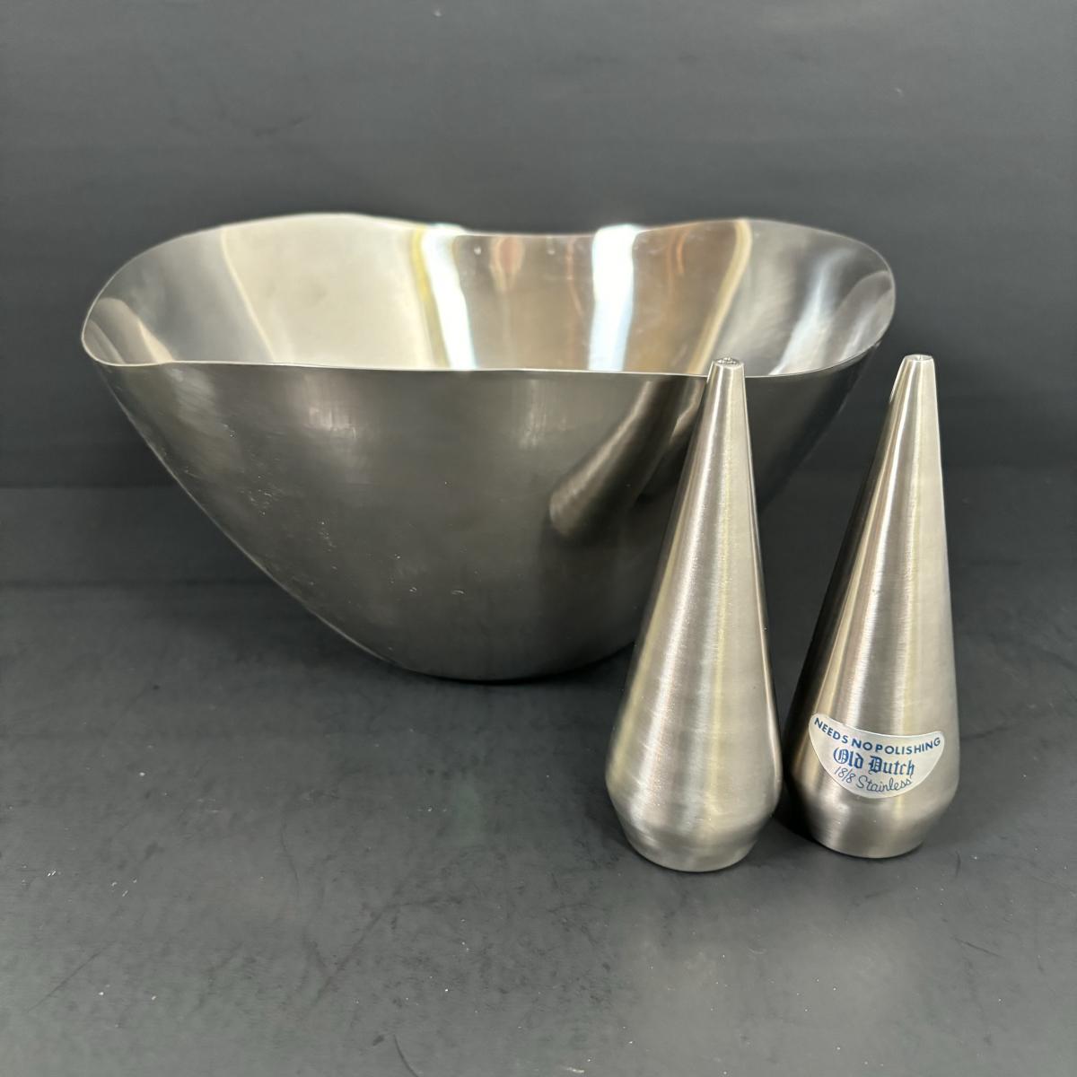 LOT 97: Vintage MCM Old Dutch 18/8 Stainless Modern Bowl & Salt/ Pepper Shakers, Sheffield Cutlery Set, Vintage Pimpernel "Meadow Flowers" Placemats,